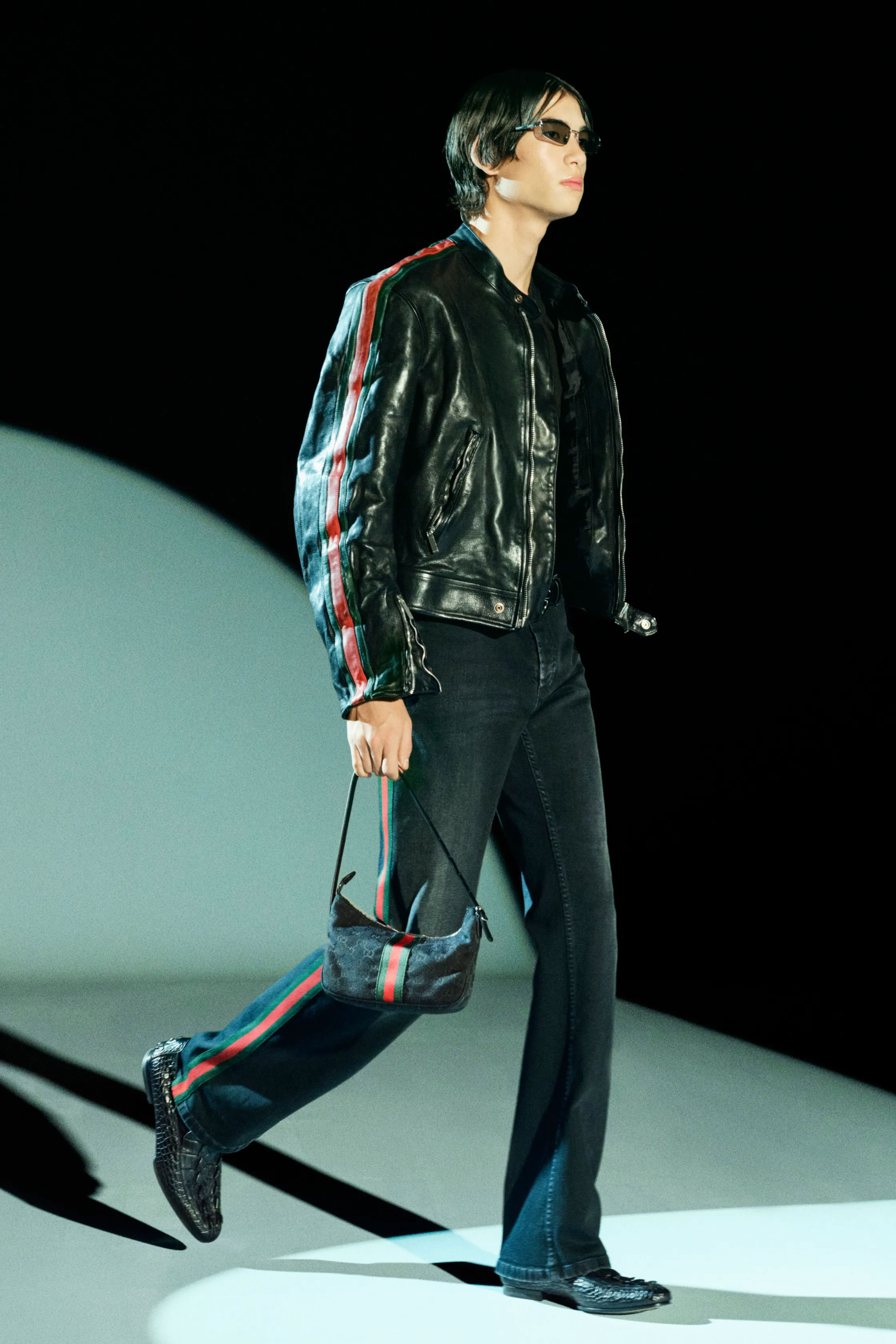 Водночас фінальним акцентом стають аксесуари й шкіряні силуети, що переглядають знакові позиції Gucci. Сумки, ремені та взуття подані як інструменти оновлення архівного коду: від модифікованої Double G до нових форм Jackie 1961 і Dionysus.