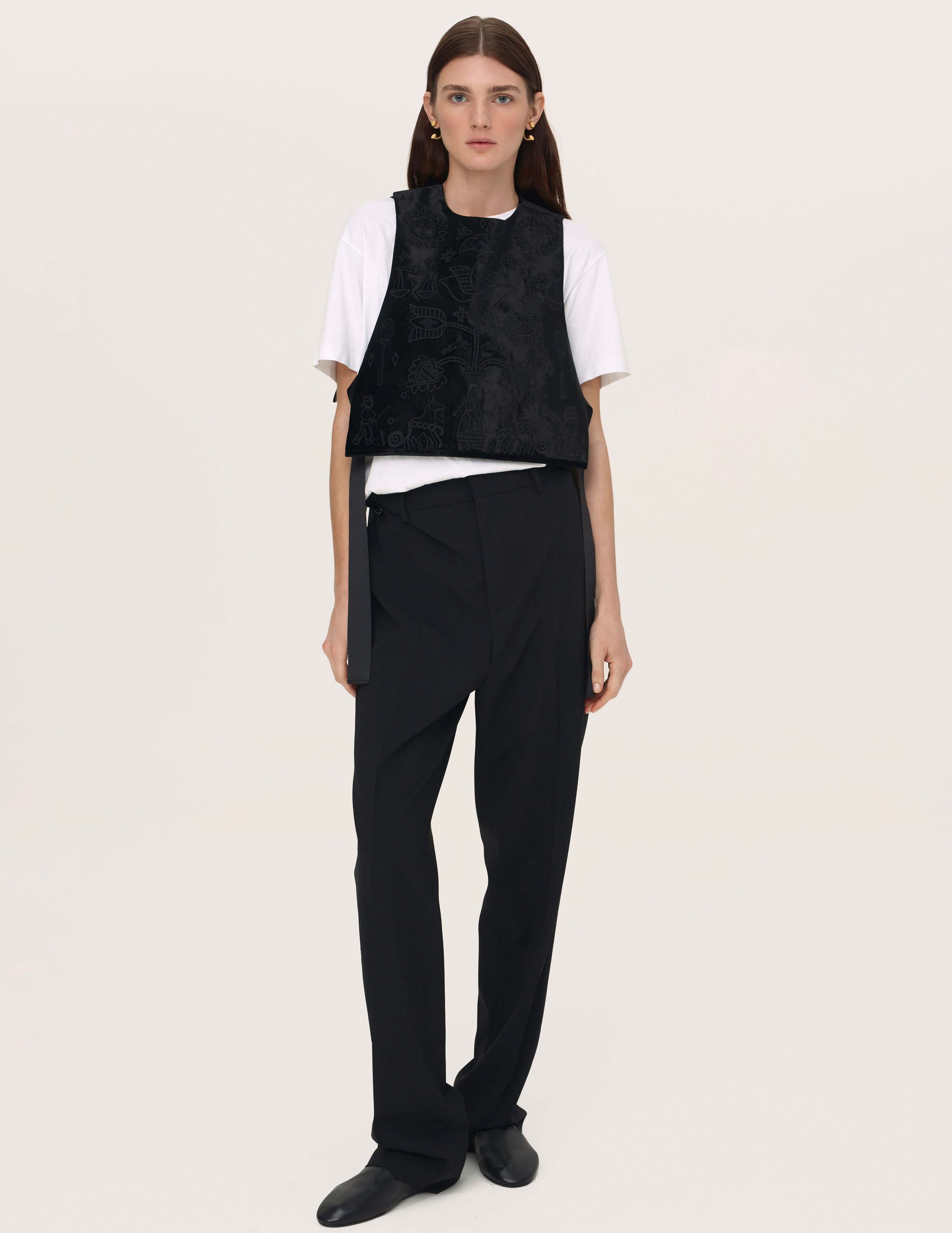 Оксамитова вишита безрукавка — елемент оригінального нагрудного одягу. Вишивка лімітованих фартухів натхнена сюжетами косівських кахель та чернецьким рушником з Черкащини. Естетика цих експонатів стала основою і для візерунків на хустках з козирком та принтів на шовкових хустках. Вишиті орнаменти GUNIA Project — це альтернативне продовження традиції в сучасній уяві. Взори вишитих сорочок — це варіації і доповнення різноманітних елементів, зібраних з керамічних кахлів Чернігівщини та буковинської мальованої скрині 1909 року.