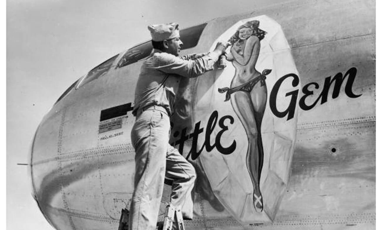 С началом Второй мировой войны стремление морально поддержать идущих на фронт мужчин, дать им уверенность в том, что кроме эфемерных идеалов государственности их ждут еще и самые прекрасные на свете женщины, спровоцировало повальное производство пин-ап-изображений: плакатов, открыток, обложек и журналов. Солдаты наносили изображения доведенных до абсолютного идеала девушек на фюзеляжи самолётов, хранили под слоями военной формы фотографии любимых героинь, а тиражи задорных и воодушевляющих своим видом красоток доходили до космических. И если в 1930-х женщины еще изображались томными и загадочными, то на протяжении 1940-х их образы трансформировались в жизнерадостные, пышущие энергией и как будто уверенностью в завтрашнем дне. И одной из главных женщин в этом деле оказалась актриса и танцовщица Бетти Грейбл, чьё фото в белом купальнике cтало культовым и наиболее тиражируемым.