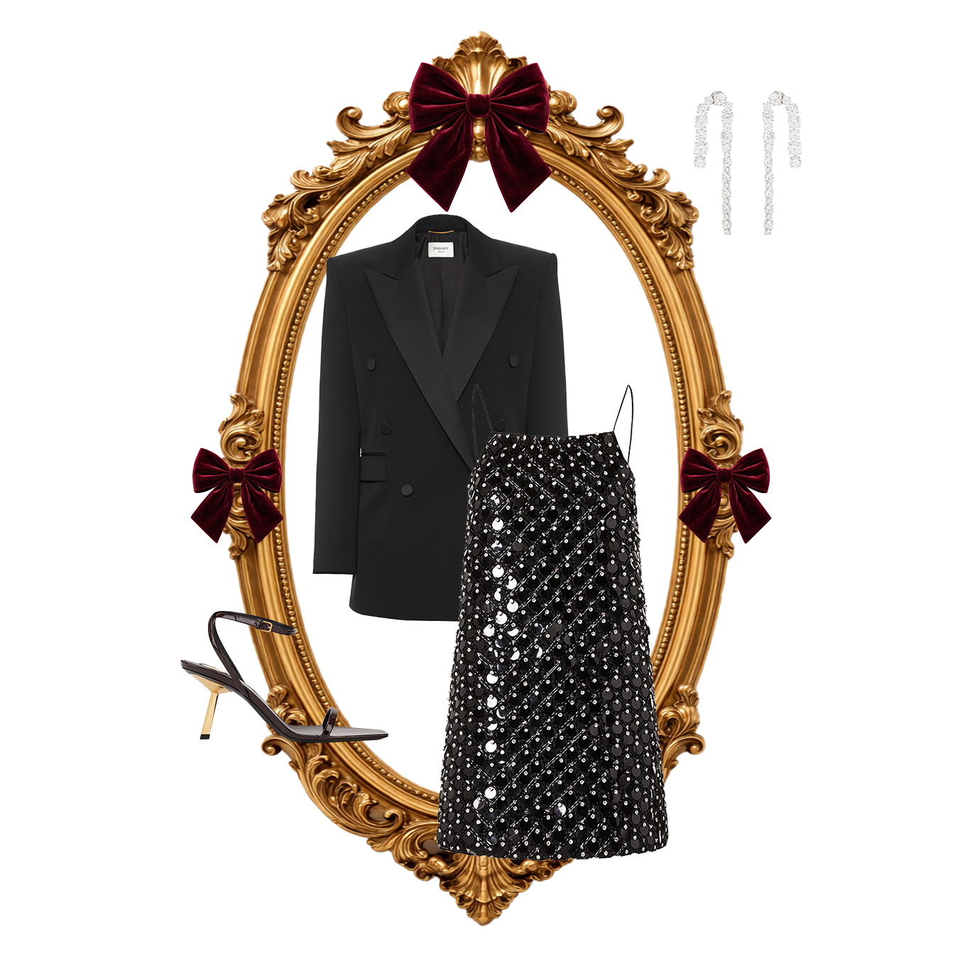 Складання образів до новорічних свят може початися як з одягу, так і з аксесуарів. Сукні задають більш романтичні або ж грайливі настрої, а костюми відкривають простір для гри з формами. Водночас не варто відмовляти собі в задоволенні обрати омріяну сумку, підбори чи прикраси, які можуть виступити головними акцентами вашого образу.