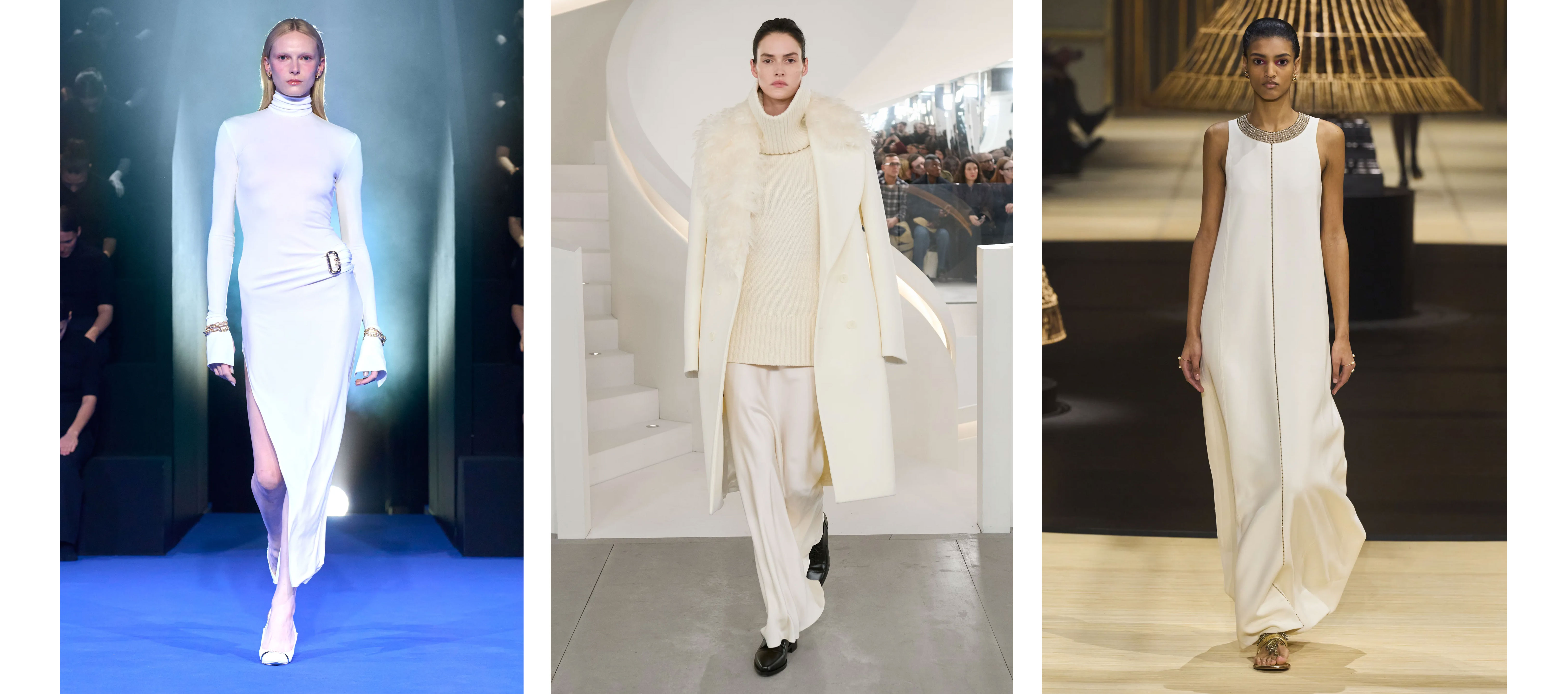 Почніть новий рік із чистого аркуша буквально — разом із білим кольором, що традиційно асоціюється зі святковістю та новими починаннями. Dior і Casablanca пропонують стати адептами білих суконь із металічними, коштовними акцентами. Якщо ж ви в пошуку більш невимушеного й затишного образу, то слідуйте прикладу Michael Kors, де згаданий колір додає вишуканості об’ємному светру та атласній спідниці.