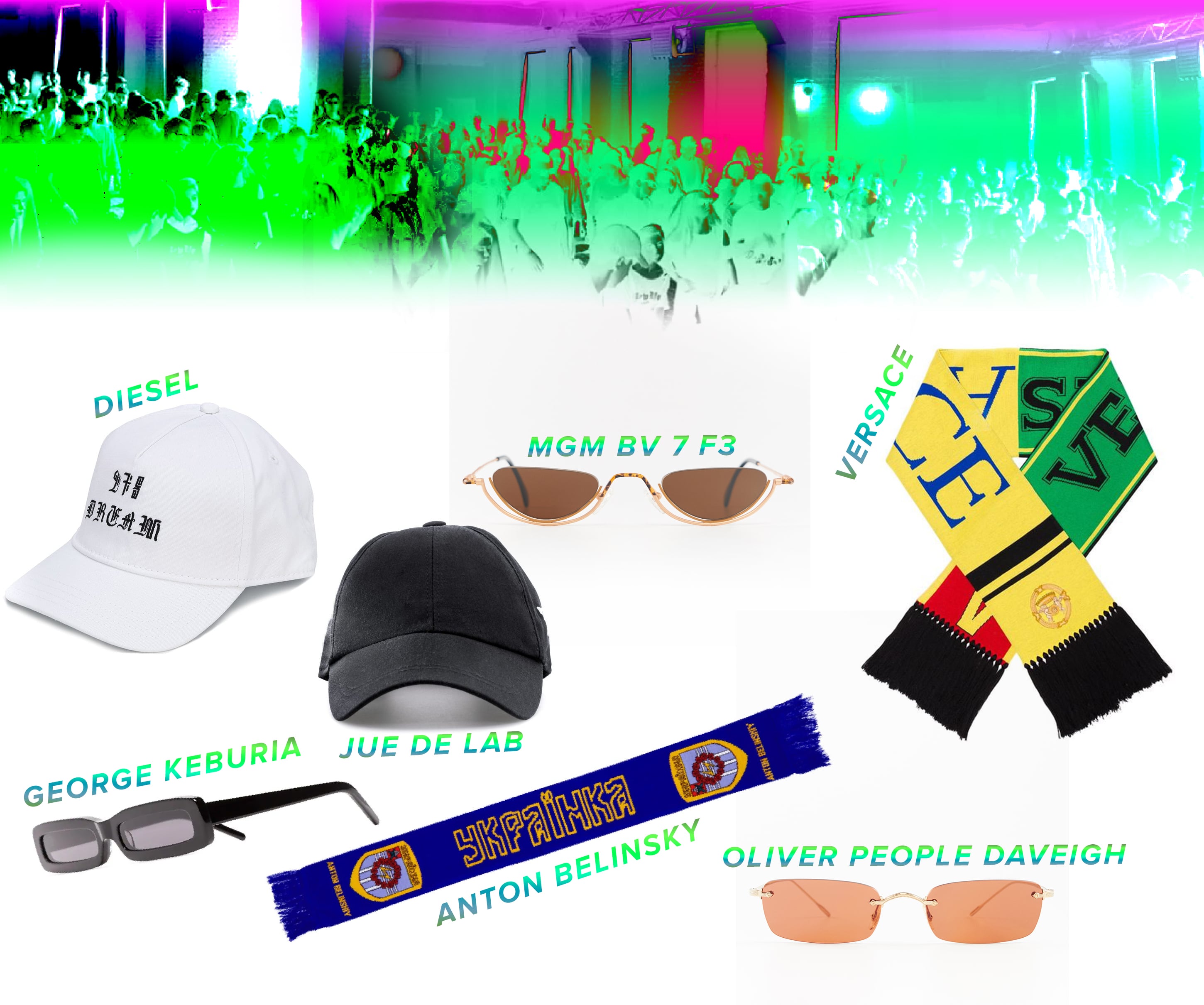 Среди прочего образ завидного тусовщика можно дополнить украшениями (сережками-кольцами, цепочками, чокером), кепкой или патриотичным шарфом с надписью "Украинка" дизайна Антона Белинского.