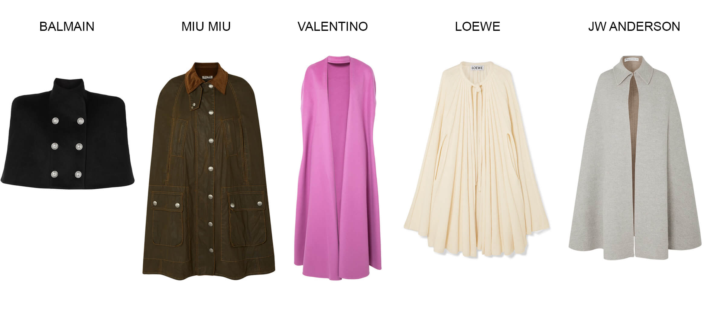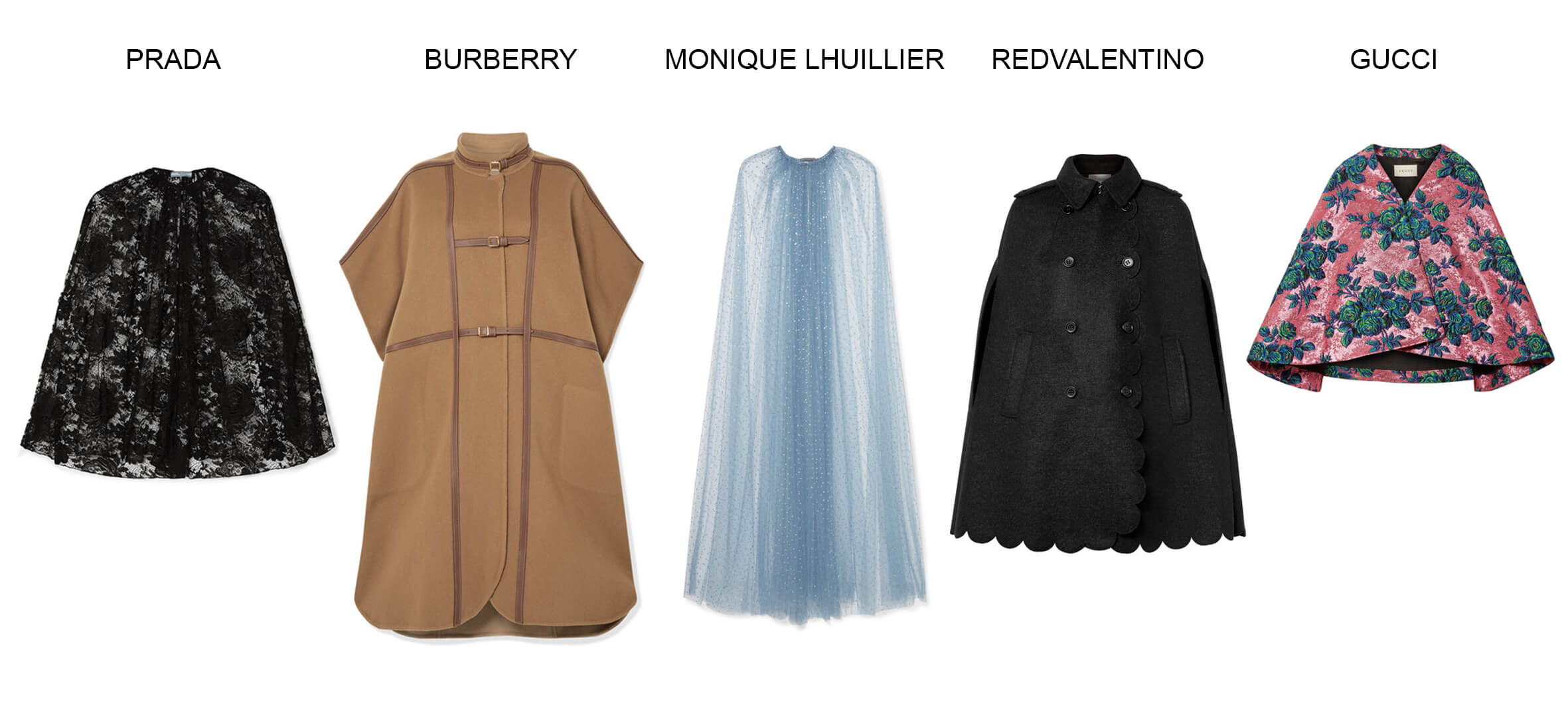 Loewe предлагают носить кейп-сорочку из белого хлопка с кружевом, Chanel и Burberry — кейпы-пелерины из твида и меха (лучше искусственного), у Givenchy и Valentino роскошные, античного вида накидки сложных оттенков, с которыми любое торжество запомнится вашим появлением, а Миучча Прада советует носить кокетливые кружевные или жесткие "униформенные" кейпы поверх абсолютно любой одежды.