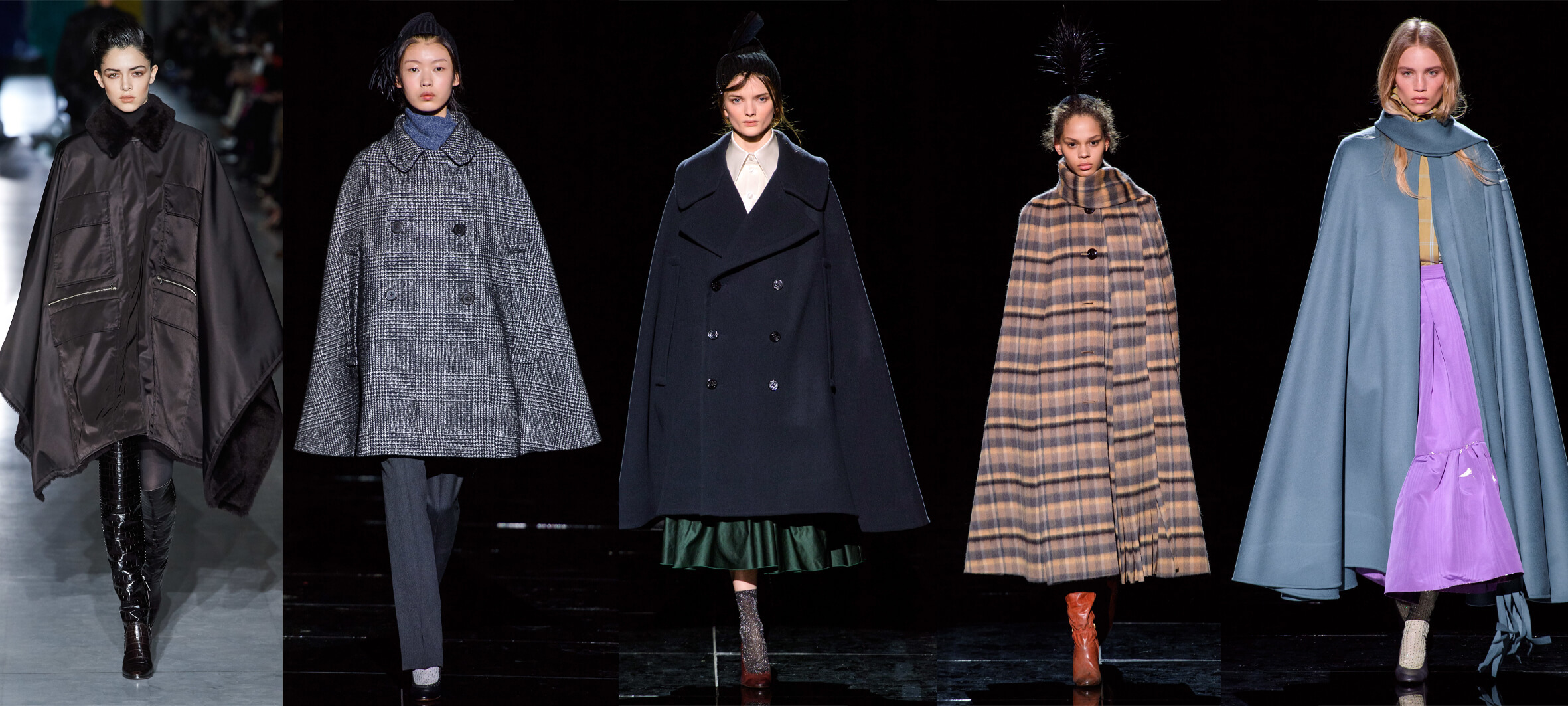 Классические виды верхней одежды, пришедшей к нам из далёких сказочных времён, можно найти у Marc Jacobs, а Max Mara предлагают нарядиться в практичные и немного антиутопические спортивные и кожаные кейпы.