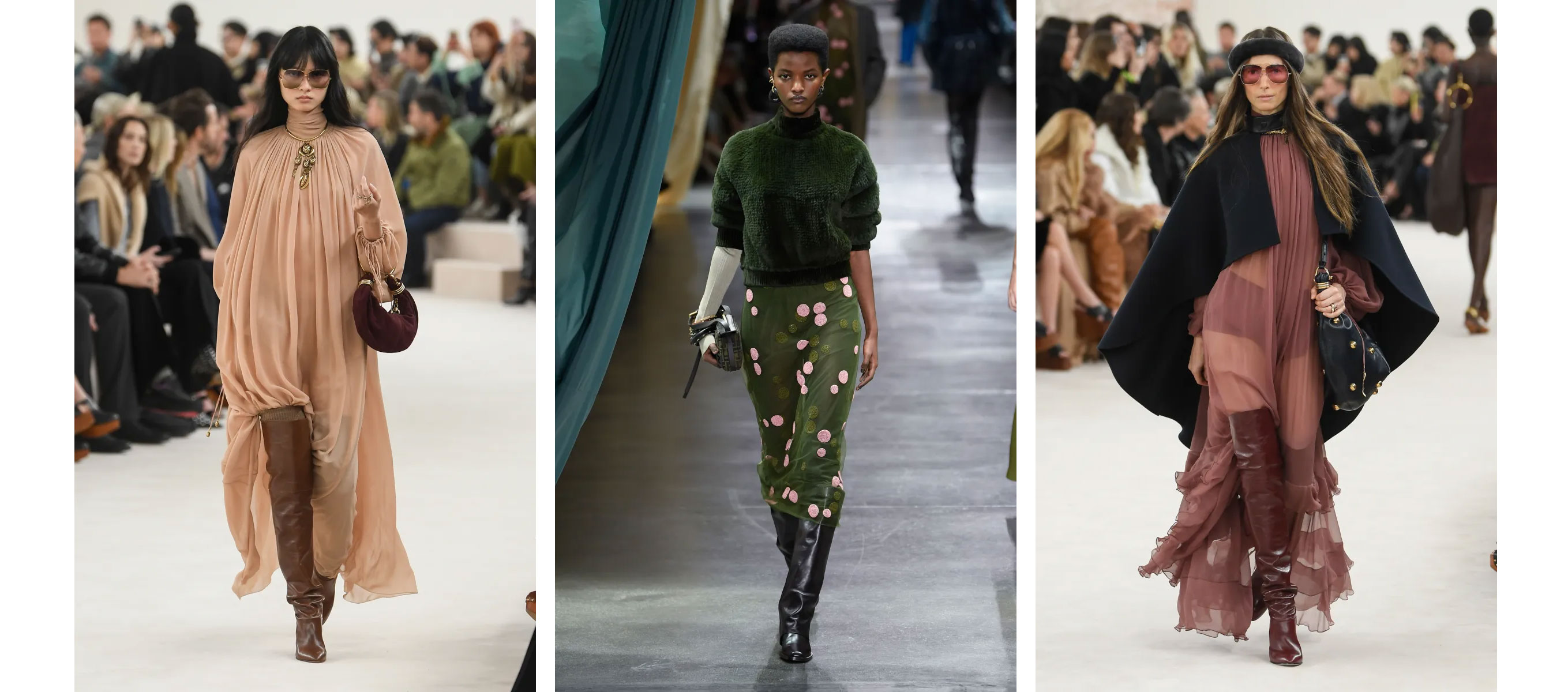 Зліва направо: Chloé осінь-зима 2024/2025, Fendi осінь-зима 2024/2025, Chloé осінь-зима 2024/2025