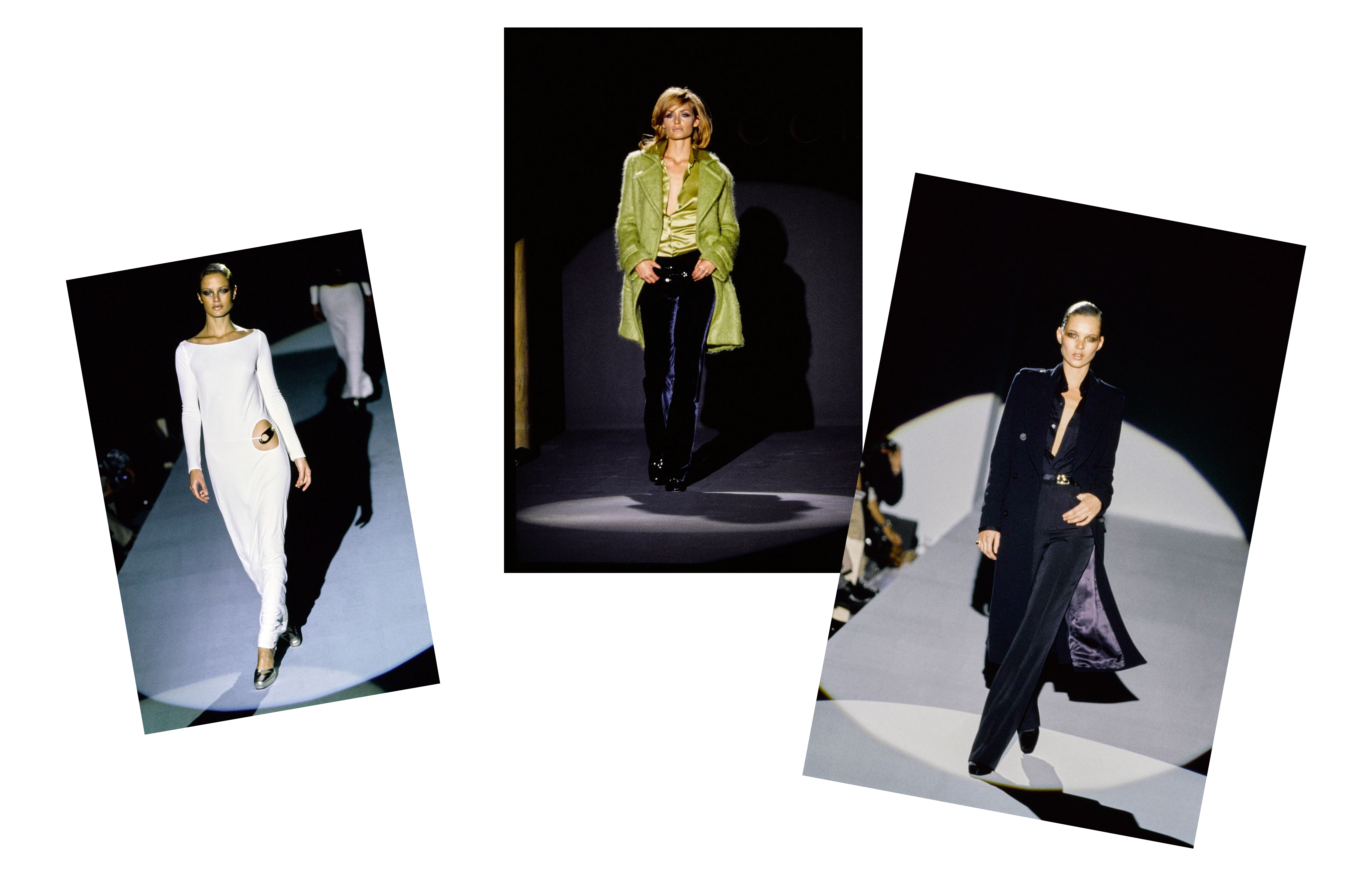 «Gucci раніше одягав усіх зірок і знаменитостей, і я подумав, що це те, що повинні носити сучасні кінозірки й знаменитості», — говорив в одному з інтерв’ю Том Форд. «Чесно кажучи, якби я робив колекцію Tom Ford, я б зробив саме це. Це було про гедонізм. Сексуальний, чуттєвий, fuck-me одяг». Цей гедонізм дизайнер також транслював у спокусливих, контроверсійних та нині культових рекламних кампаніях, які створював із французькою стилісткою Карін Роітфельд та італійським фотографом Маріо Тестіно.