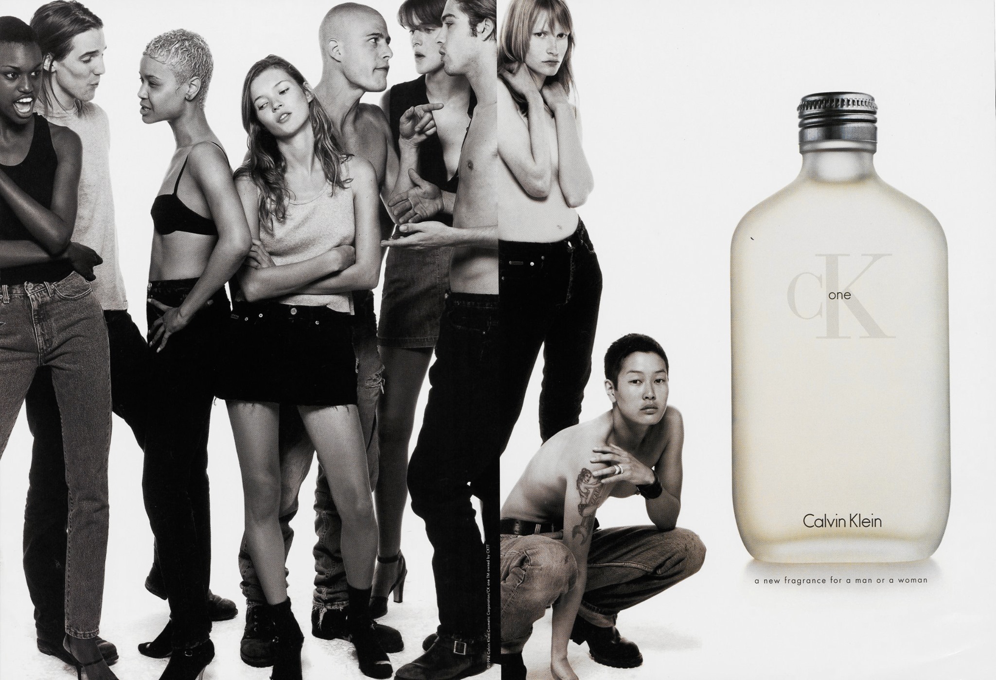 Історія Calvin Klein містить знаковий момент і для ольфакторної сфери — це презентація одного з перших унісекс-ароматів CK One. Його представили у 1994 році. Запуск супроводжував кампейн з різноманіттям в модельному складі, що зняв Стівен Мейзел. Знімання поклало початок зірковому шляху Дженні Шиміцу, котра працювала механікинею, коли з нею зв'язалася команда Calvin Klein. Вона стала першою азійською моделлю, яка з'явилася на подіумі Prada.
