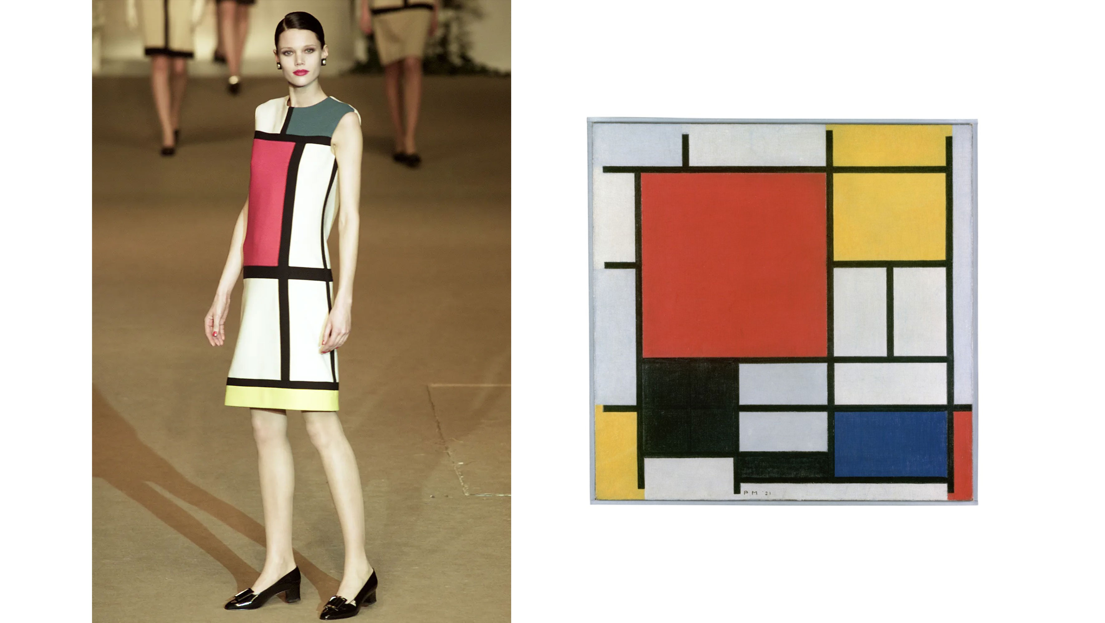 Говорячи про натхнення дизайнерів живописом, неможливо обійтися без згадки про сукню «Мондріан» Іва Сен-Лорана, натхненну роботою нідерландського абстракціоніста Піта Мондріана. Представлена в колекції осінь-зима 1965, вона відтворювала кольорові блоки з картини «Композиція II у червоному, синьому та жовтому» 1929 року. Як зазначають у музеї Іва Сен Лорана, ця сукня простого крою з геометричними лініями мала значний вплив на стосунки моди й мистецтва — тривимірне вбрання володіло такою ж силою, як і двовимірний твір. Сама ж колекція, знана як «Мондріан», мала беззаперечний успіх, завдяки осучасненому підходу дизайнера.