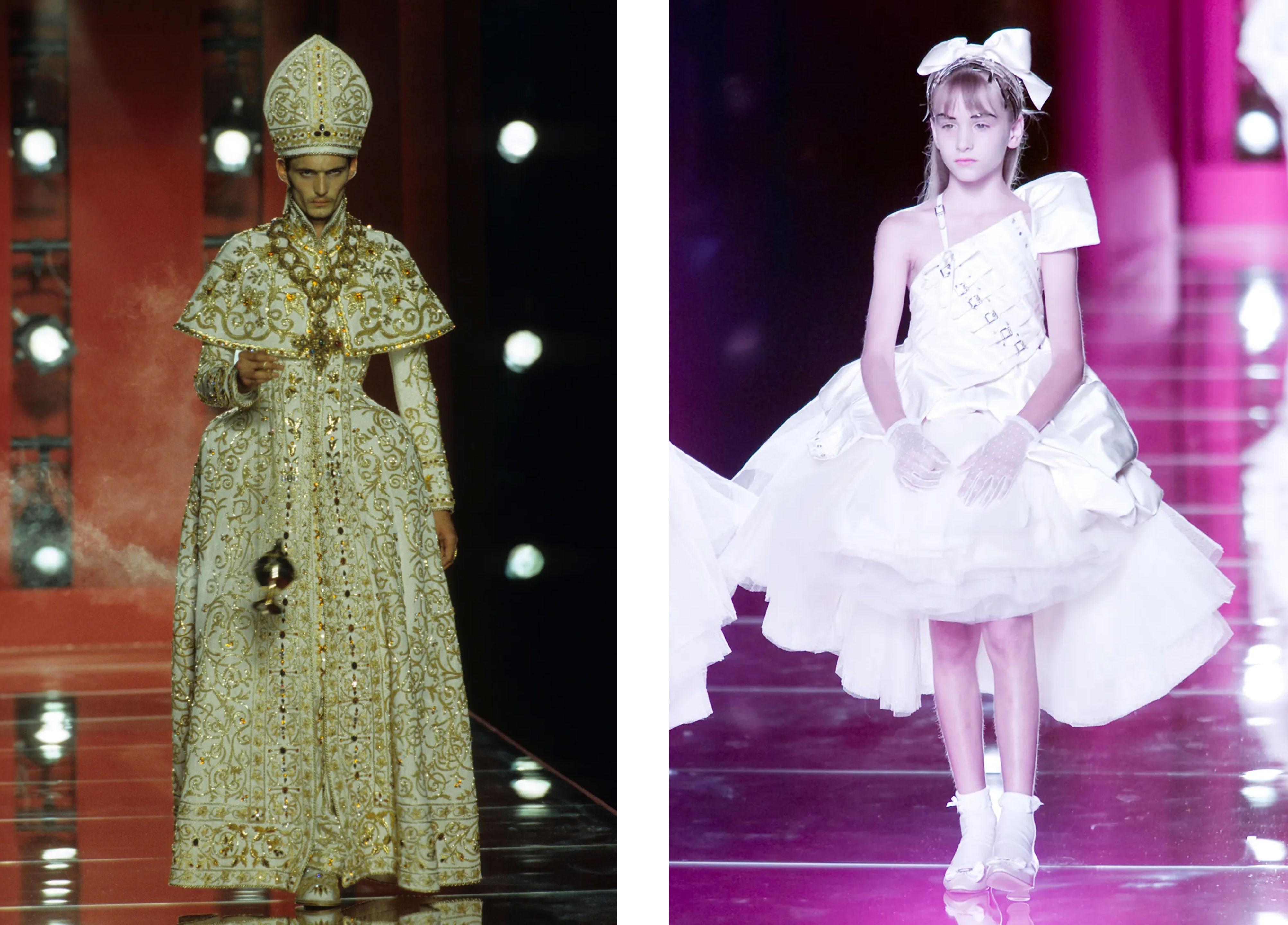 Майстер епатажу Джон Гальяно продовжив дивувати публіку наступного сезону: шоу Dior Haute Couture осінь-зима 2000 було схожим на вишукане весілля, щоправда, доволі химерне. Показ відкрив Папа Римський у корсетному силуеті, який розмахував кадилом, далі подіумом крокувала пара наречених. Водночас інша частина шоу з допомогою образів порушувала питання зв'язку між сексом, релігією, гендером та шлюбом.