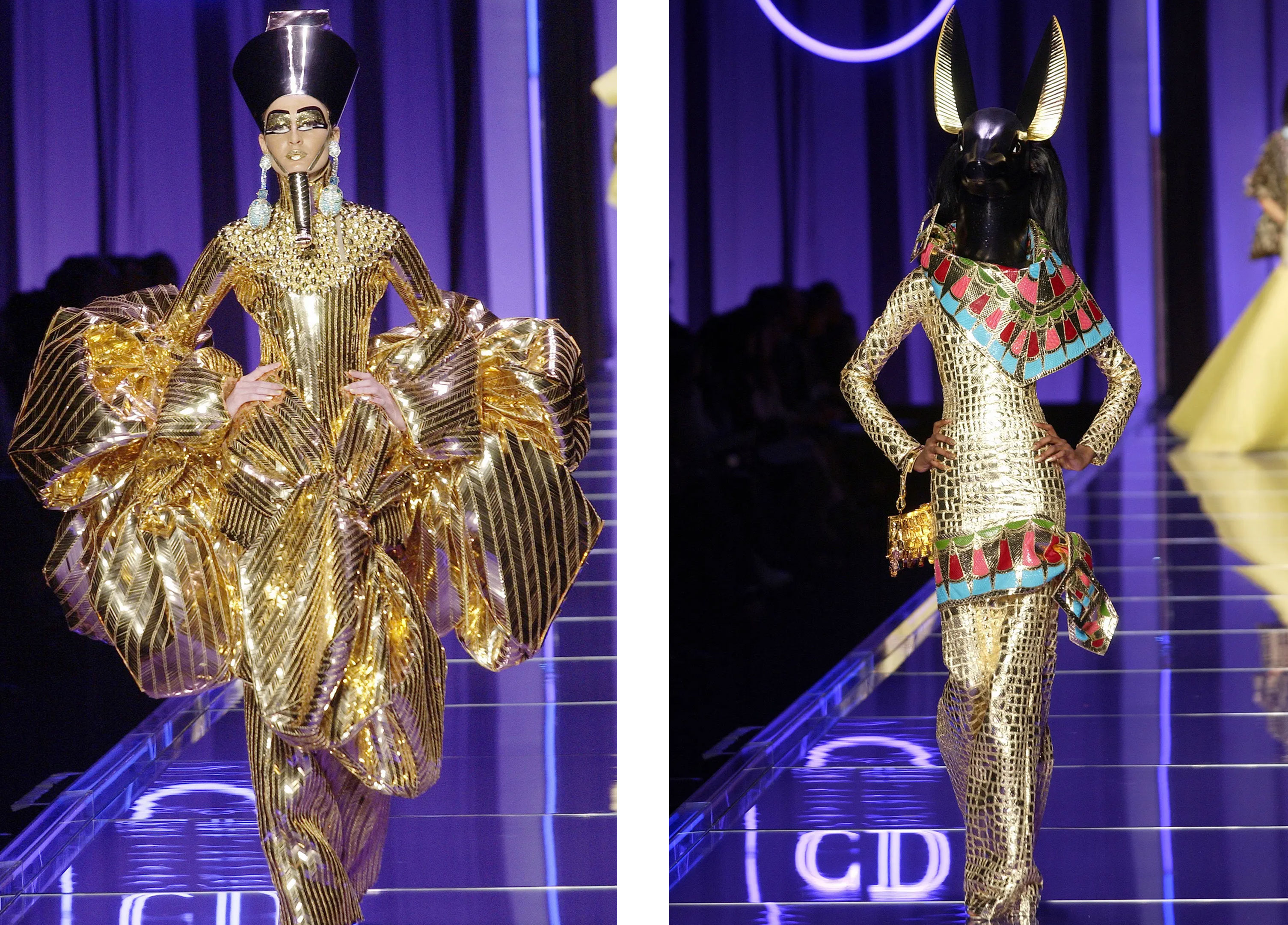 Однією із найзнаменитіших колекцій Джона Гальяно була Dior Haute Couture, весна-літо 2004. Темою цього показу стала історія Єгипту, яку він досліджував, літаючи на повітряній кулі просторами країни — Долиною Царів, містами Луксор, Асуан і Каїр. Показ був відкритий дещо гротескно та яскраво — модель Ерін О’Коннор в з відповідним макіяжем вийшла в образі Нефертіті. Золотисті деталі, кораловий бісер, металік, тюль, розкішні прикраси у формі скарабеїв і кришталеві сукні для мумій — саме так Джон Гальяно переосмислив модників Стародавнього Єгипту.