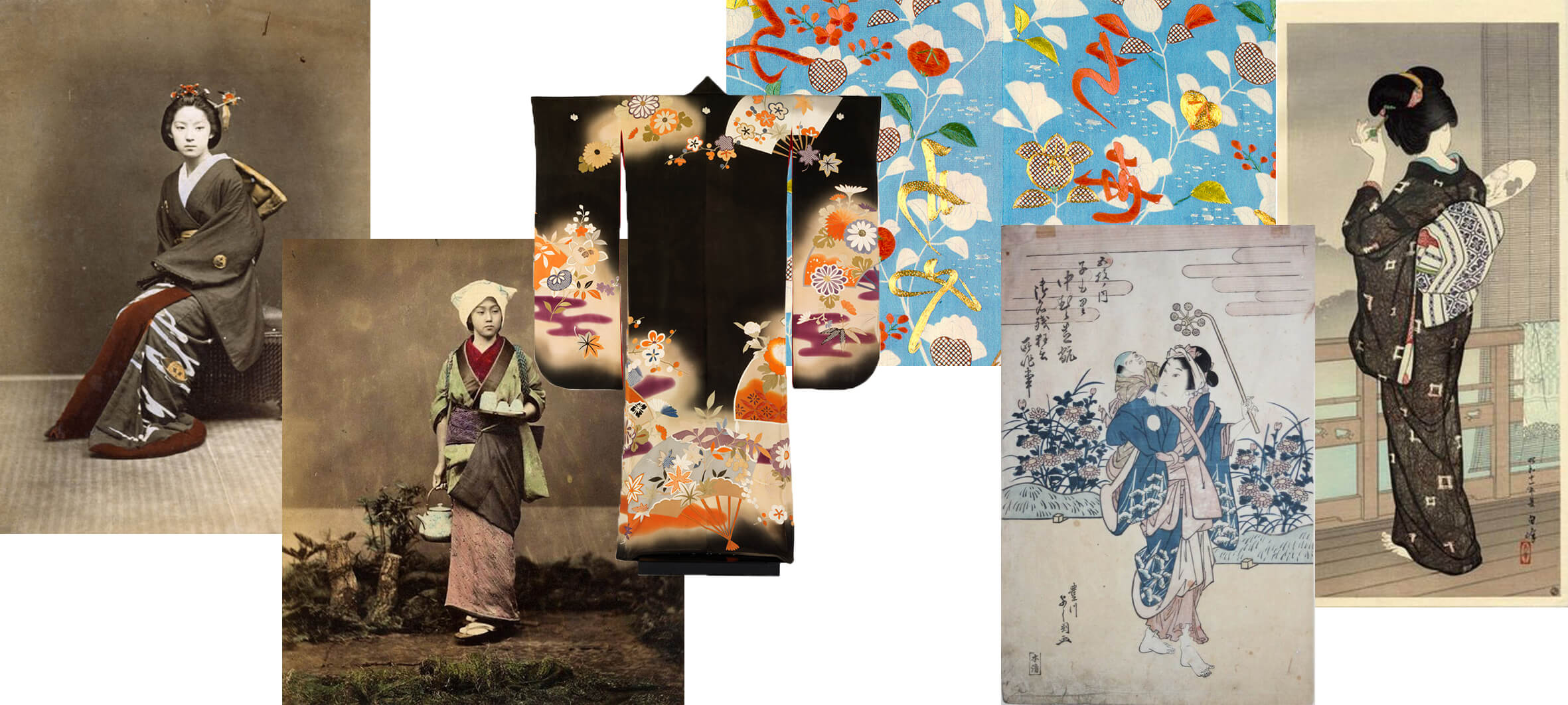 Кимоно, неотъемлемая часть японской визуальной культуры, стало символом традиционной одежды Японии и приобрело широкую популярность во всём мире в середине 19 века. Упоминания об одежде с названием "кимоно" встречались еще в отчетах португальских миссионеров-иезуитов в 16 веке. С начала 20 века, когда в связи с расцветом научных экспедиций, путешествий и моды на ориентальные восточные мотивы в одежде кимоно быстро стало широко используемым атрибутом, в нём появлялись на премьерах звёзды Голливуда, его принято было носить в качестве роскошной домашней одежды, а европейские кутюрье — от Кристобаля Баленсиаги и Кристиана Диора до Пьера Кардена — создавали модные коллекции, включающие современные вариации традиционного японского костюма. Особой любовью к кимоно и Японии и своими тематическими творениями для дома Dior в 2000-х известен Джон Гальяно.