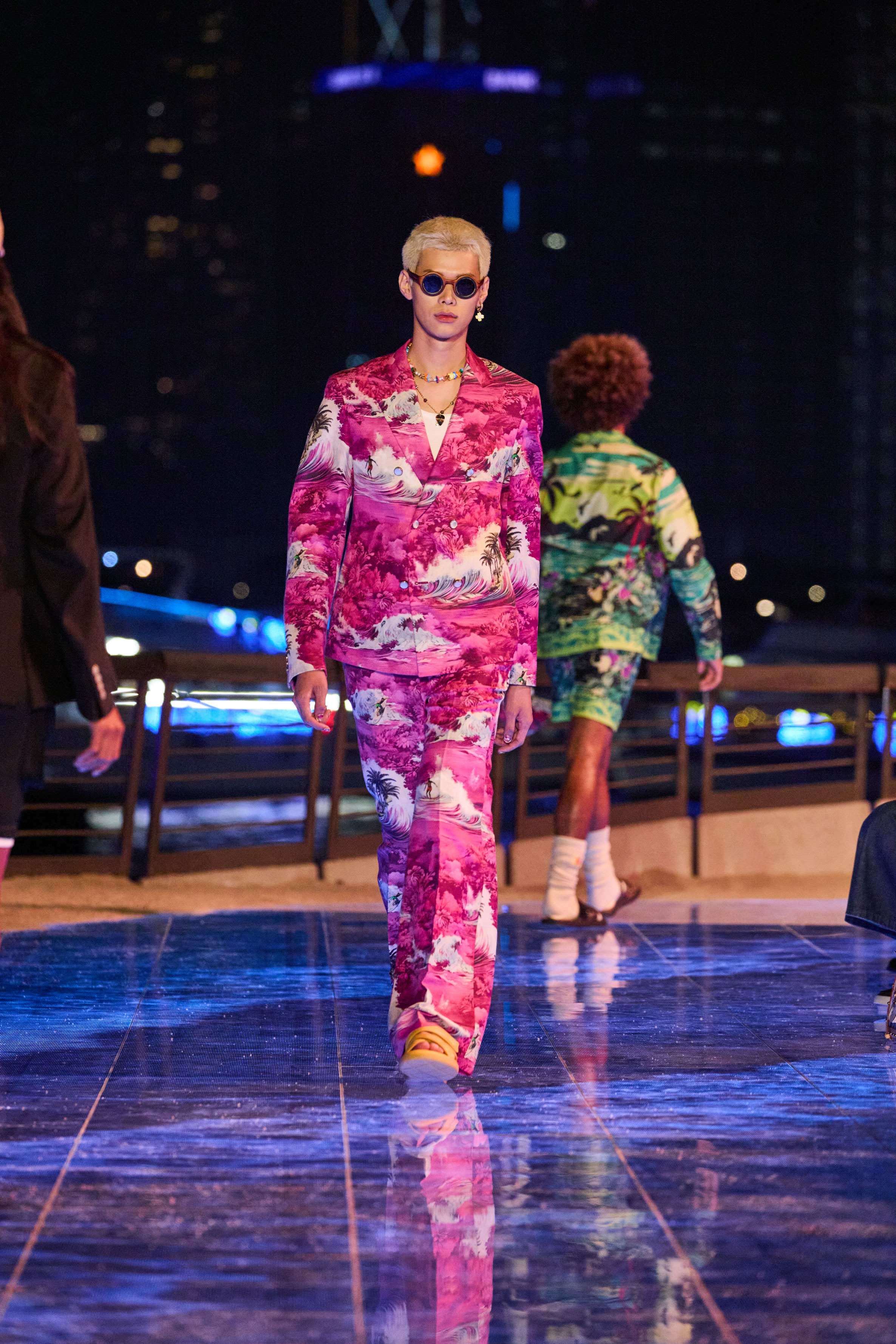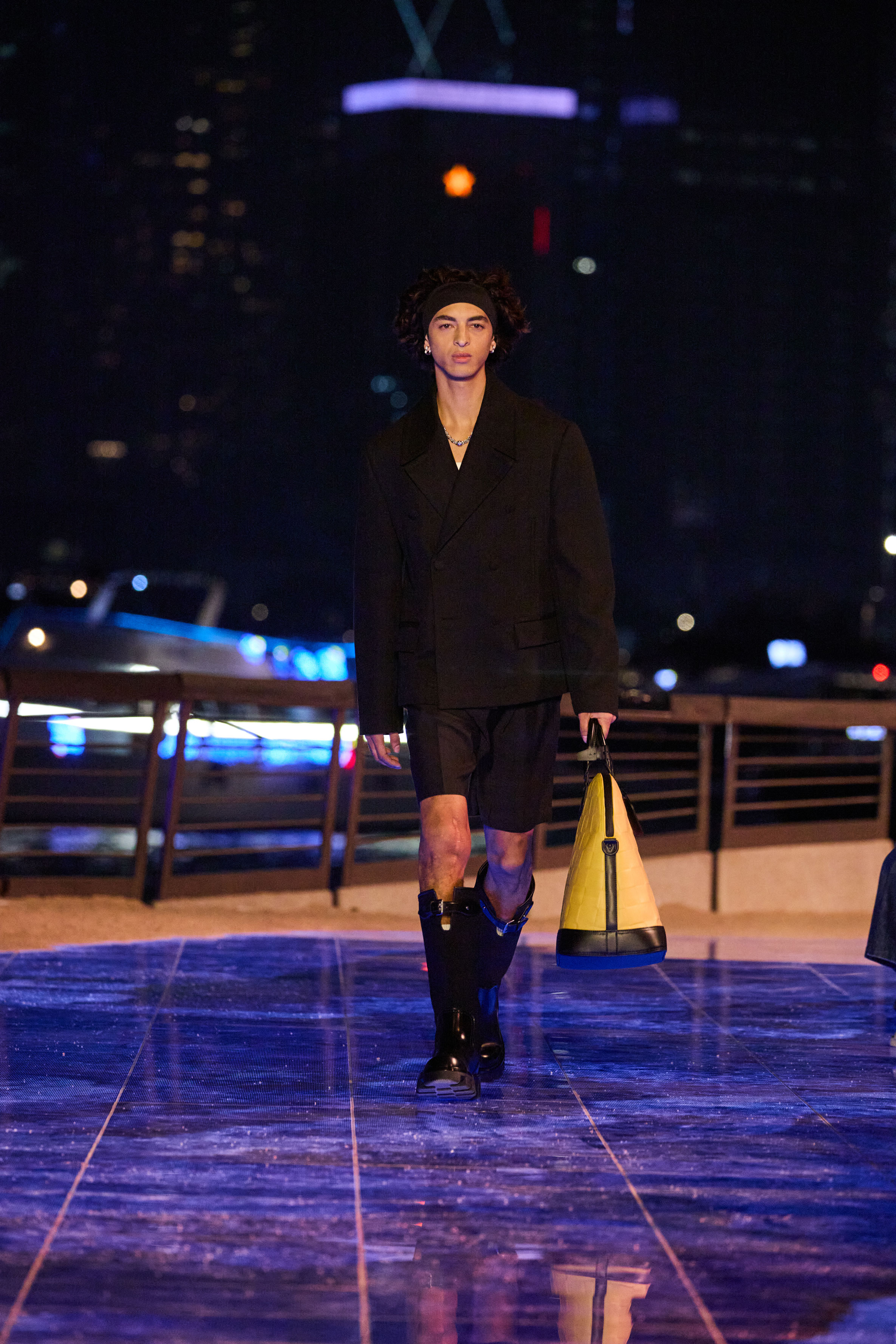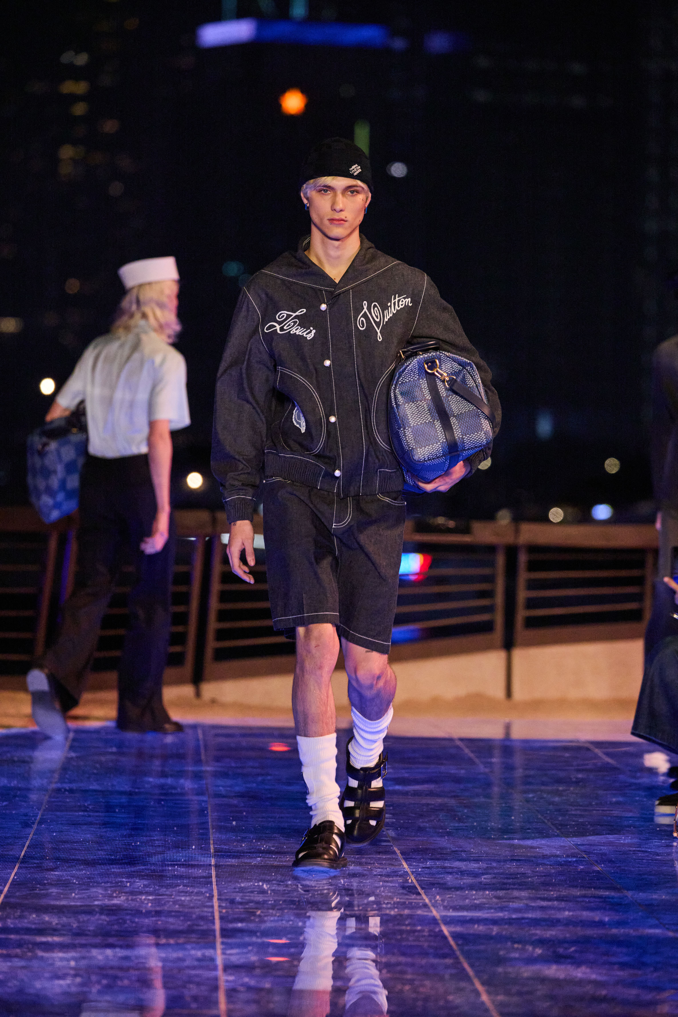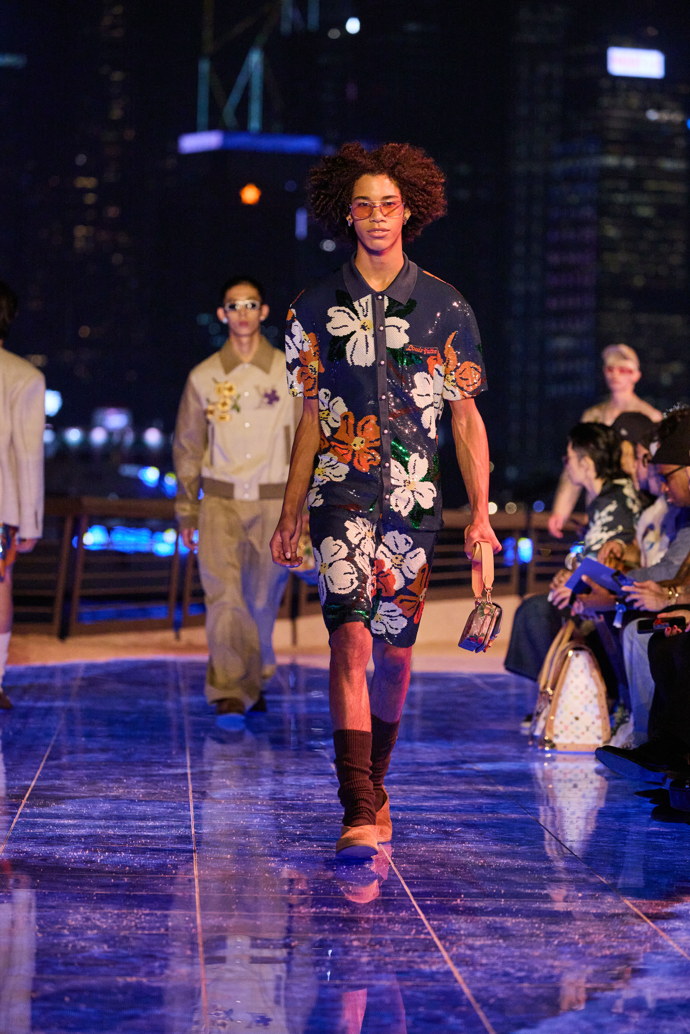 Під музичний супровід укулеле та морських хвиль з’явився перший образ денді-моряка, морська уніформа якого обігрувалася в різноманітних ітераціях – від смугастих двобортних костюмів з розкльошеними штанами або шортами до сюртуків з перлинними гудзиками. Мотиви смужки, відтворені в мініатюрних низках перлів, філігранно викладено на двобортному чорному пальто. Вишиті візерунки мушель стилістично доповнюють спортивні куртки з матроським коміром. Новий логотип infinity LV, немов загратований сіткою, з'являється на в’язаному кардигані, жакардовому костюмі та нейлонових рукавах шкіряної куртки.