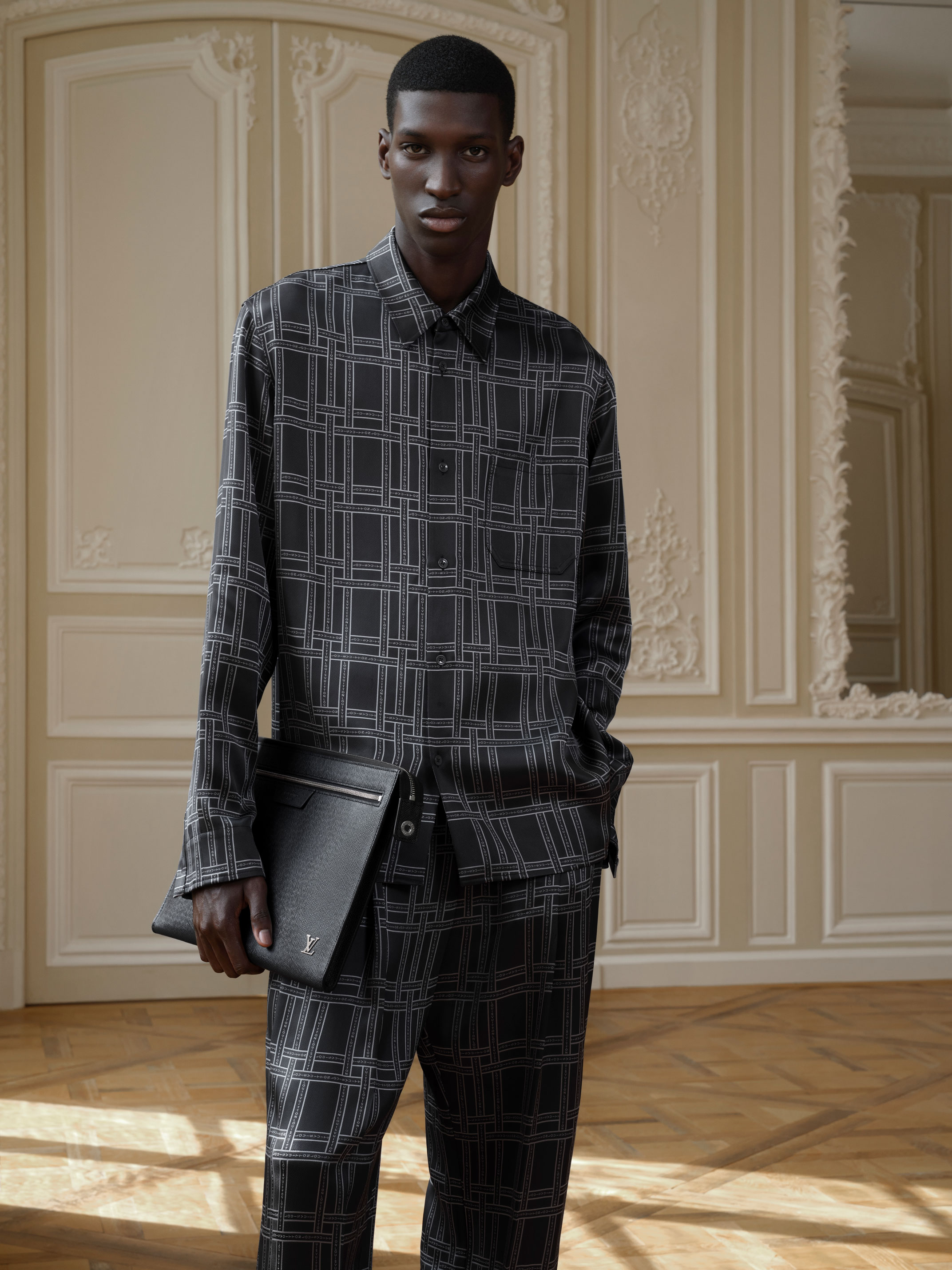 Новий дроп — це одяг у формальному стилі для урочистостей і повсякденних ситуацій. Однобортні костюми, пальта та сорочки фігурують разом зі знаковим логотипом. Вишукані смокінги Starry Night доповнять гардероб, як і монограма Eclipse, і яскрава клітинка LVTangles. Варіативність принтів лаконічна: одяг або однотонний, або встелений смужками й візерунками.