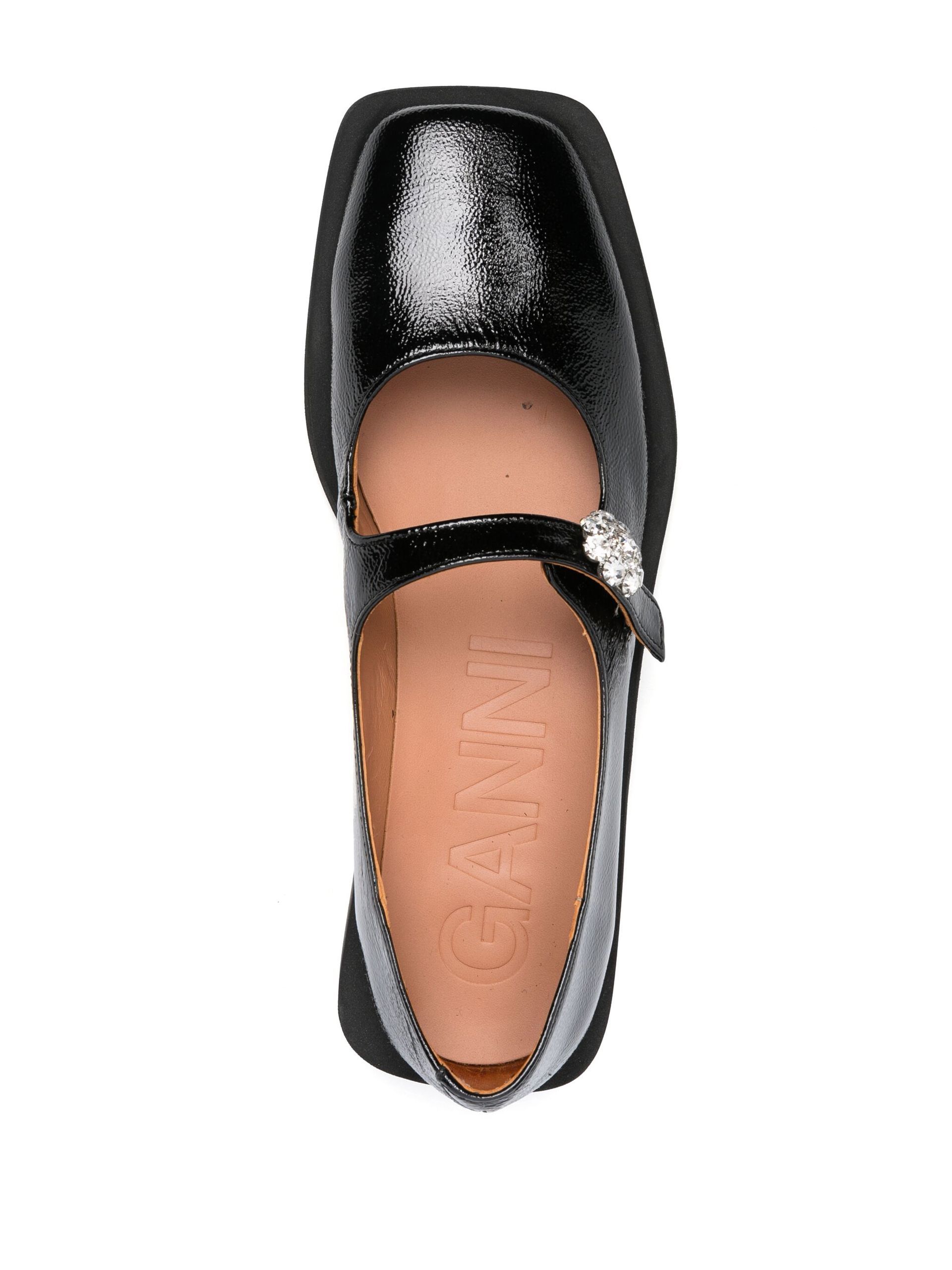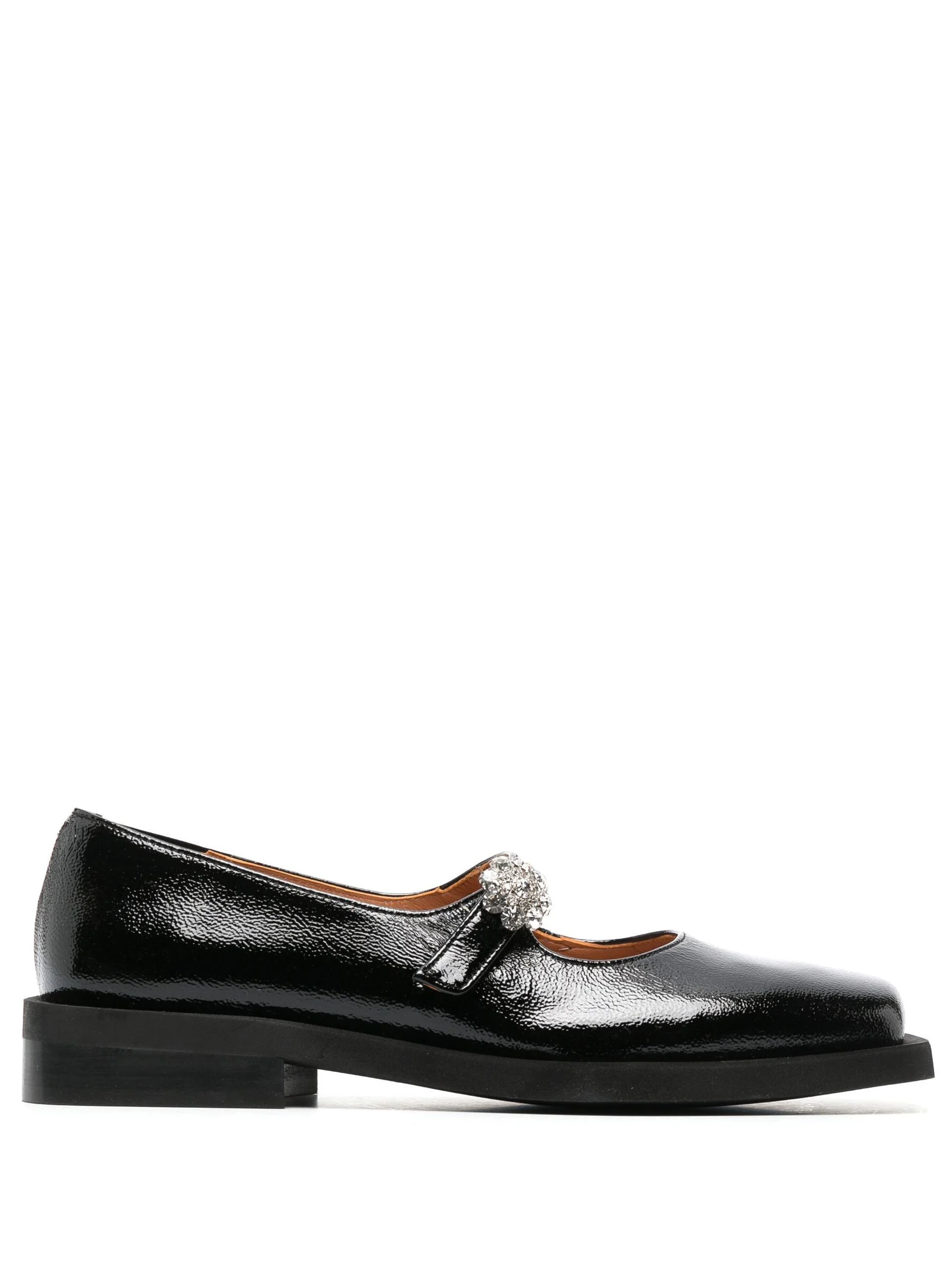 Коли в житті не вистачає сяйва, балетки Ganni стануть вашим антидепресантом. Бренд поєднав стриманий дизайн з фактурним матеріалом і застібкою, прикрашеною блискучими кристалами.