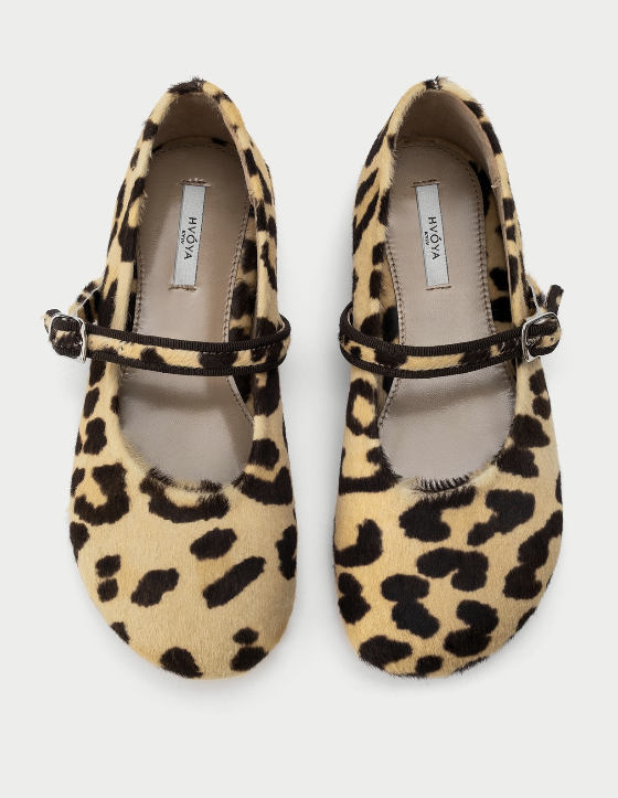Серед українських брендів ми шукаємо яскраві варіації Мері Джейн. Бренд Hvoya не йде на компроміси, тому представляє балетки Mini Jane з анімалістичним принтом. Леопардові та зебра – найсміливіші фаворити.