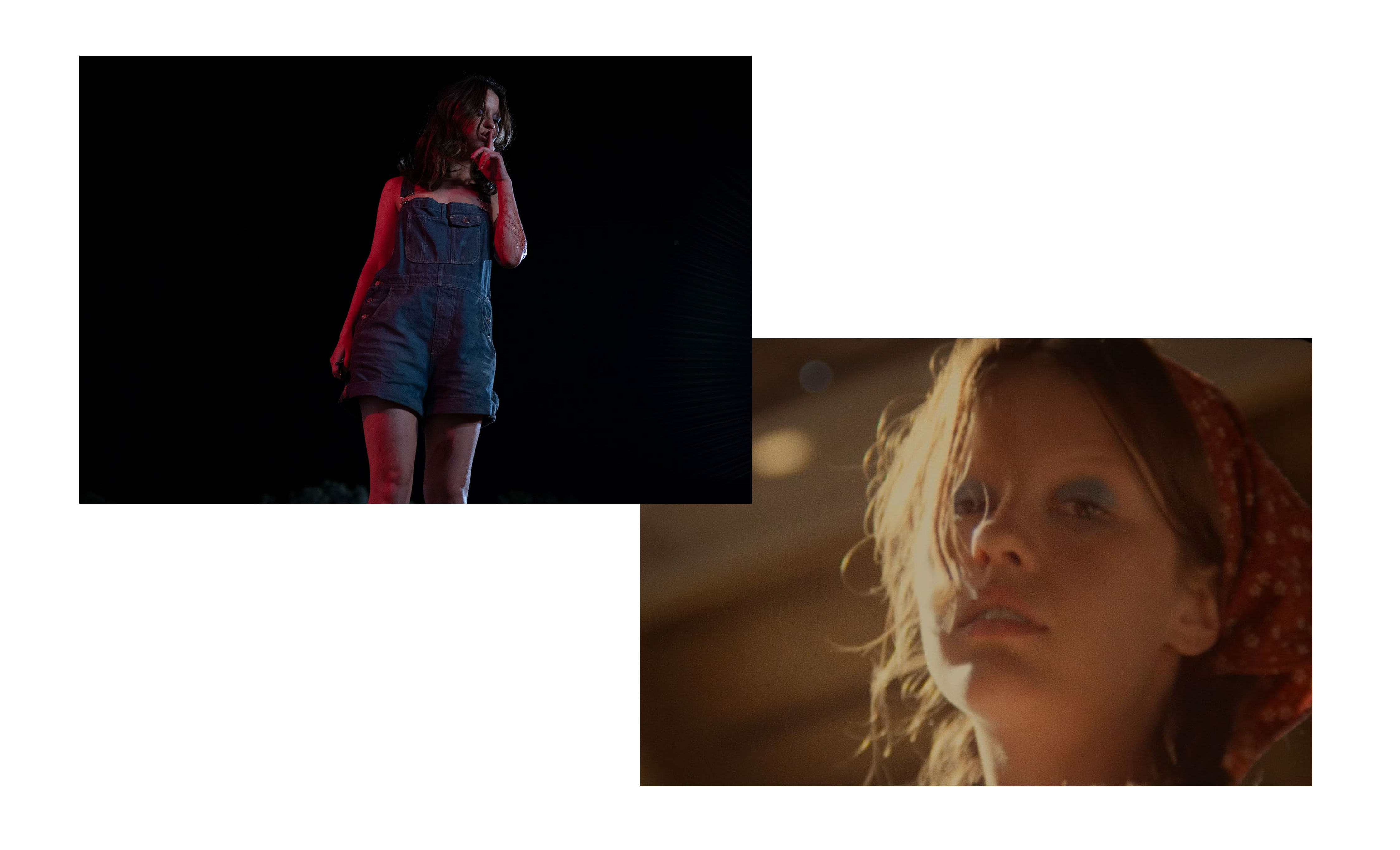 На початку горору головна героїня Максін постає в образі за стилем 70-х років. Вона носить топ-бандо в смужку, короткі шорти й має об'ємні розпущені локони. Коли ж Максін переодягається в костюм для «ролі фермерської дівчини», глядачі мають змогу побачити найпам’ятніший ансамбль із фільму. Героїня вбирається в денімовий комбінезон, червону бандану, залишаючи блакитні тіні на повіках. Фінальним штрихом такого образу через певний час стає розбризкана кров.