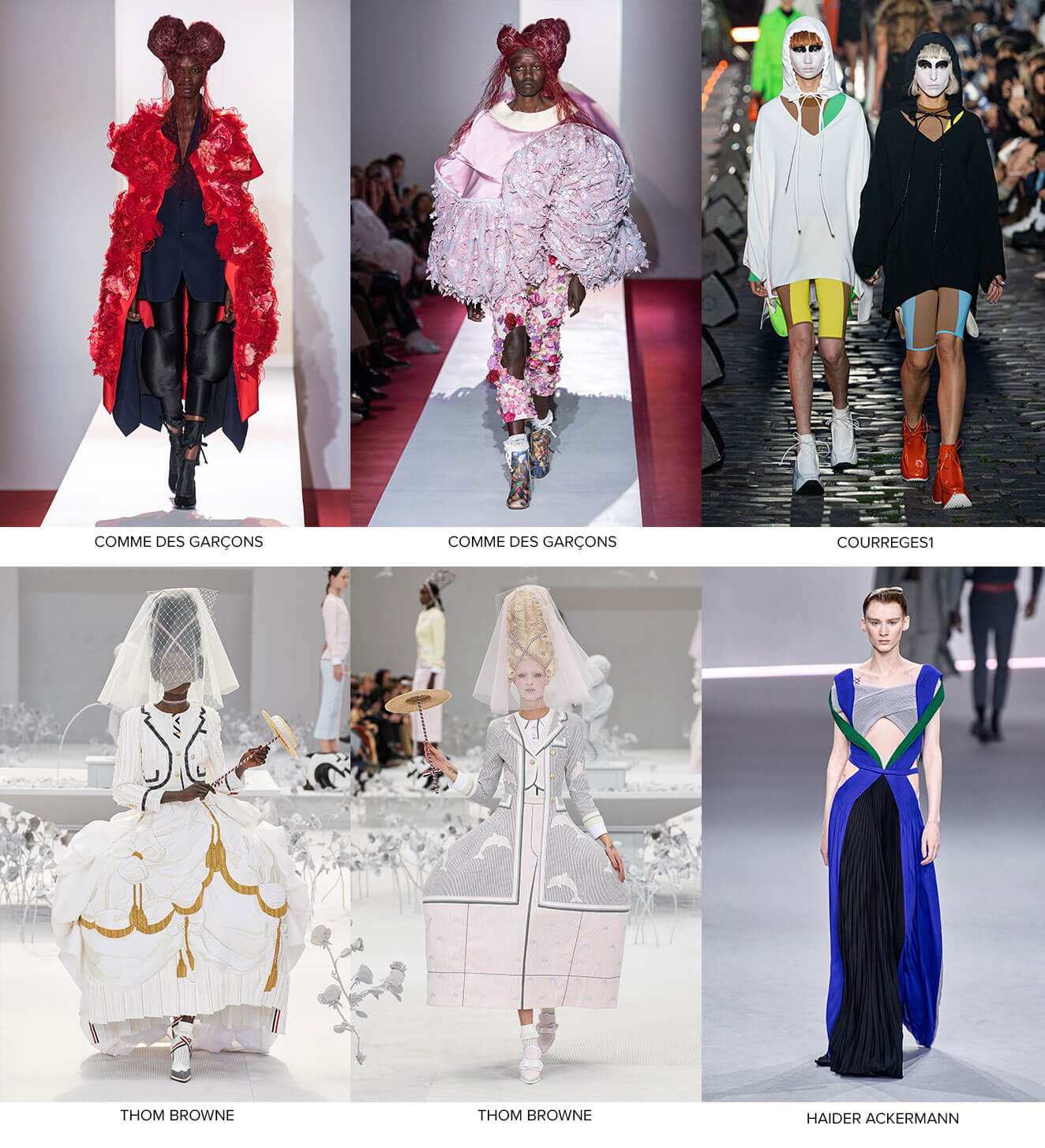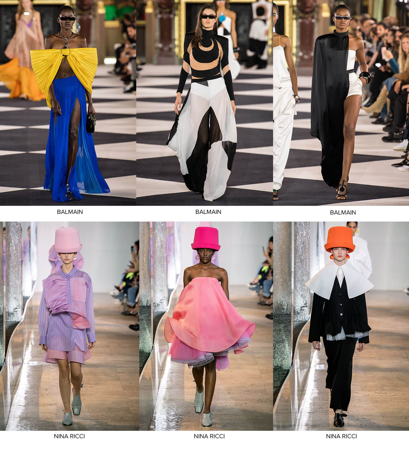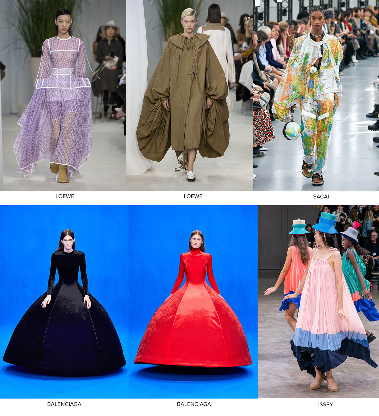 Мы выбрали 18 образов из множества необычных и захватывающих на весеннем подиуме и предлагаем черпать вдохновение для собственных экспериментов. К примеру, Loewe создали наряды, цитирующие платья 16-17 веков, и блузы-накидки эпохи Возрождения, Sacai посвятили коллекцию географии — и картографические принты покрывали самые женственные костюмы, а сумочки были выполнены в виде глобусов, Демна Гвасалия в Balenciaga придумал прямо-таки сюрреалистичные бальные платья, напоминающие не то наряды дервишей, не то костюмы балета Оскара Шлеммера из школы Баухаус. Balmain показали коллекцию, часть которой была полностью графичной и черно-белой, похожей на абстрактное искусство середины прошлого века, Nina Ricci предложили носить шляпу-ведро и блузы с шекспировскими воротниками под брючные костюмы, Том Браун пофантазировал на тему стиля Preppy и Марии-Антуанетты, возведя привычную классику дома в стиль рококо, а Рей Кавакубо превратила моделей в космические копии Елизаветы I.