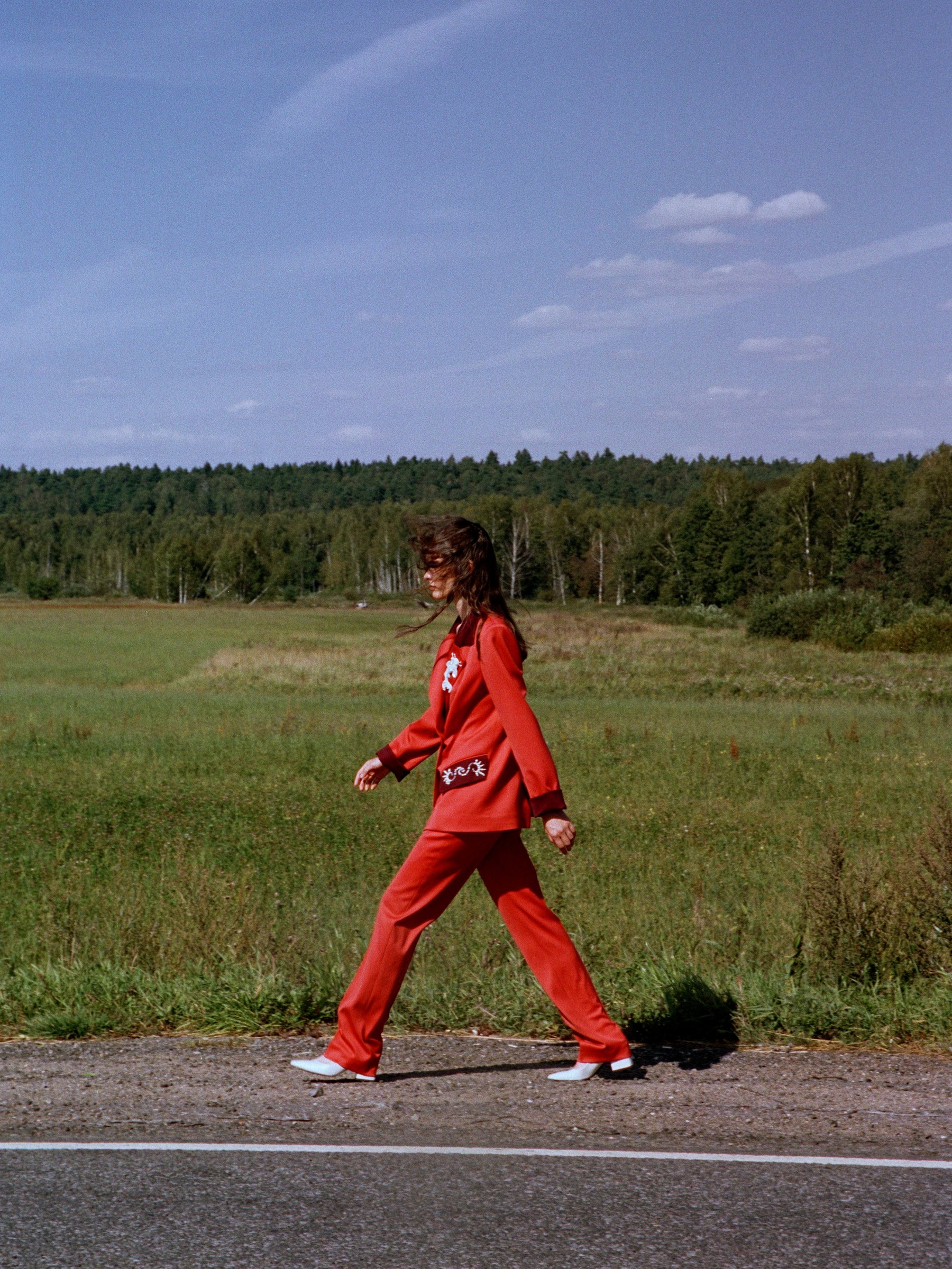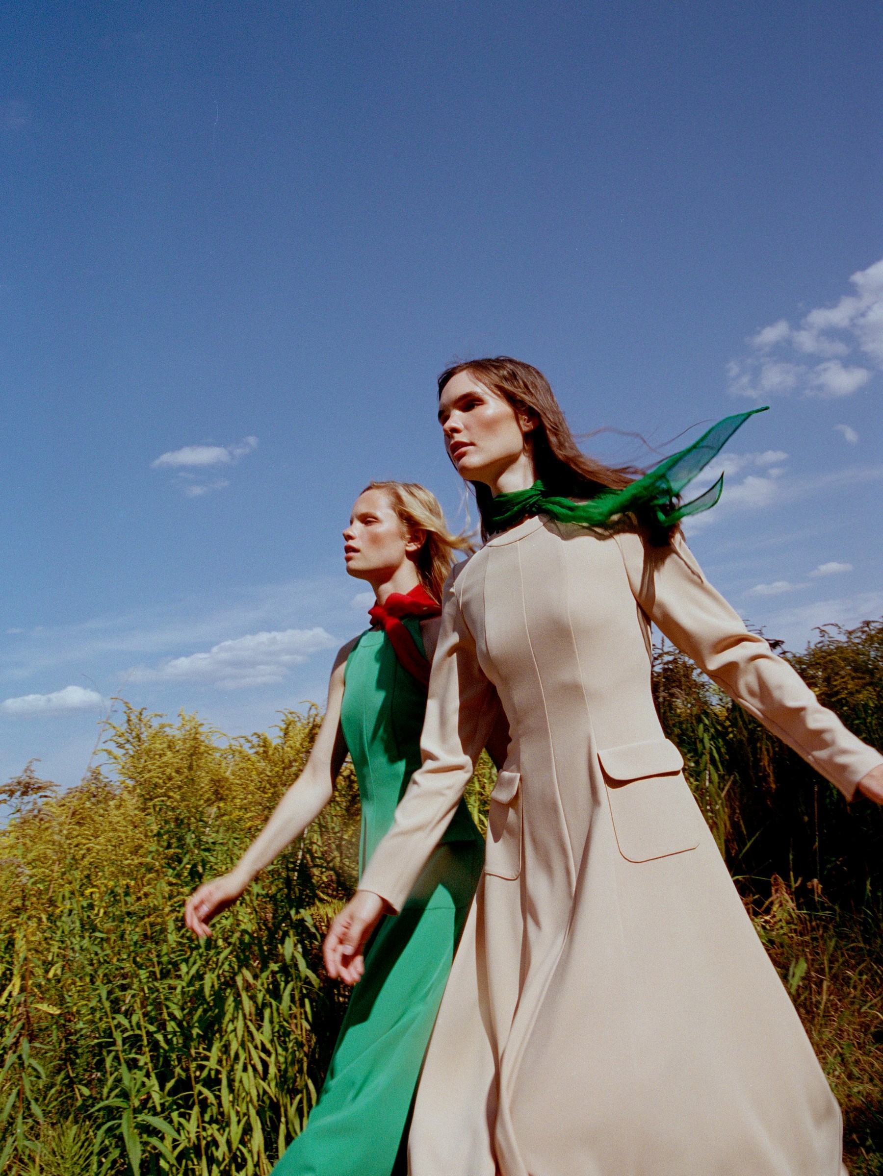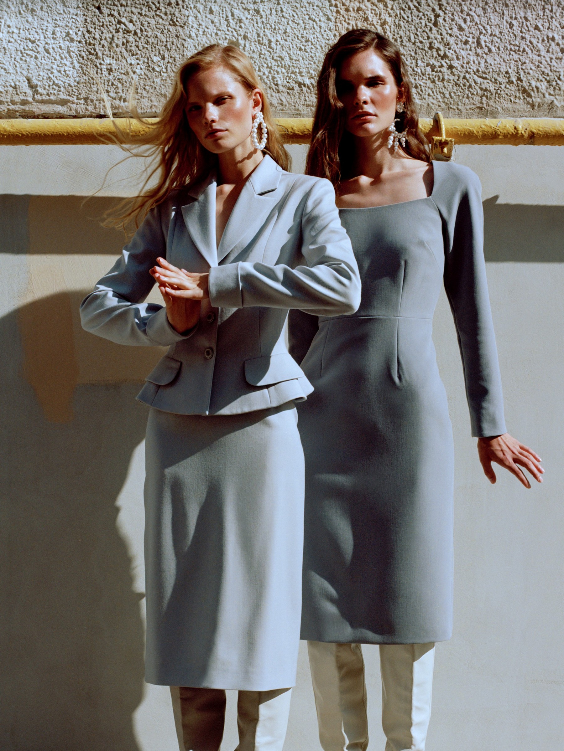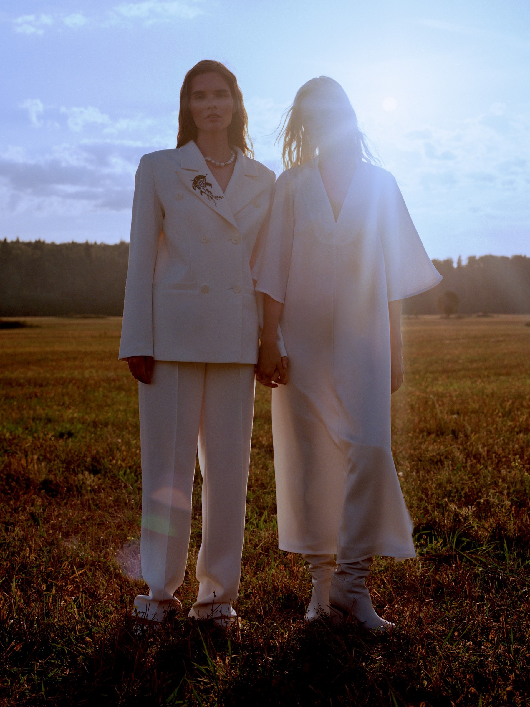 В новой коллекции бренда гармонично соседствуют органза, кашемир, твид, бархат и шелк, а цветовая палитра напоминает об осеннем парке оттенками охры и фуксии, а также фиолетовым, горчичным, алым и синим цветами. Помимо привычных костюмов и шелковых платьев, Nebo также представили уютные кардиганы из мохера и двубортный тренч из ярко-розовой кожи с меховыми вставками. Линейка брошей пополнилась миниатюрными сомами и бабочками, золотыми дубовыми листьями и цветками репейника, а коллекция жемчужных украшений Nebo — бусами и моноклипсами как в форме лаконичных капель, так и в более сложном варианте — с двойными спиралями.