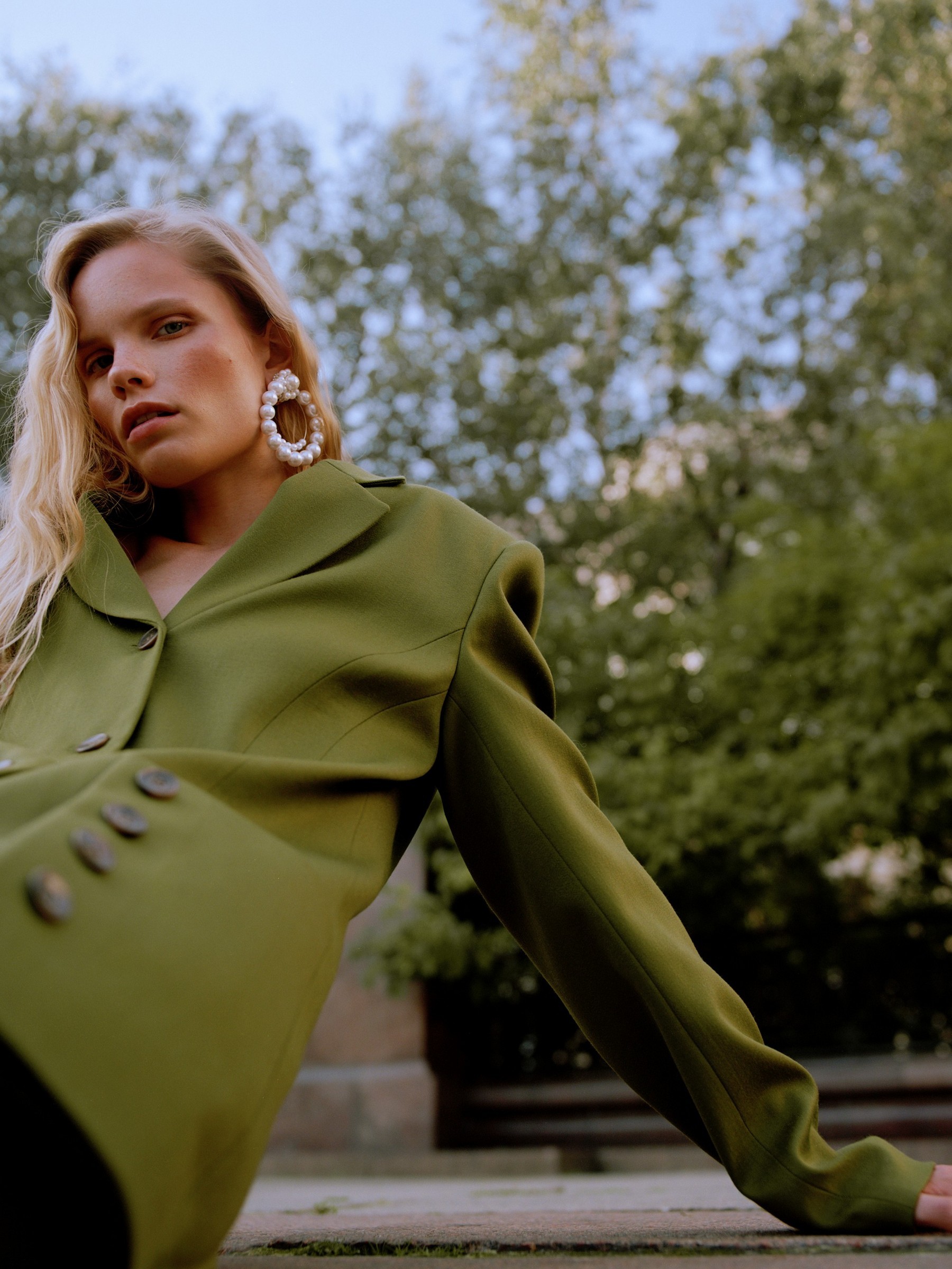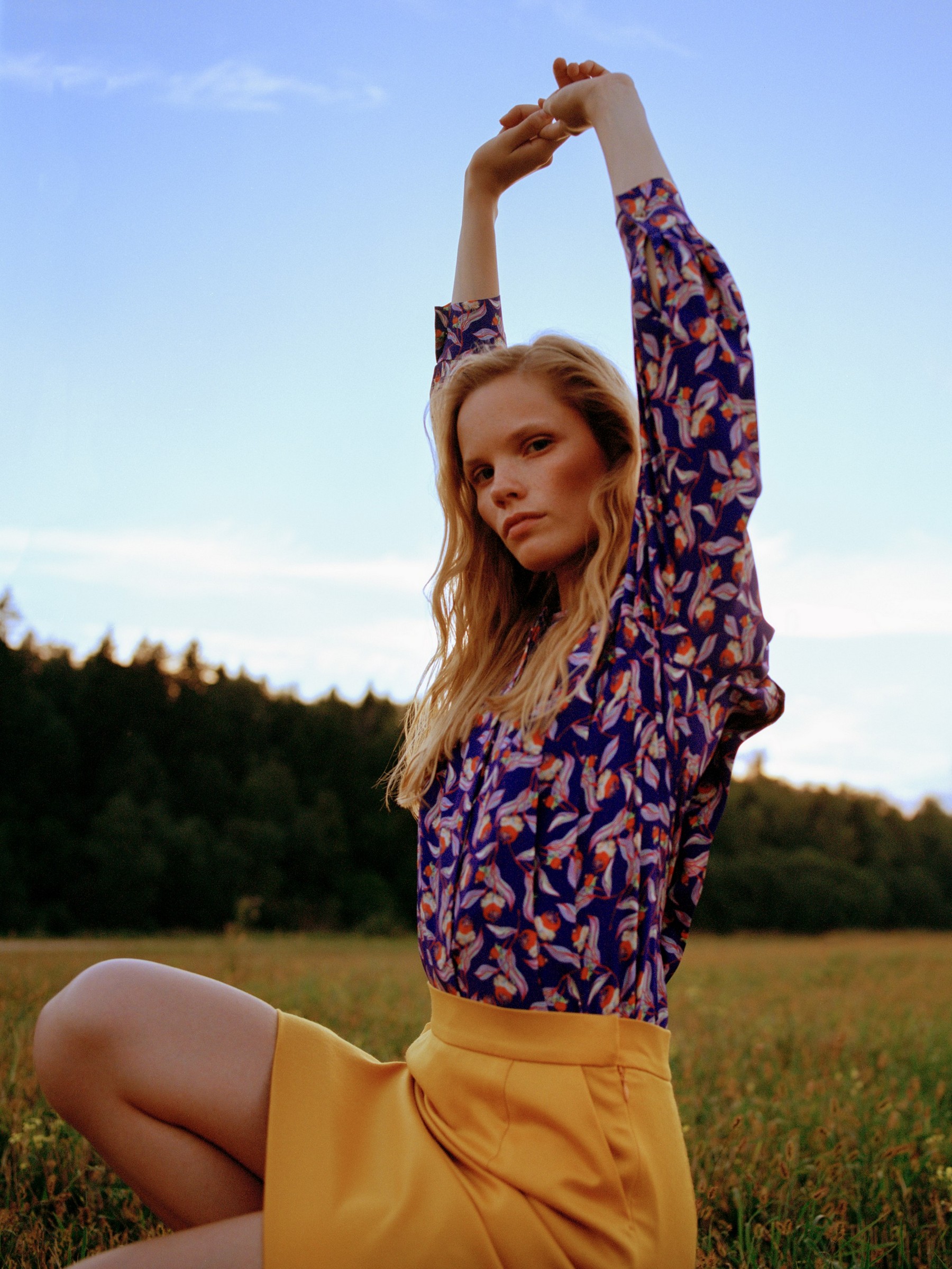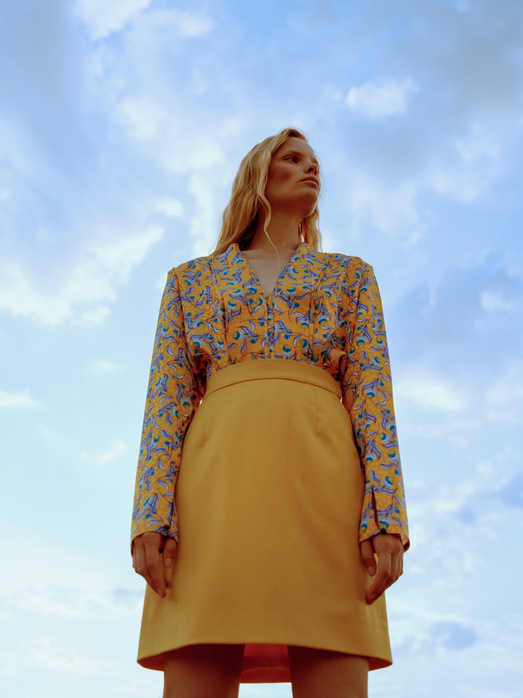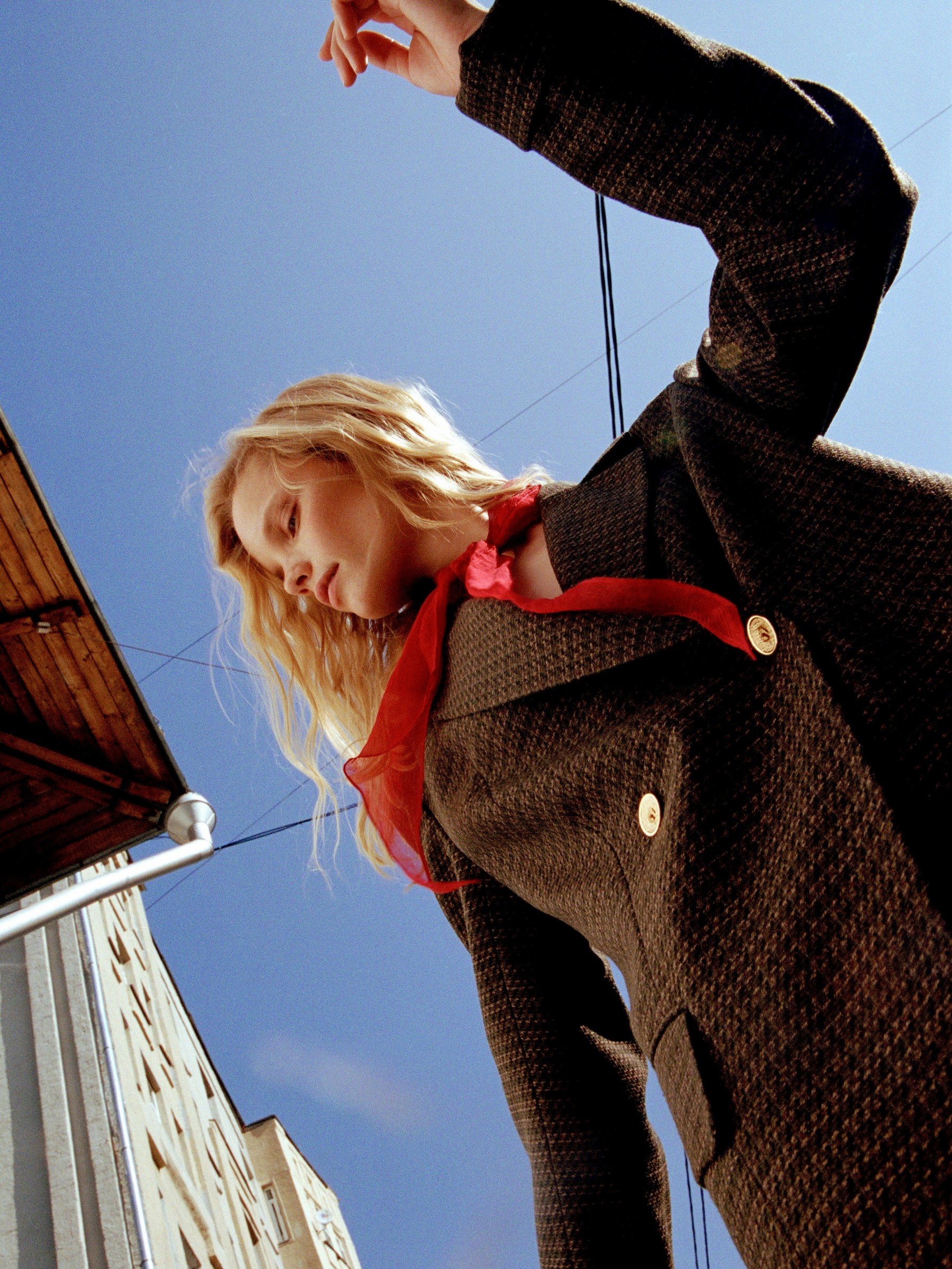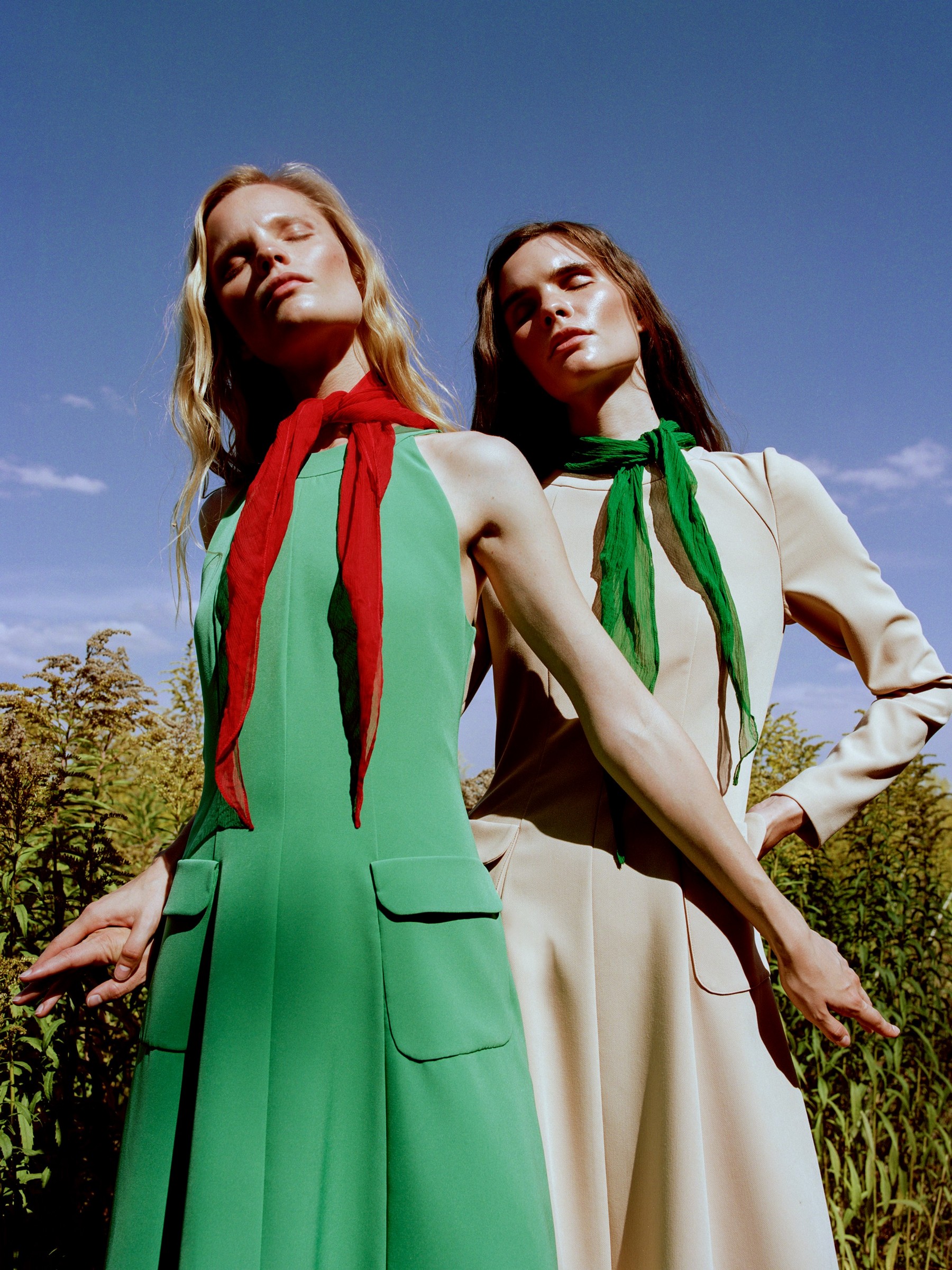 В новой коллекции бренда гармонично соседствуют органза, кашемир, твид, бархат и шелк, а цветовая палитра напоминает об осеннем парке оттенками охры и фуксии, а также фиолетовым, горчичным, алым и синим цветами. Помимо привычных костюмов и шелковых платьев, Nebo также представили уютные кардиганы из мохера и двубортный тренч из ярко-розовой кожи с меховыми вставками. Линейка брошей пополнилась миниатюрными сомами и бабочками, золотыми дубовыми листьями и цветками репейника, а коллекция жемчужных украшений Nebo — бусами и моноклипсами как в форме лаконичных капель, так и в более сложном варианте — с двойными спиралями.