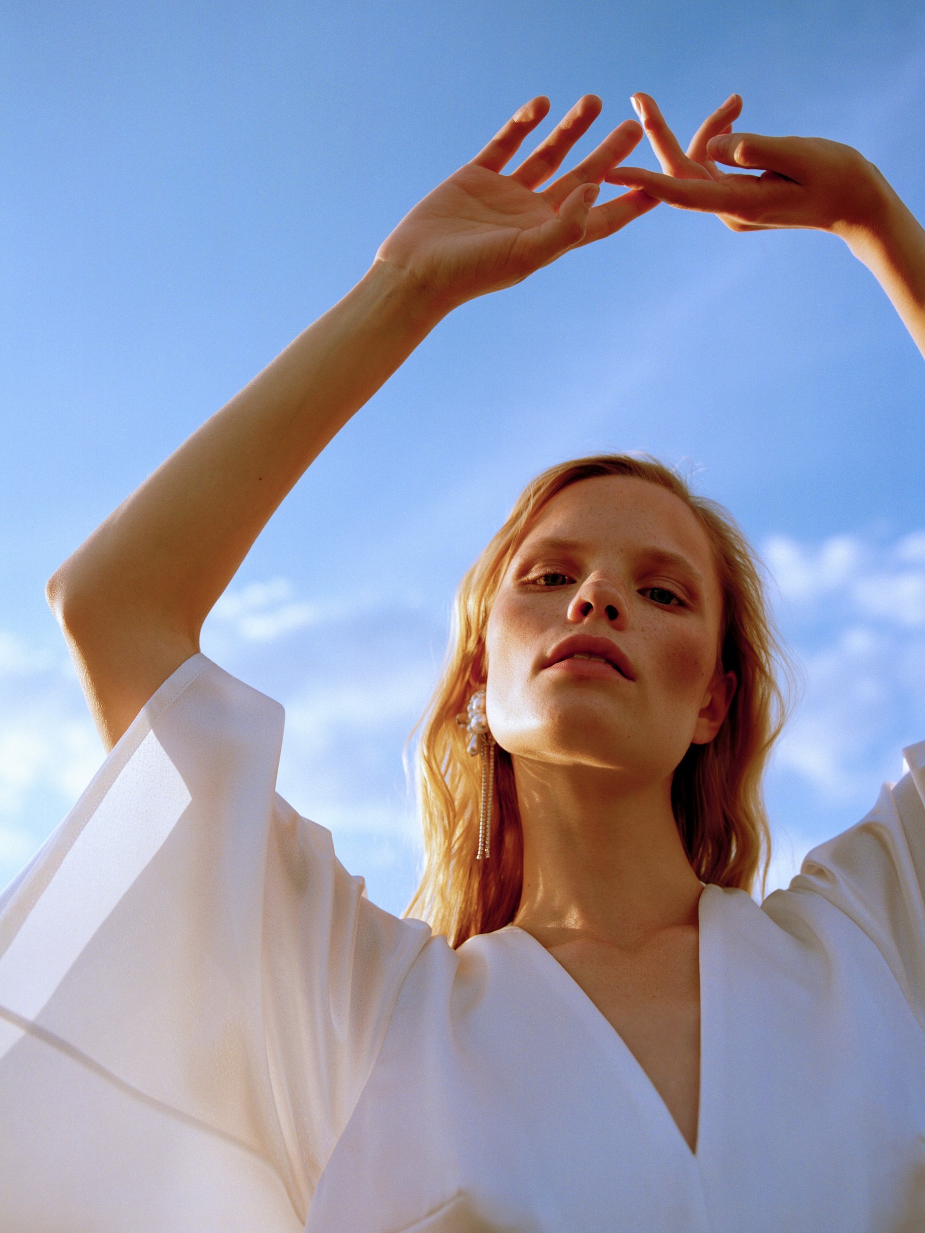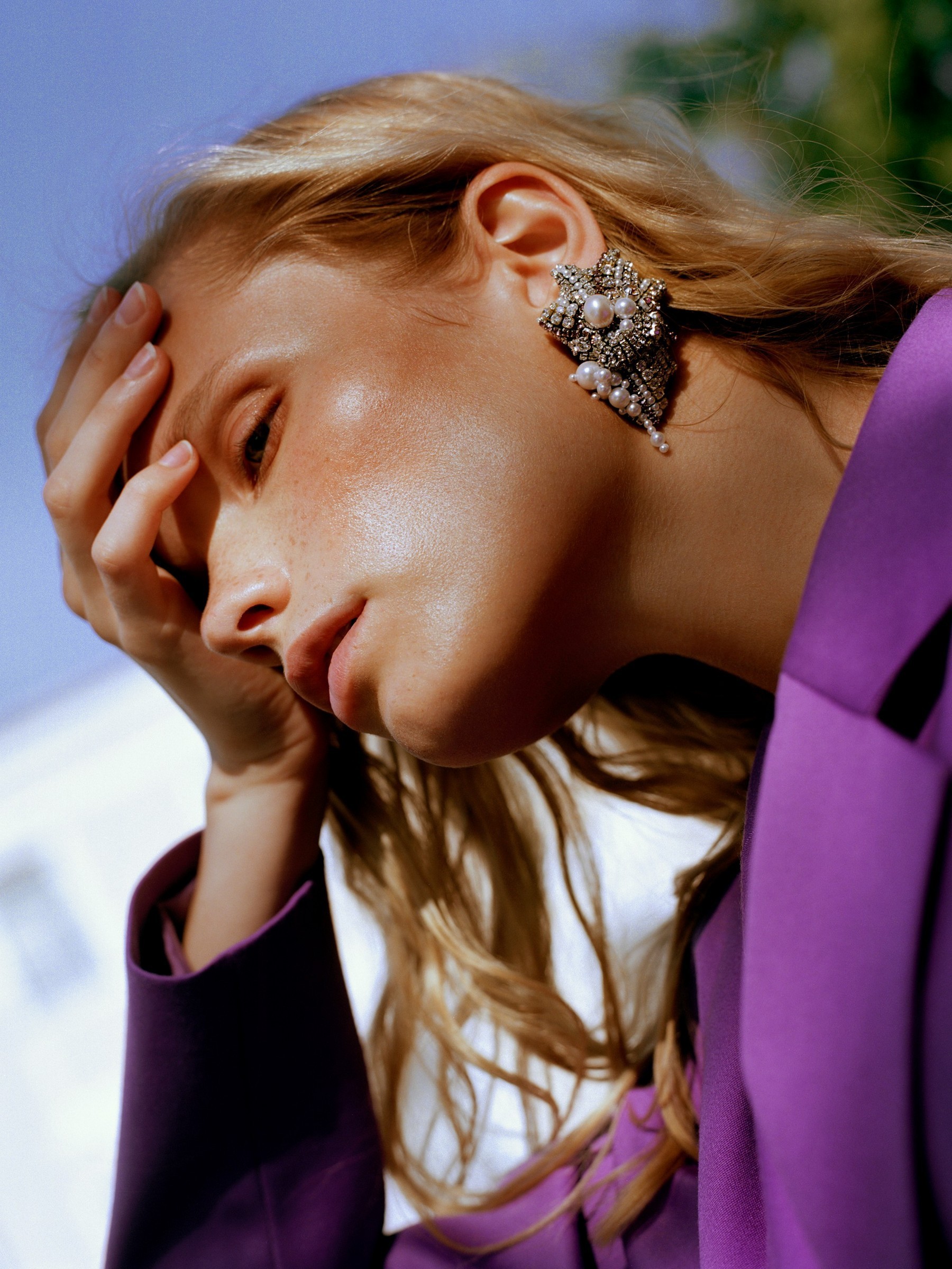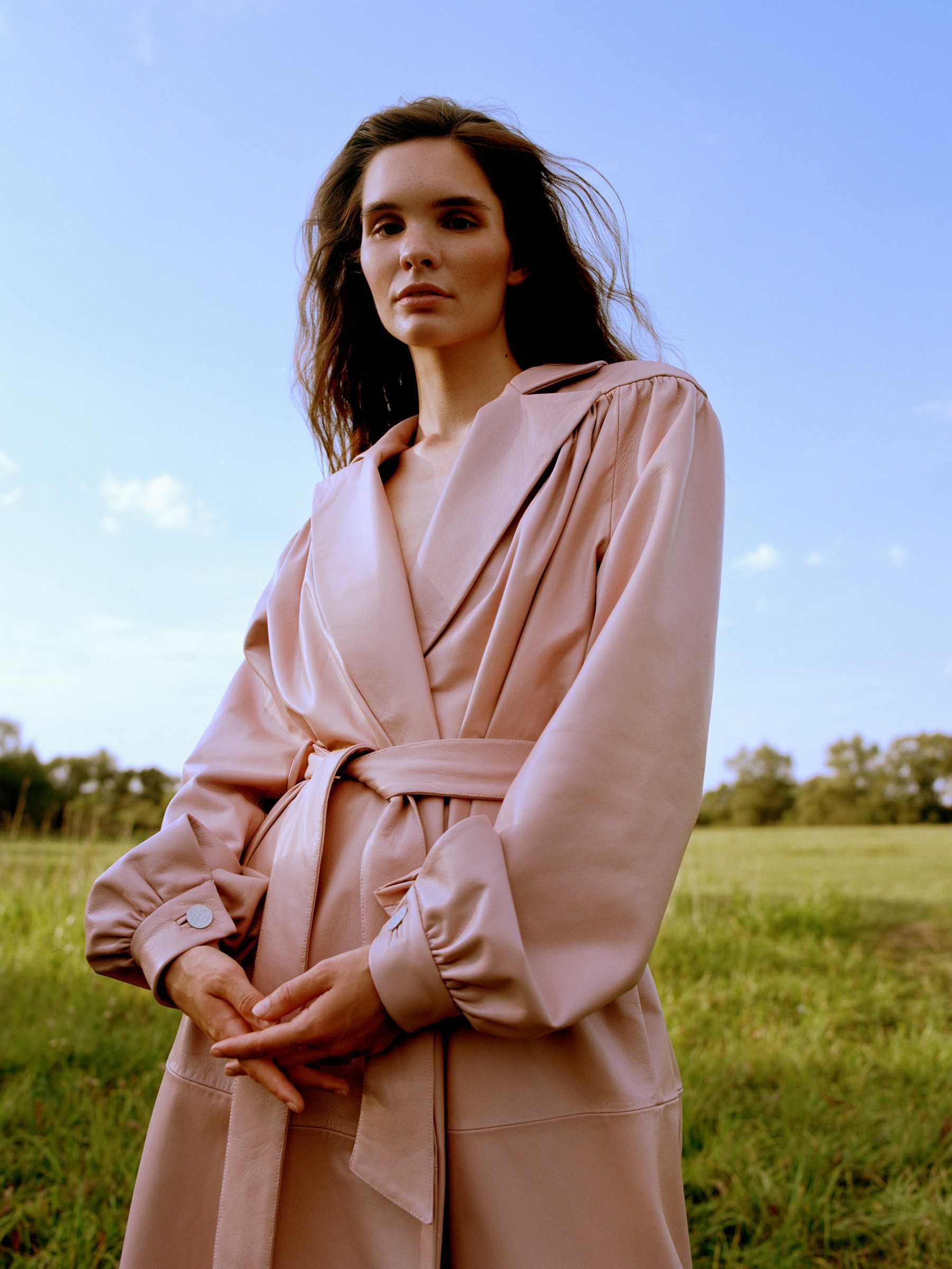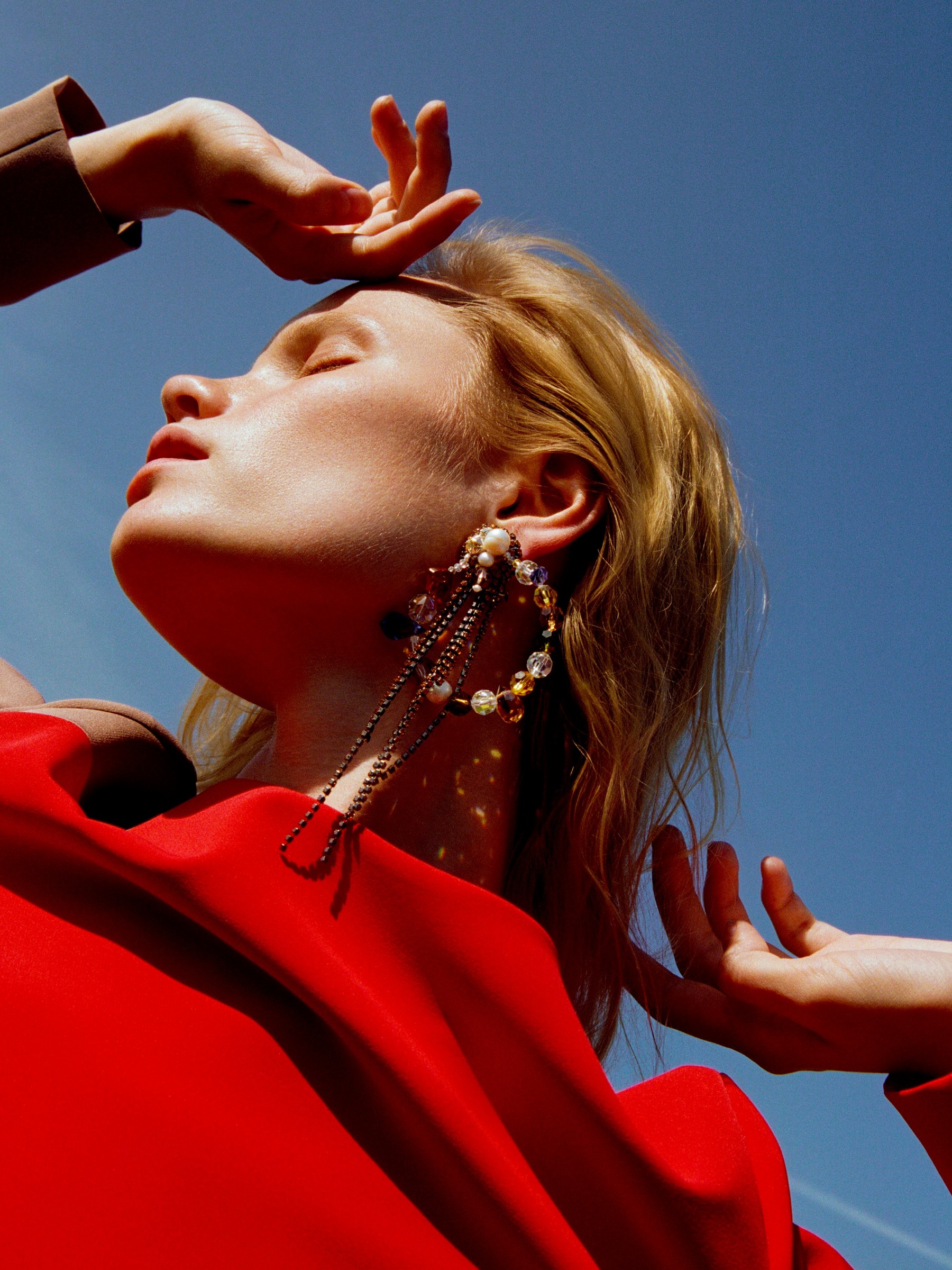 В новой коллекции бренда гармонично соседствуют органза, кашемир, твид, бархат и шелк, а цветовая палитра напоминает об осеннем парке оттенками охры и фуксии, а также фиолетовым, горчичным, алым и синим цветами. Помимо привычных костюмов и шелковых платьев, Nebo также представили уютные кардиганы из мохера и двубортный тренч из ярко-розовой кожи с меховыми вставками. Линейка брошей пополнилась миниатюрными сомами и бабочками, золотыми дубовыми листьями и цветками репейника, а коллекция жемчужных украшений Nebo — бусами и моноклипсами как в форме лаконичных капель, так и в более сложном варианте — с двойными спиралями.