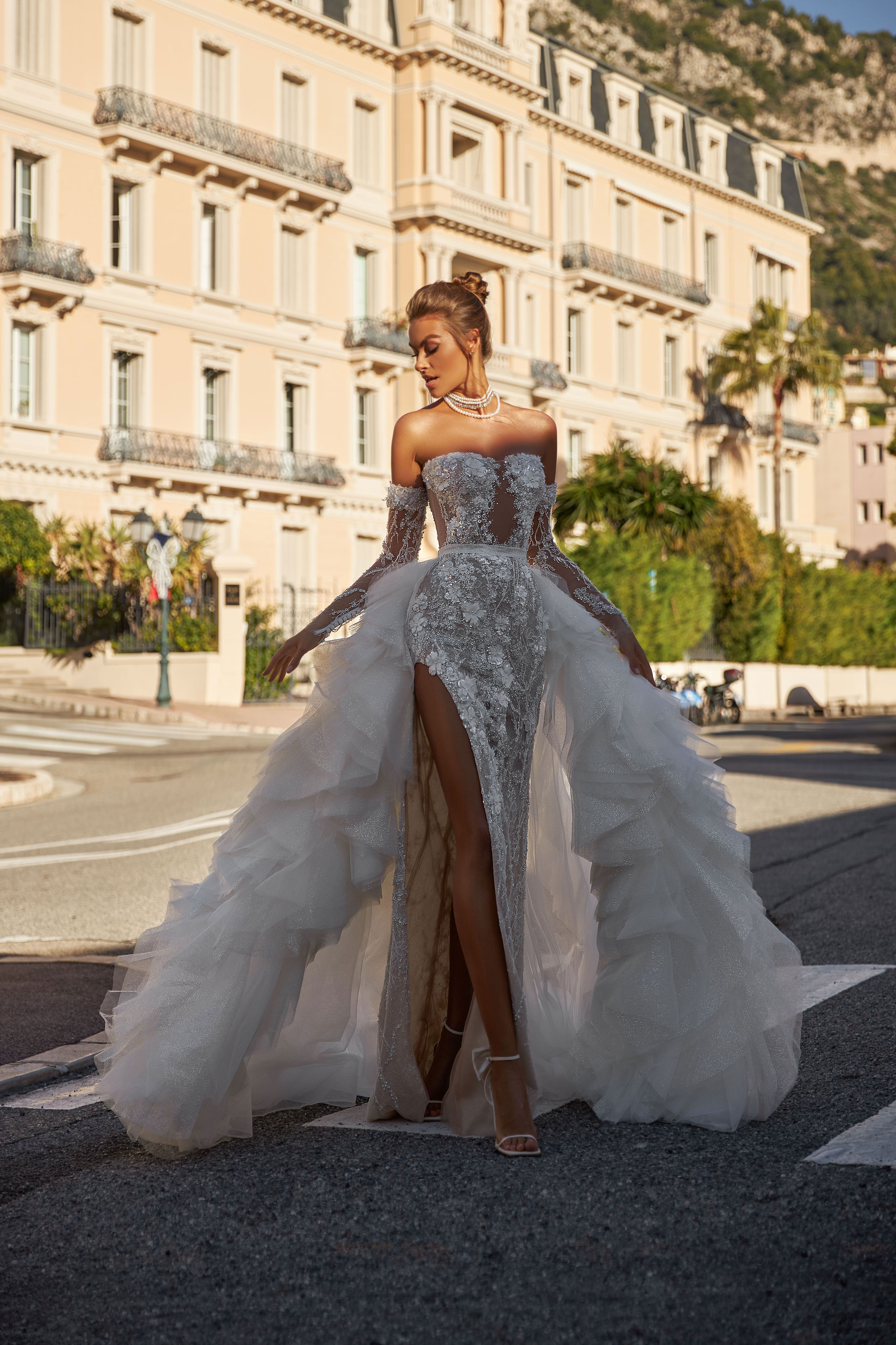 Колекція пропонує нареченим унікальну можливість відчути себе найгарнішими в цей особливий день, насолоджуючись романтичними поєднаннями мережева з ручною роботою квітів, що додає сукням витонченості та елегантності.