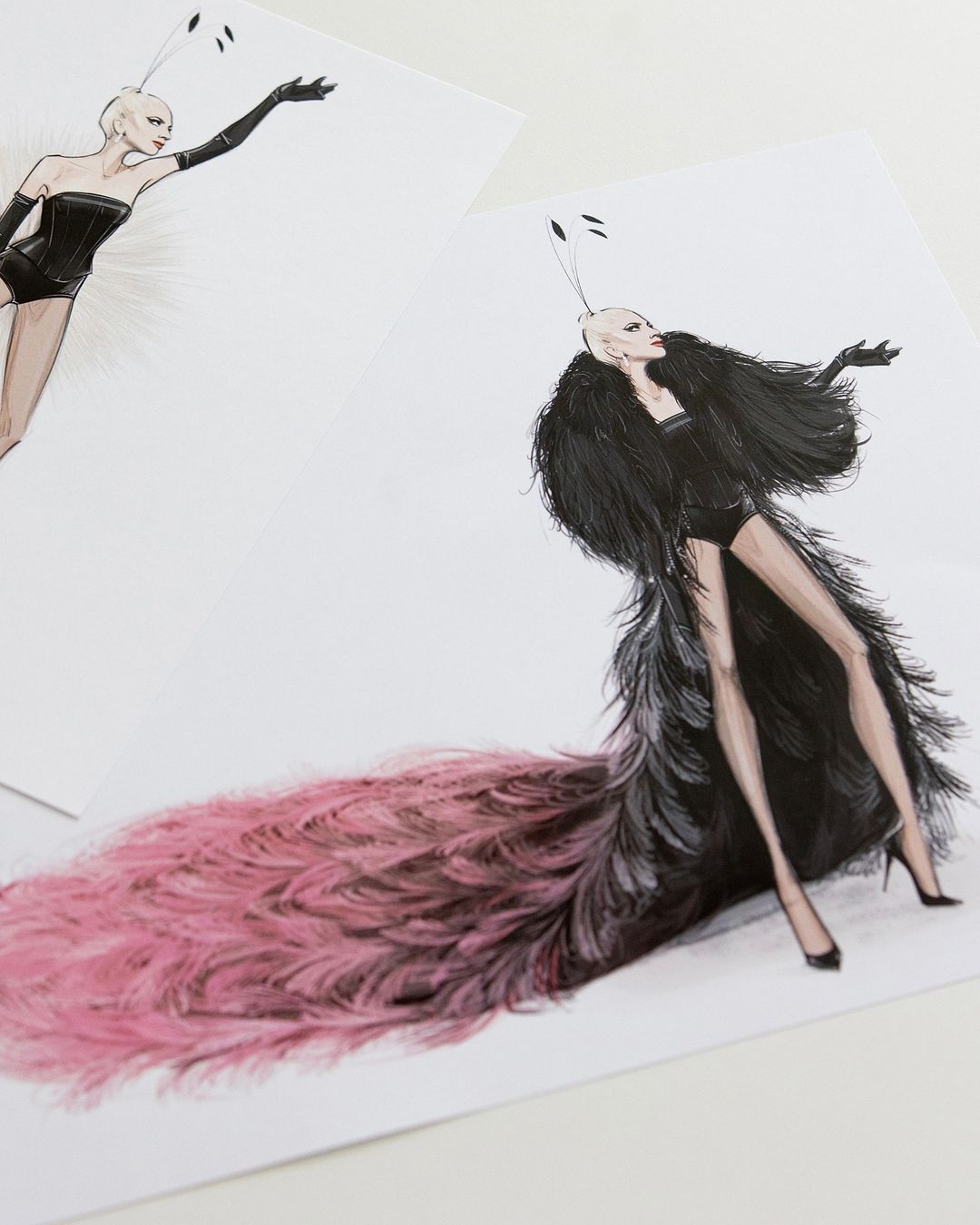 «Mon Truc en Plumes» («Моя річ з пір’ям»), — співала Леді Гага на сцені Олімпійських ігор — 2024 на фоні Ейфелевої вежі. Її образ дослівно цитував пісню французької співачки Зізі Жанмер: поверх чорного корсету та мікрошорт знаменитість одягла кардиган та довгу спідницю, повністю розшиті пухнастим пір’ям. Завдяки такій комбінації Леді Гага змогла змінити чотири образи впродовж свого інтерактивного виступу.