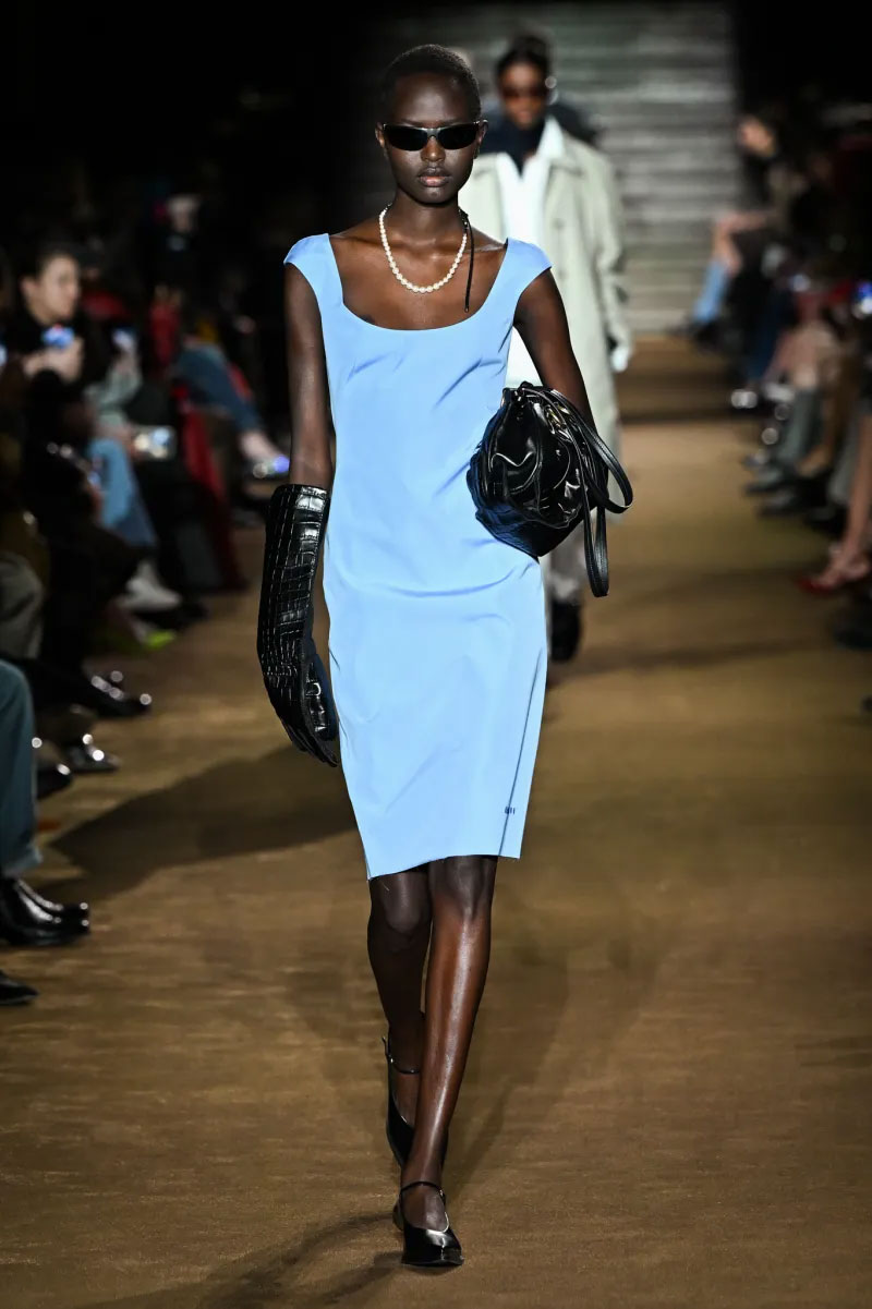 Йдеться про поєднання піджака або блейзера з широкими плечима, напівпрозорого топу з V-вирізом і приталеної максіспідниці. Окремої уваги заслуговує образ Sportmax з огляду на актуальне розміщення підвіски з перлами. Щоб відтворити таке модне рішення, необхідно лише розташувати прикрасу під коміром блузки.