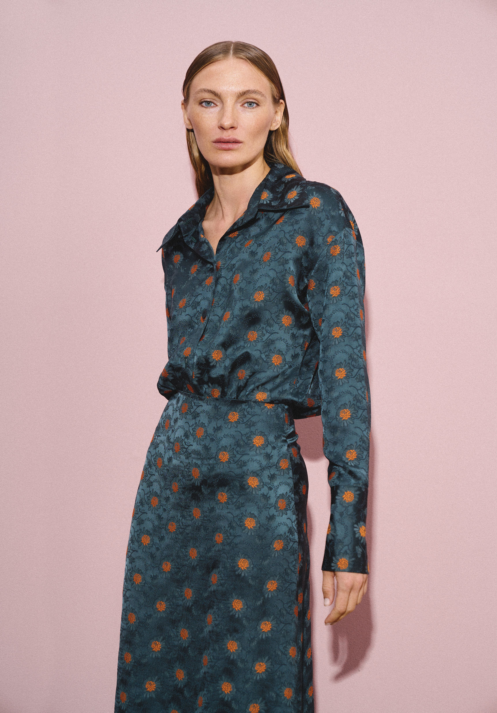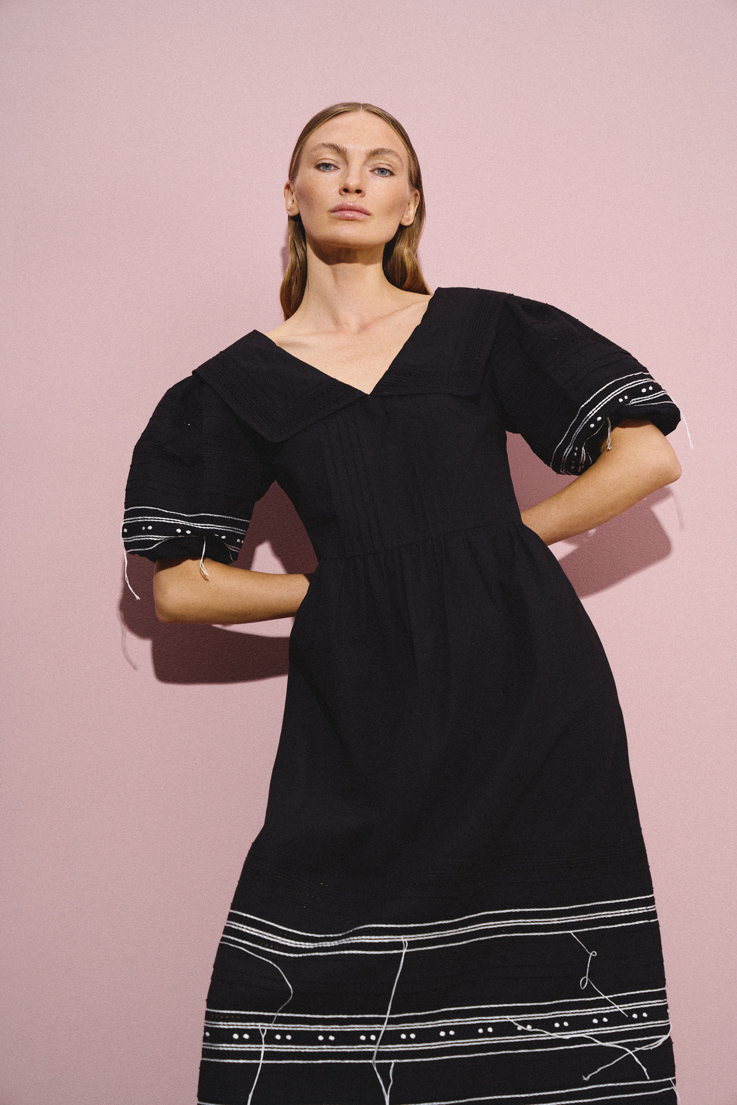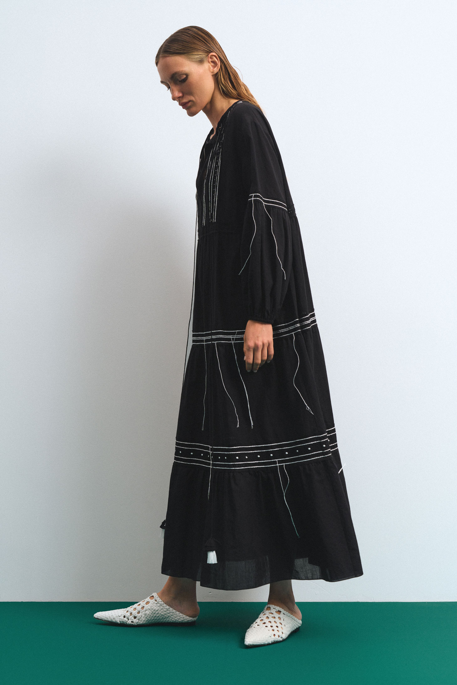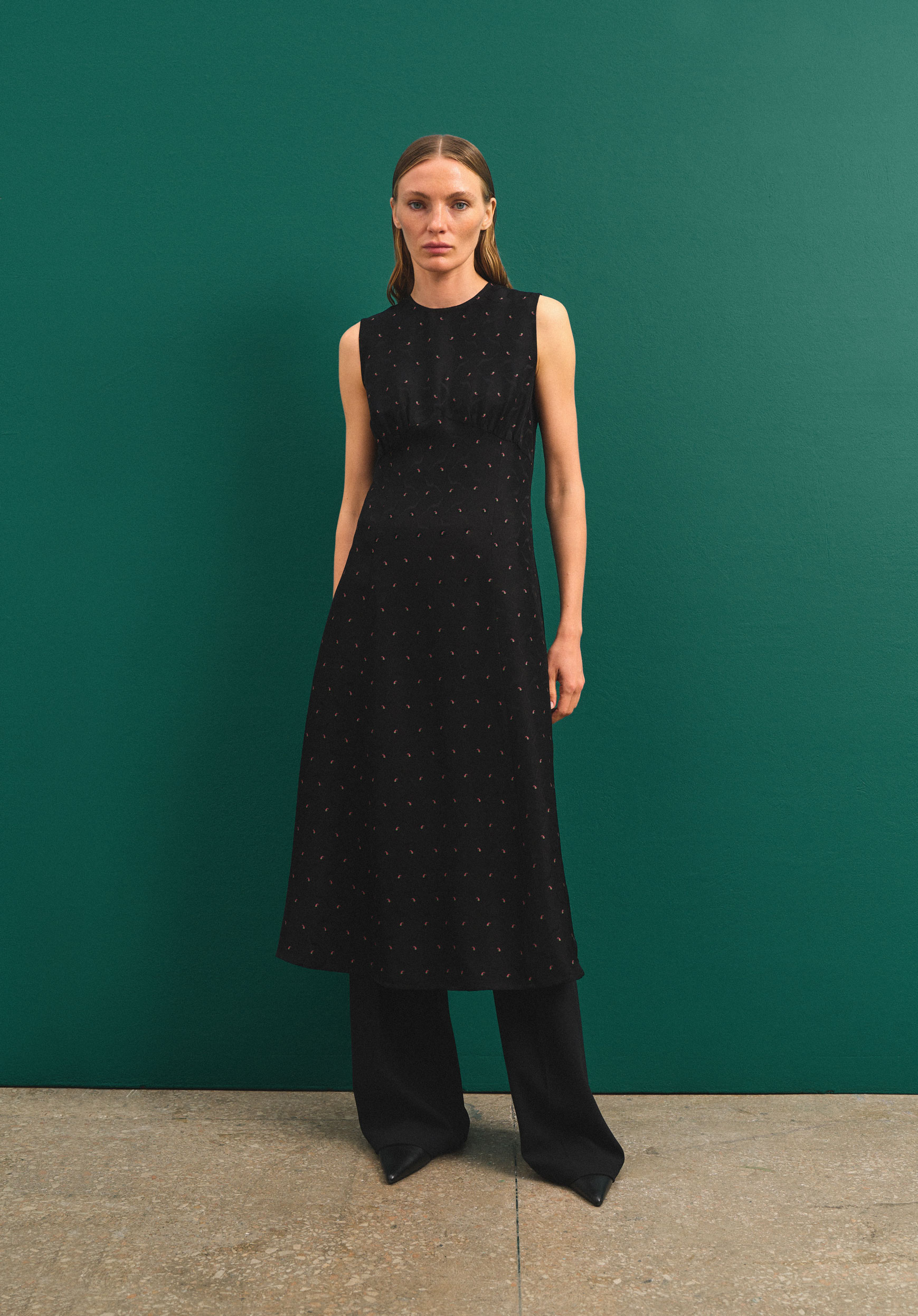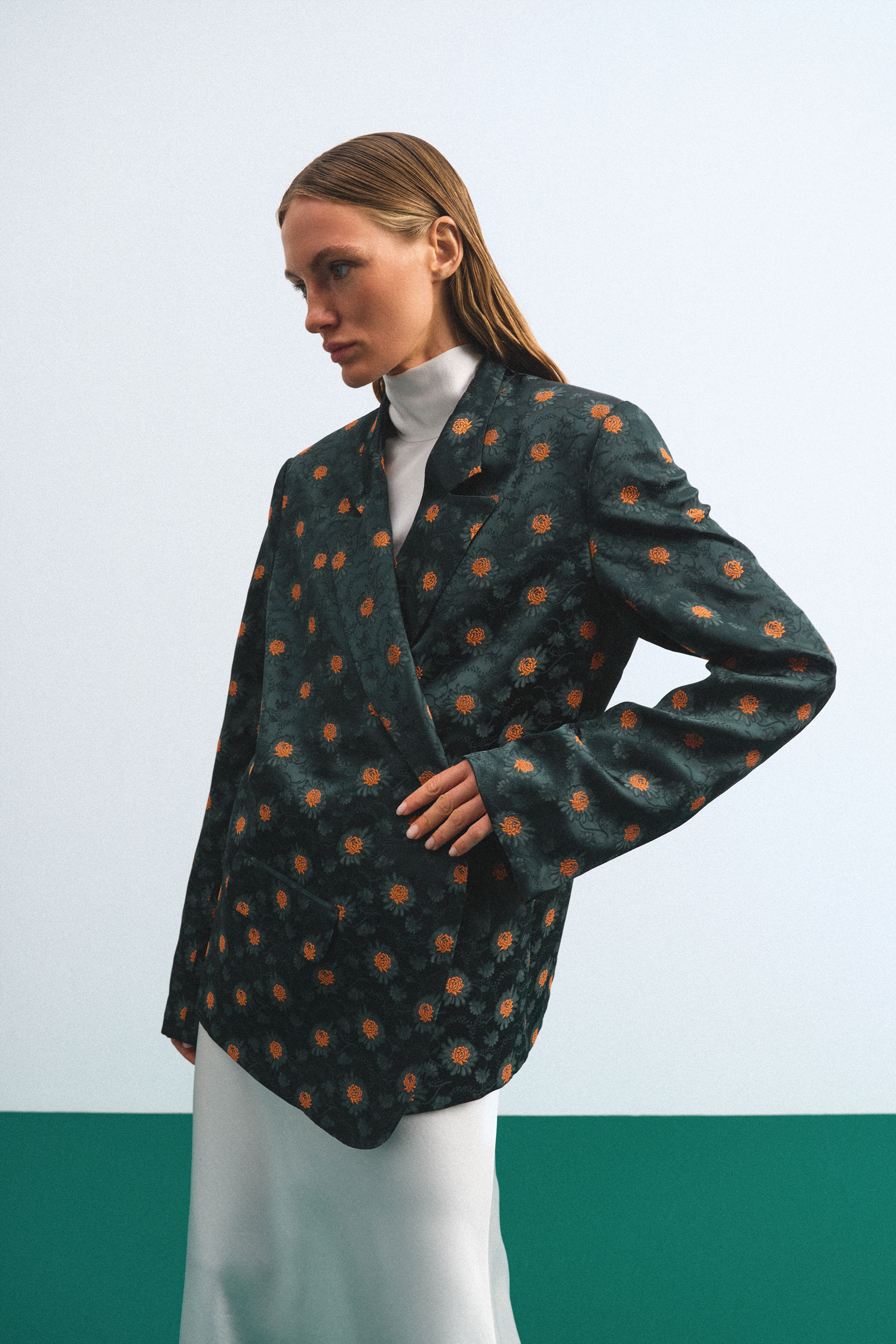 Цей сезон продовжує традиційні етнічні мотиви бренду та деталізовану графічну вишивку, що додають кожній моделі унікальності, а цупкі жаккардові тканини створюють гармонію форм, надаючи впевненості та стабільності образам.