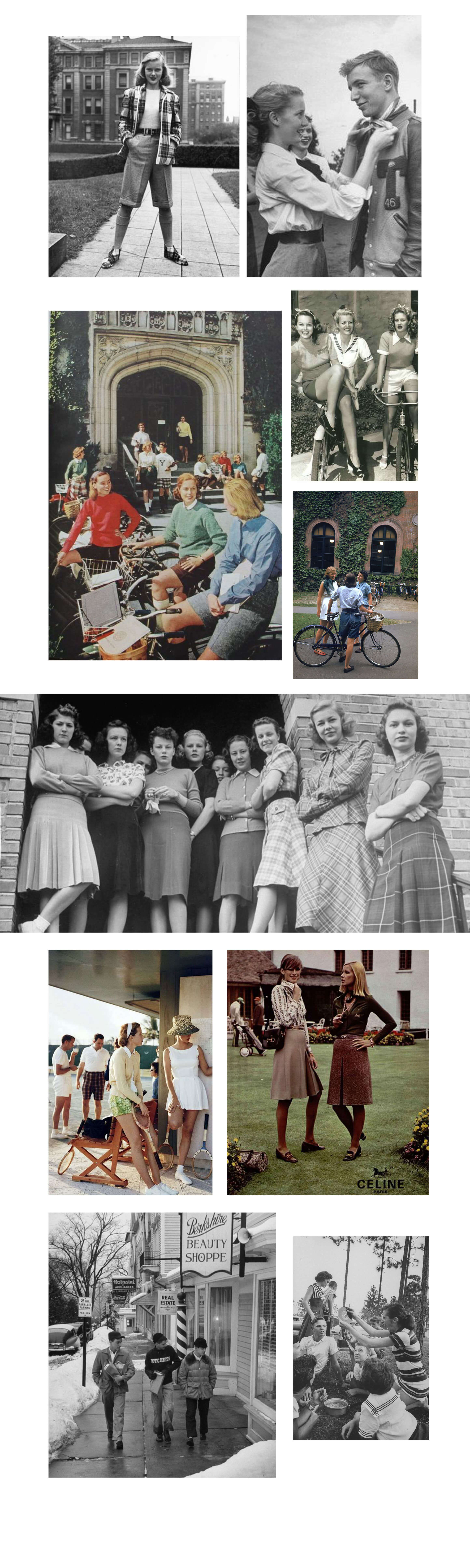 В 1940-х среди подрастающего поколения детей буржуа получил популярность ярко выраженный стиль preppy. Он имел специфические черты, его ни с чем нельзя было спутать, и довольно быстро он превратился в показатель элегантности и социального превосходства. Слово preppy — производное от preparation, что переводится как «подготовка». Выпускники престижных высших школ проходили подготовку к поступлению в элитные вузы, и правилами школ им было предписано носить форму, отличающую одно заведение от другого. То же было и с самими университетами. Аккуратные брючные костюмы, шорты-бермуды с заутюженными стрелками и скошенными карманами, тройки с жилетами в клетку тартан, кашемировые джемперы с эмблемами и спортивная форма — эта одежда стала настоящим фетишем в последующие десятилетия как символ особой привилегированности. Причём интеллектуальный дух вещей придаёт их владельцам интеллигентный и благородный шарм. К середине 50-х стиль «золотой молодёжи» вышел за рамки учебных заведений и стал настоящим трендом. Достойное образование с конца 40-х стали массово получать девушки, и именно благодаря им в моду окончательно вошли всевозможные вариации ученической формы. Плиссированная юбка, белоснежный воротничок рубашки, выглядывающий из-под однотонного джемпера, гольфы и туфли-оксфорды, а также сумка-сэтчел — такой образ стал особенно тиражируемым к 1960-м. Немало повлияли на preppy-моду и The Beatles, которые напоминали вылощенных студентов Лиги плюща. В 1970-х мода на стиль элитных абитуриентов вспыхнула с новой силой, и если поначалу вся эта история с исключительностью и нарочито подчеркнутой ученической эстетикой процветала в Новой Англии (на старых деньгах), то к концу 60-х вылилась на просторы Европы. Отдельно стоит отметить, что американские нувориши, во всем стремившиеся подражать британской аристократии, умело генерировали свой обособленный «университетский шик». Носить вещи в духе «английских мажоров» из Кембриджа дизайнеры предлагают в ближайшие сезоны. Причём достоверность не главное в данном случае: можно переигрывать спортивную одежду на манер униформы, интегрировать в образ элементы готики или даже фетишизма, как у Gucci. Для любителей сдержанной и утонченной классики вещи из коллекции Victoria Beckham весна-лето 2020 станут идеальным дополнением к гардеробу.