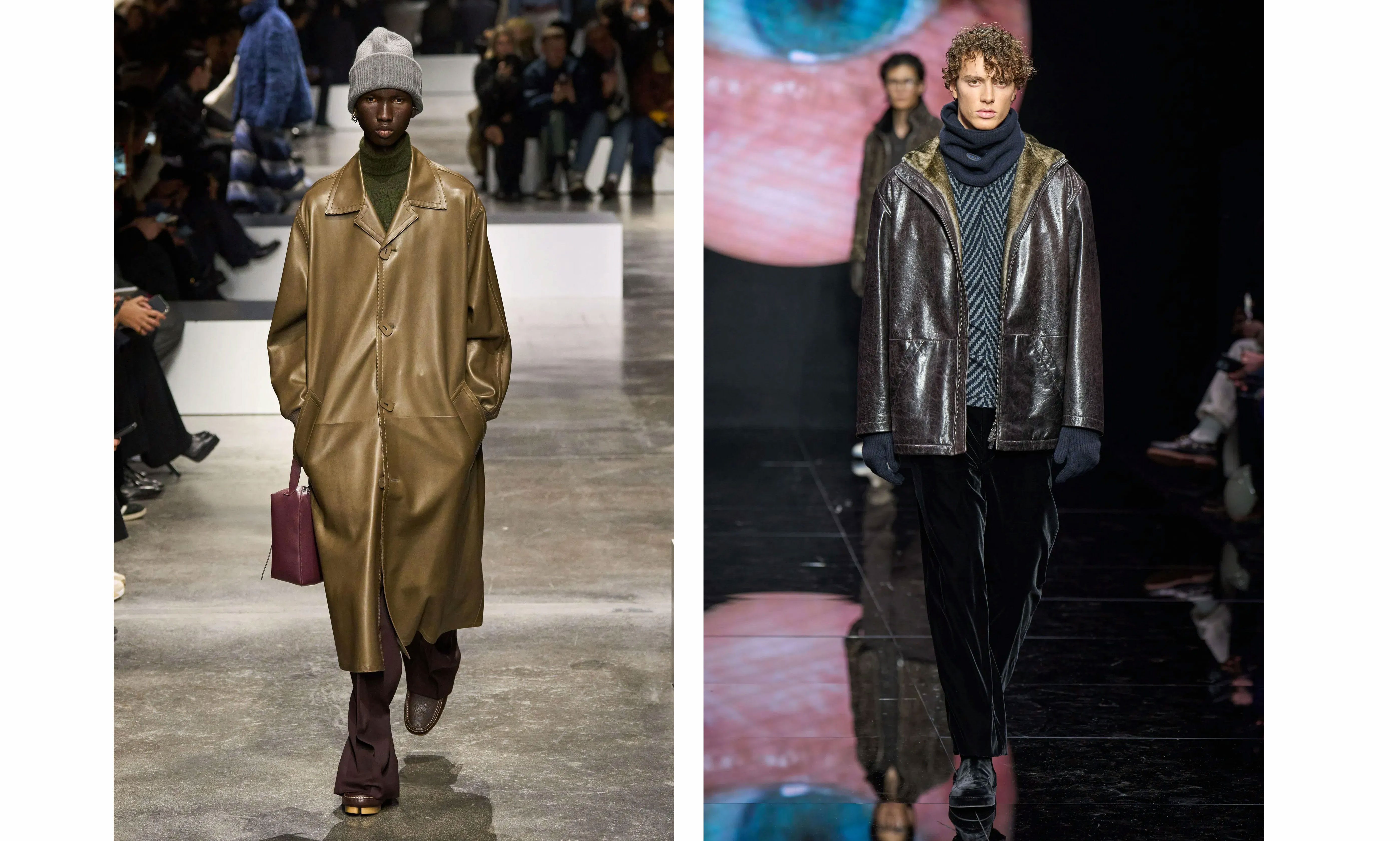 Шкіряний верхній одяг повернувся на подіуми в новій — або тільки забутій — інтерпретації. Полірована до сяйва шкіра була представлена в тренчах, пальтах та куртках різноманітних кольорів.
