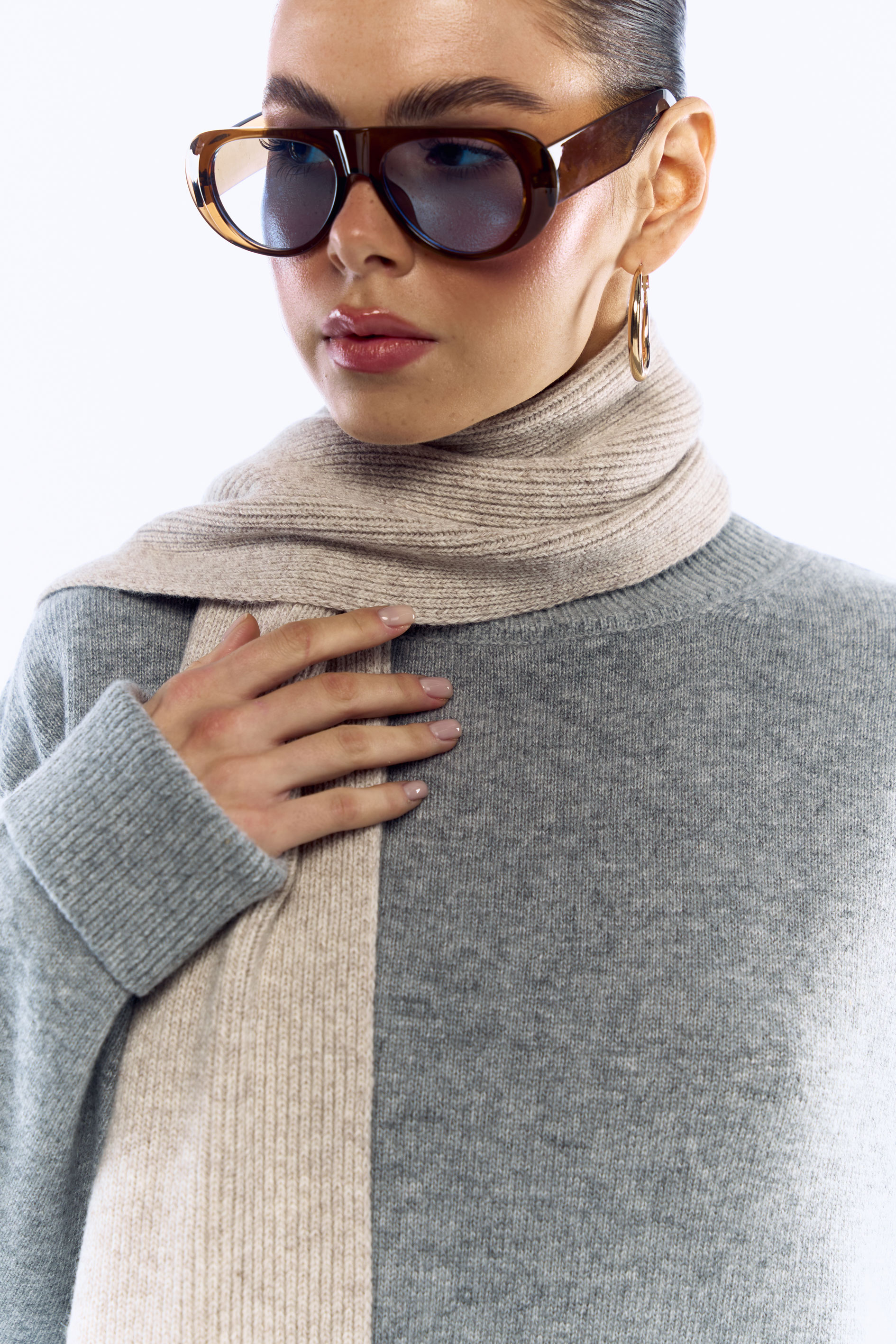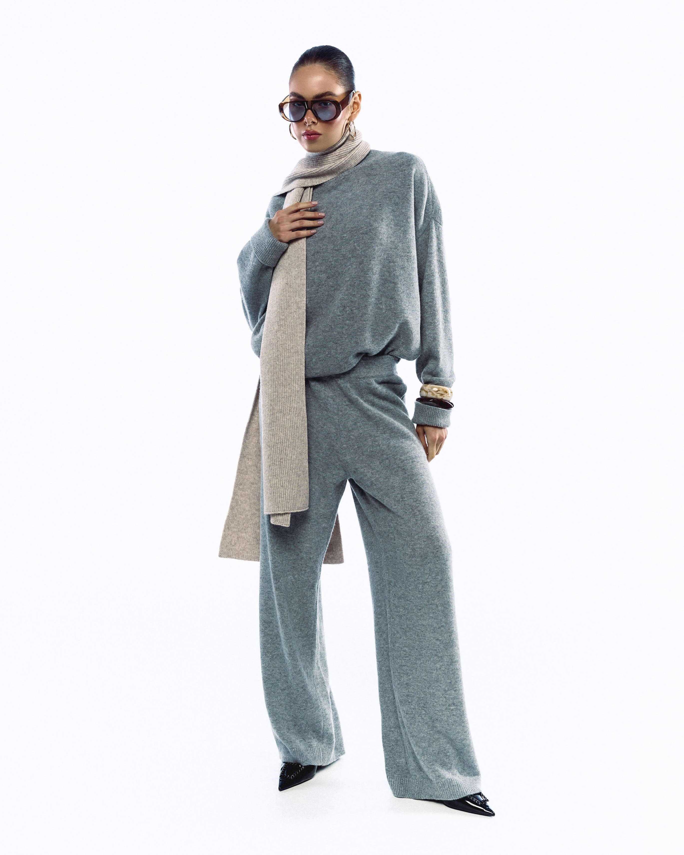 Палітра сезону — це стримана поезія зимових відтінків: dark blue, light beige melange, milk та grey. Вони взаємодіють між собою, створюючи делікатну гру світла і глибини. У цих кольорах — відчуття внутрішньої сили, спокою та витонченості. Вони підкреслюють фактуру пряжі, додають об’єму і перетворюють knitwear на об’єкт естетичного задоволення.