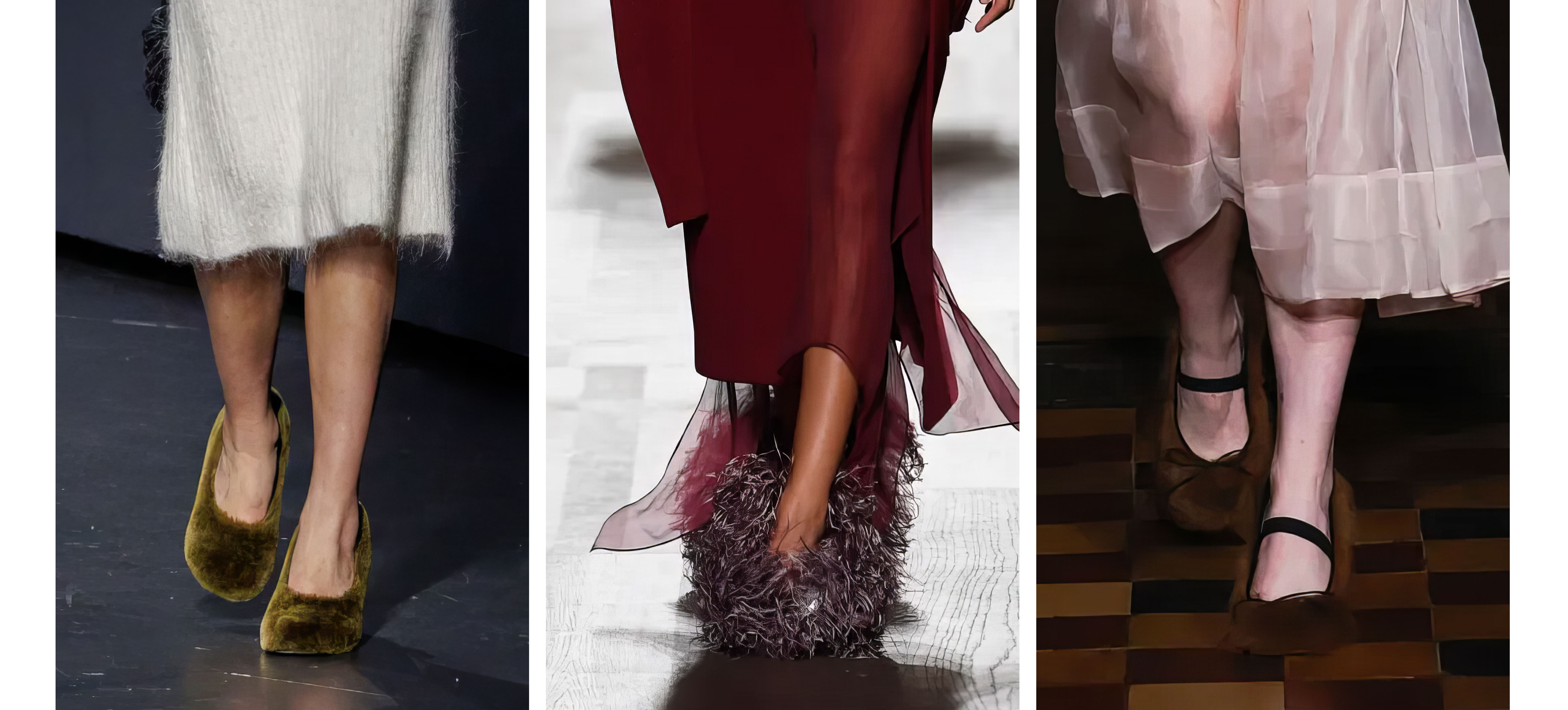 Схоже, в сезоні осінь-зима 2024/2025 дизайнери бажають «прямолінійно» огорнути нас затишком і теплом. Так, на численних подіумах з’явилися «пухнасті», щільно декоровані пір’ям прикраси, сумки та взуття. Останнє, зокрема, було помічене в кількох версіях: туфлях різних відтінків, моделях Mary Jane й таких, що своїм «м’яким» оздобленням тягнуться підлогою.