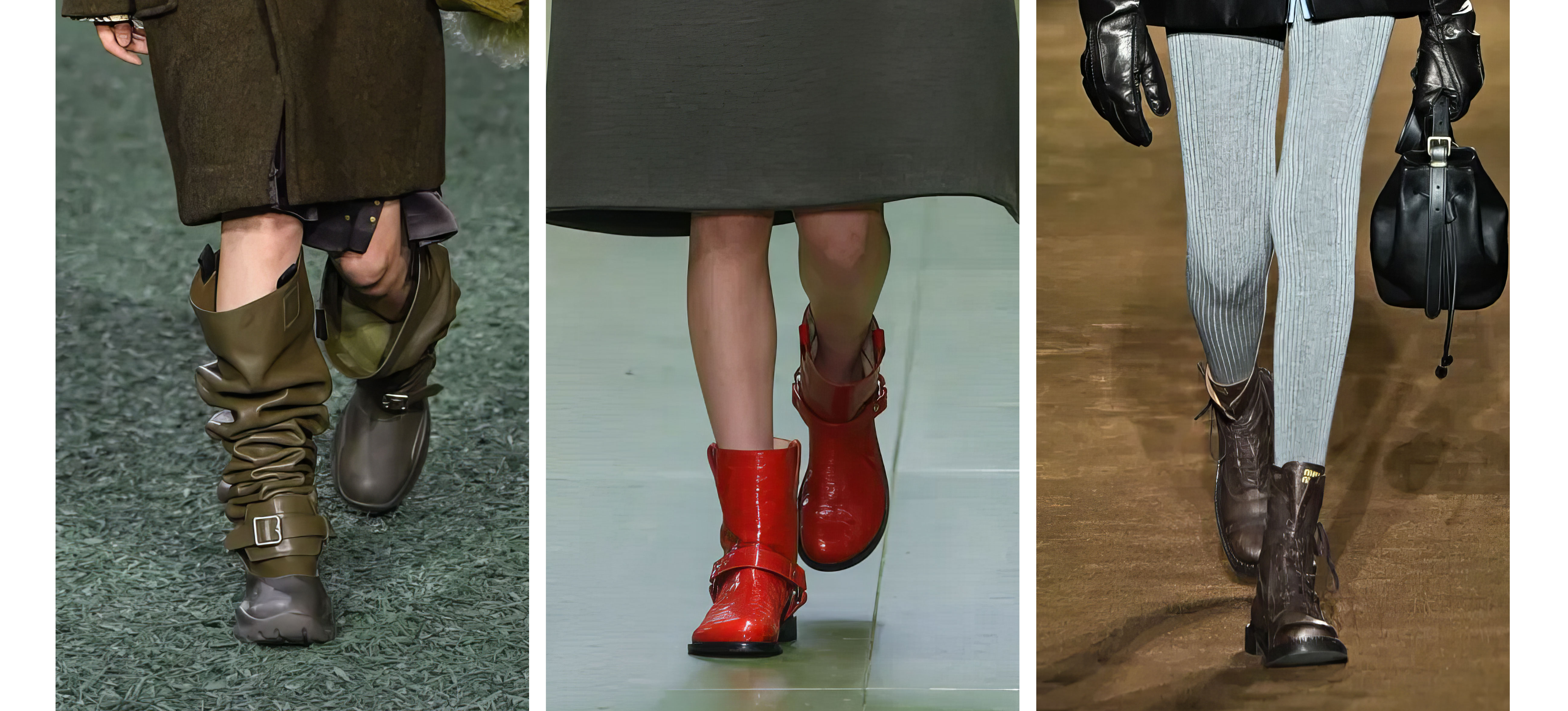Минулої осені й зими «байкерські» чоботи були на піку своєї популярності й без сумнівів не збираються втрачати її цього сезону. Дизайнери також представили інші гранжеві моделі, доволі громіздкі, з ремінцями, пряжками та шнуровані. За натхненням для вибору моделі звертаємося до колекцій Miu Miu, Loewe, Ann Demeulemeester, Coach і Burberry.