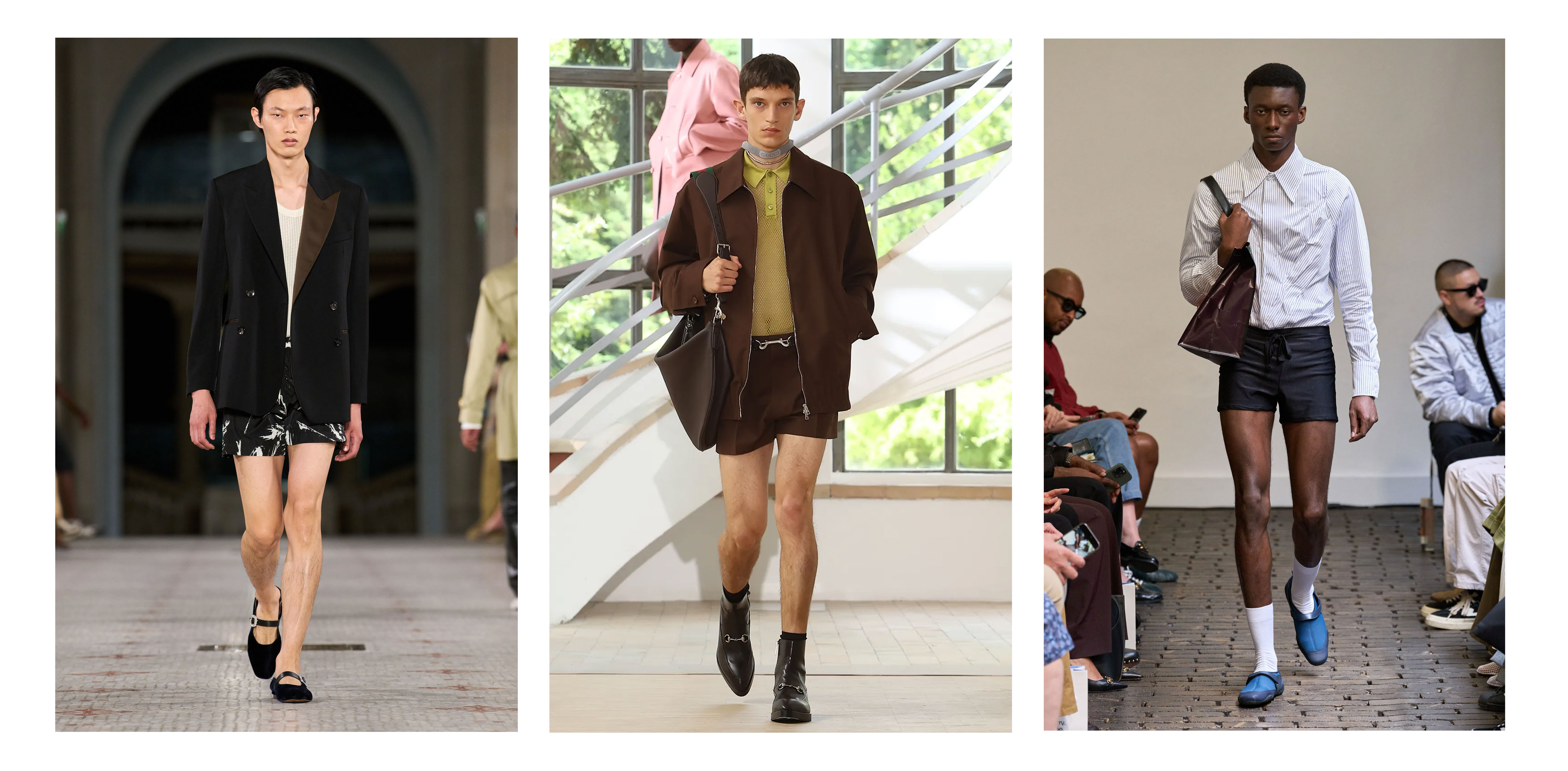На подіумах сезону весна-літо 2025 коротких чоловічих шортів теж було чимало. Образи манекенників виводили цю річ за межі уніформи для спортзалу. Серед тих, хто показав моделі значно вище коліна, були Gucci, Jacquemus, Wales Bonner, Dolce & Gabbana, Bianca Saunders, 032c, Emporio Armani, JW Aanderson, Zegna й Martine Rose.