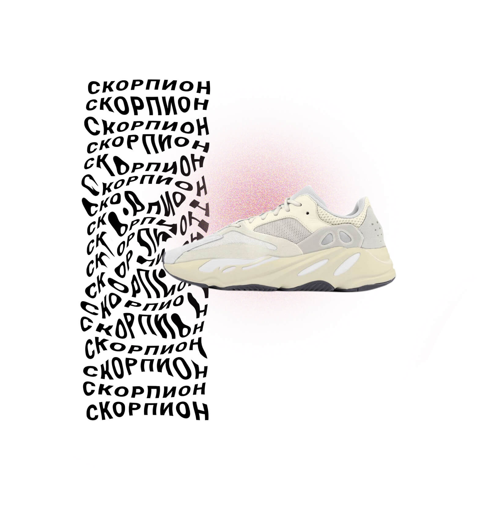 Новая модель кроссовок от Канье Уэста — хороший способ заявить о себе. Лимитированные Yeezy 700 могут достать только самые упорные Скорпионы (их раскупают в первые минуты после дропа), что делает пару еще более эксклюзивной.