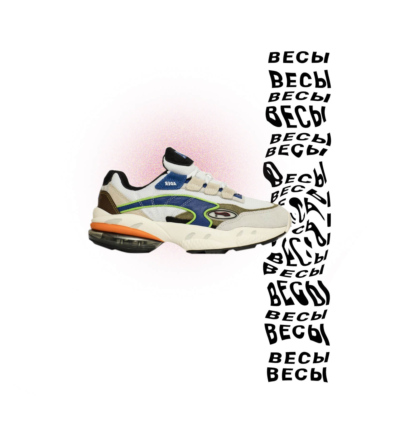Мы знаем, что нерешительным Весам выбор новых кроссовок дается особенно трудно. Пара из коллаборации Puma x Ader сочетает в себе лучшее из двух миров — минимализма и эклектики. В меру уродливые и не слишком массивные кроссовки позволят оставаться в тренде, при этом не рискуя показаться скучными.