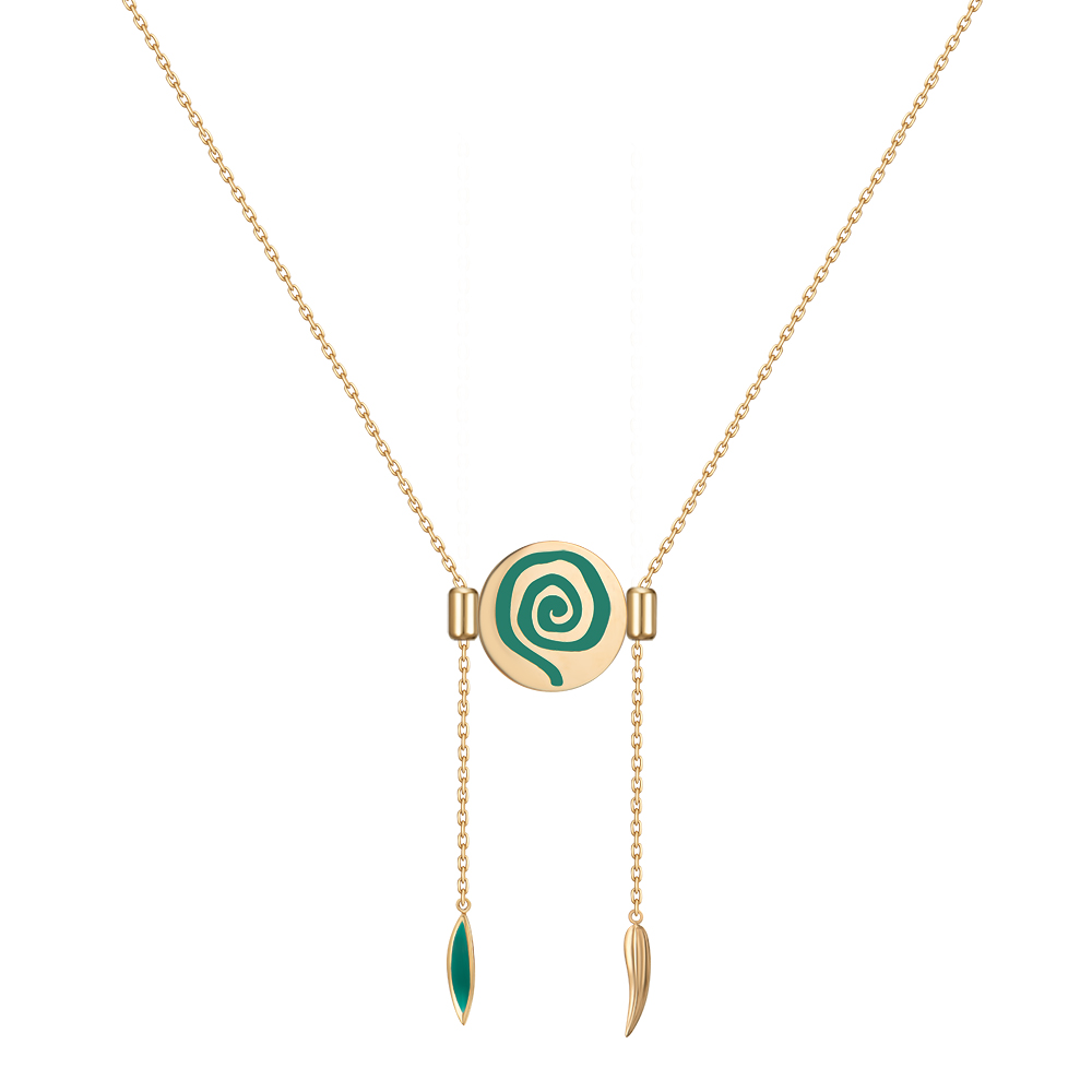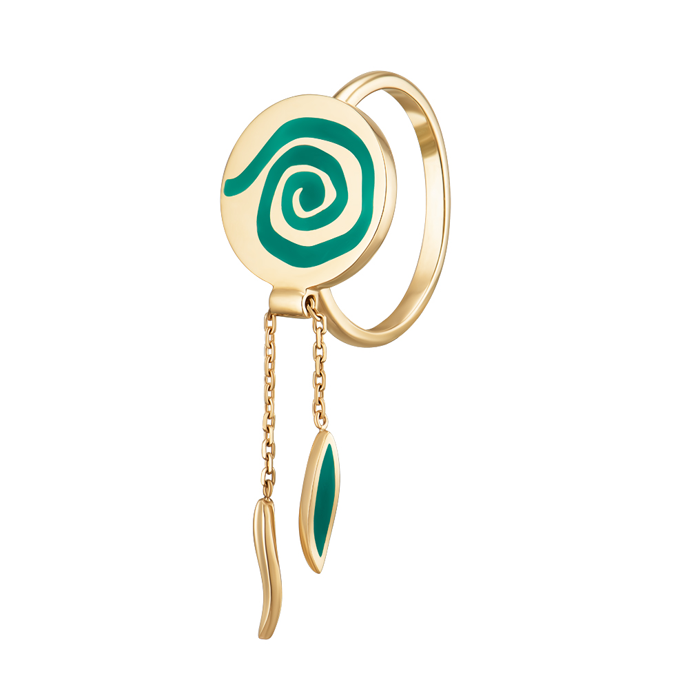 У колекцію увійшли моносережки, кафи, каблучки, підвіс, кольє-трансформери та браслети, що виконані у білому та жовтому золоті. У колаборації втілені флористичні мотиви з рухливими елементами, які перегукуються з рослинами Магічного Лісу, які колихаються від “мови вітру”. Деталі у вигляді листочків відтворені як в прикрасах, так і на їх застібках.