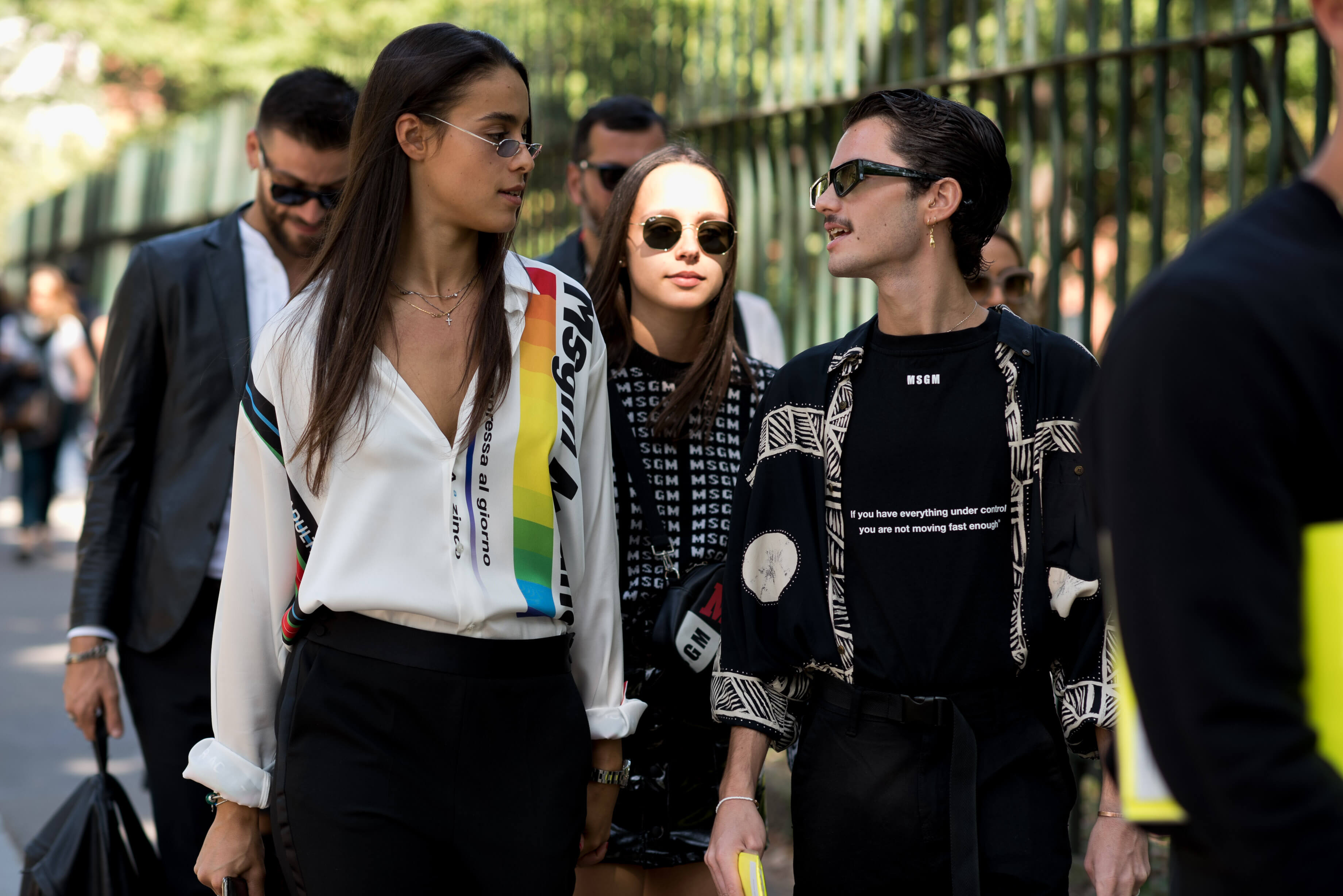 Неделя моды в Милане завершилась философским и зрелищным показом Gucci, а весенняя тематика, похоже, согрела сердца модных гостей: в их образах появилось заметно больше розового — от брючных костюмов до струящихся платьев, радужных всплесков и безмятежных образов, состоящих из комплектов базовых вещей и элементов форменной одежды — немного делового стиля вперемешку с романтичными улыбками и небрежными укладками.