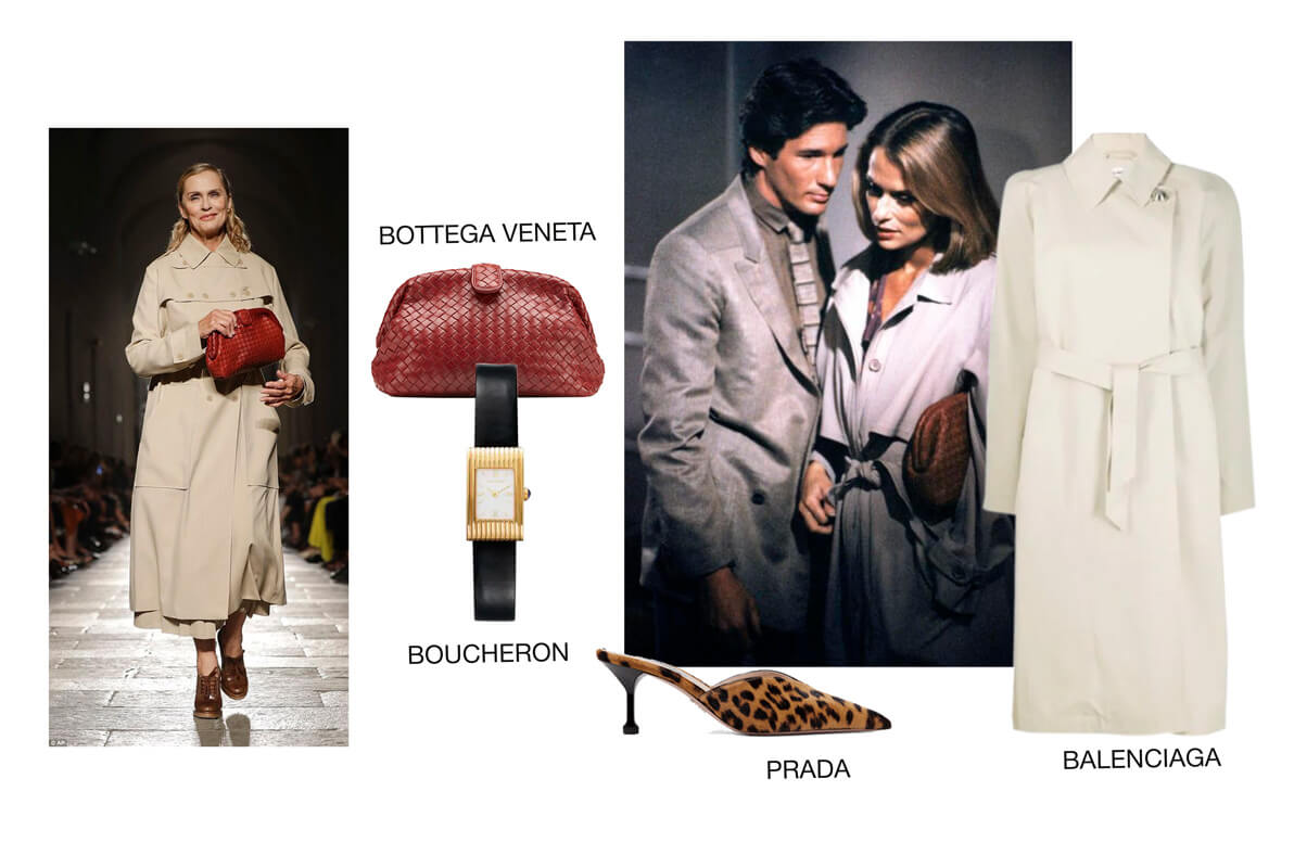 В весенней коллекции 2017 года Bottega Veneta воссоздали тот самый образ с тренчем. 73-летняя Лорен Хаттон прошлась по подиуму вместе с Джиджи Хадид, а потом снялась в рекламной кампании плетеного клатча из фильма. Его назвали в честь актрисы — Hutton 1980.