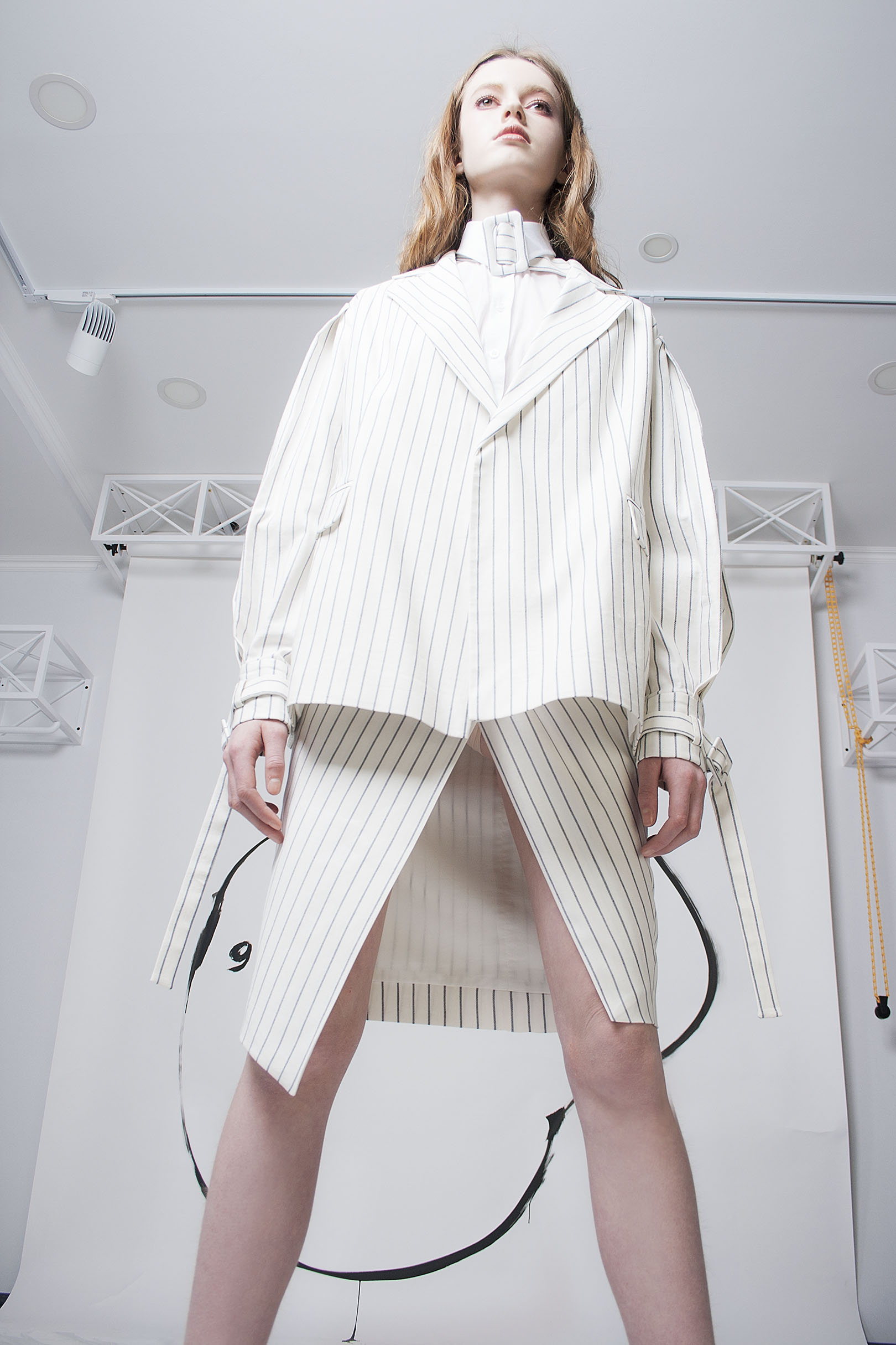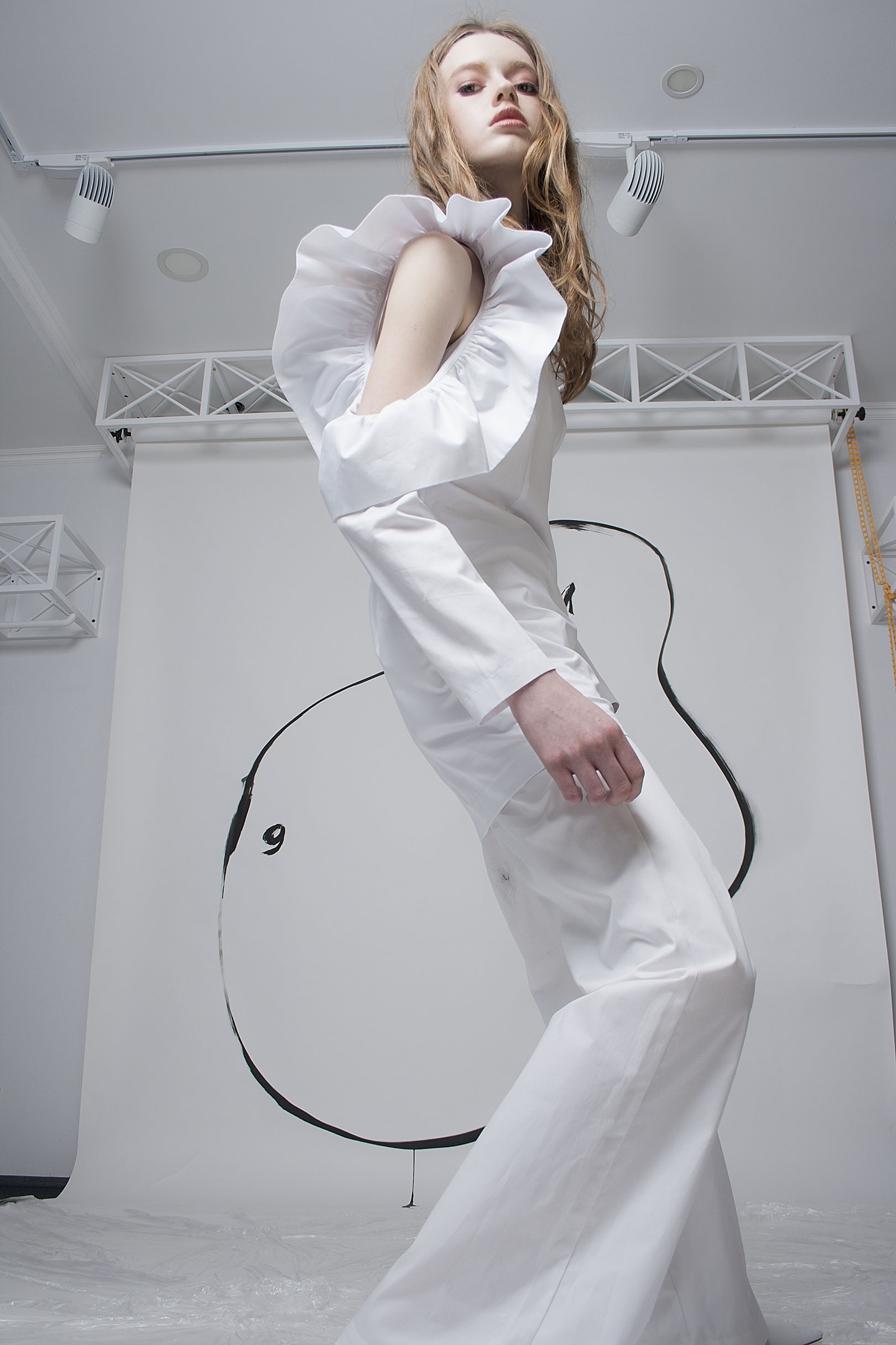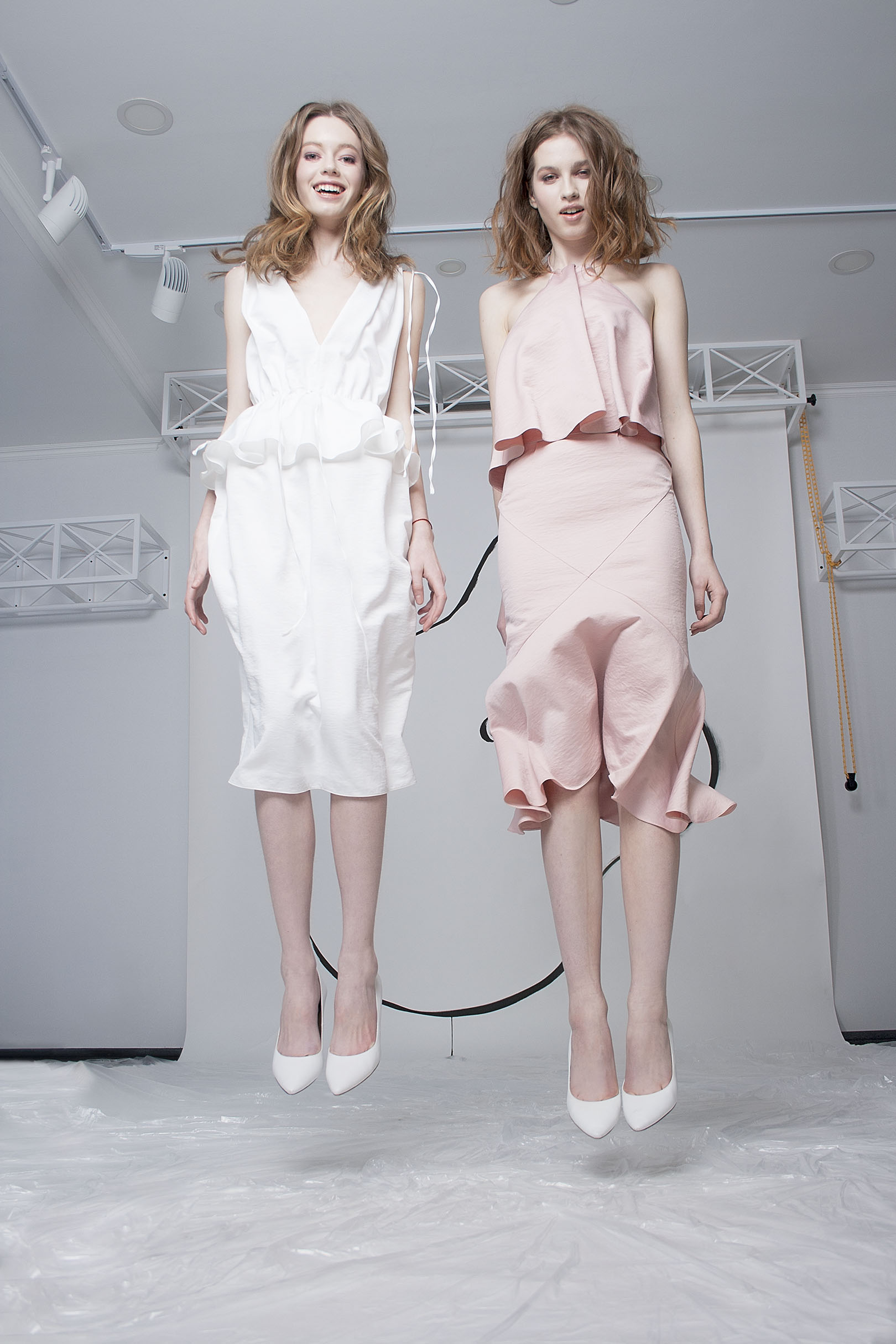 Главная героиня коллекции быстро меняет образы: вот она играет в романтику, примеряя шелковые платья пастельных оттенков с воланами, здесь она просто невинно проказничает в асимметричной рубашке со шлейфом или в топе с обнаженным плечом, дальше позирует streetstyle-фотографам в ярком брючном костюме и классическом тренче, а вечером она идет на свидание в ультракороткой юбке и жакете в тон.