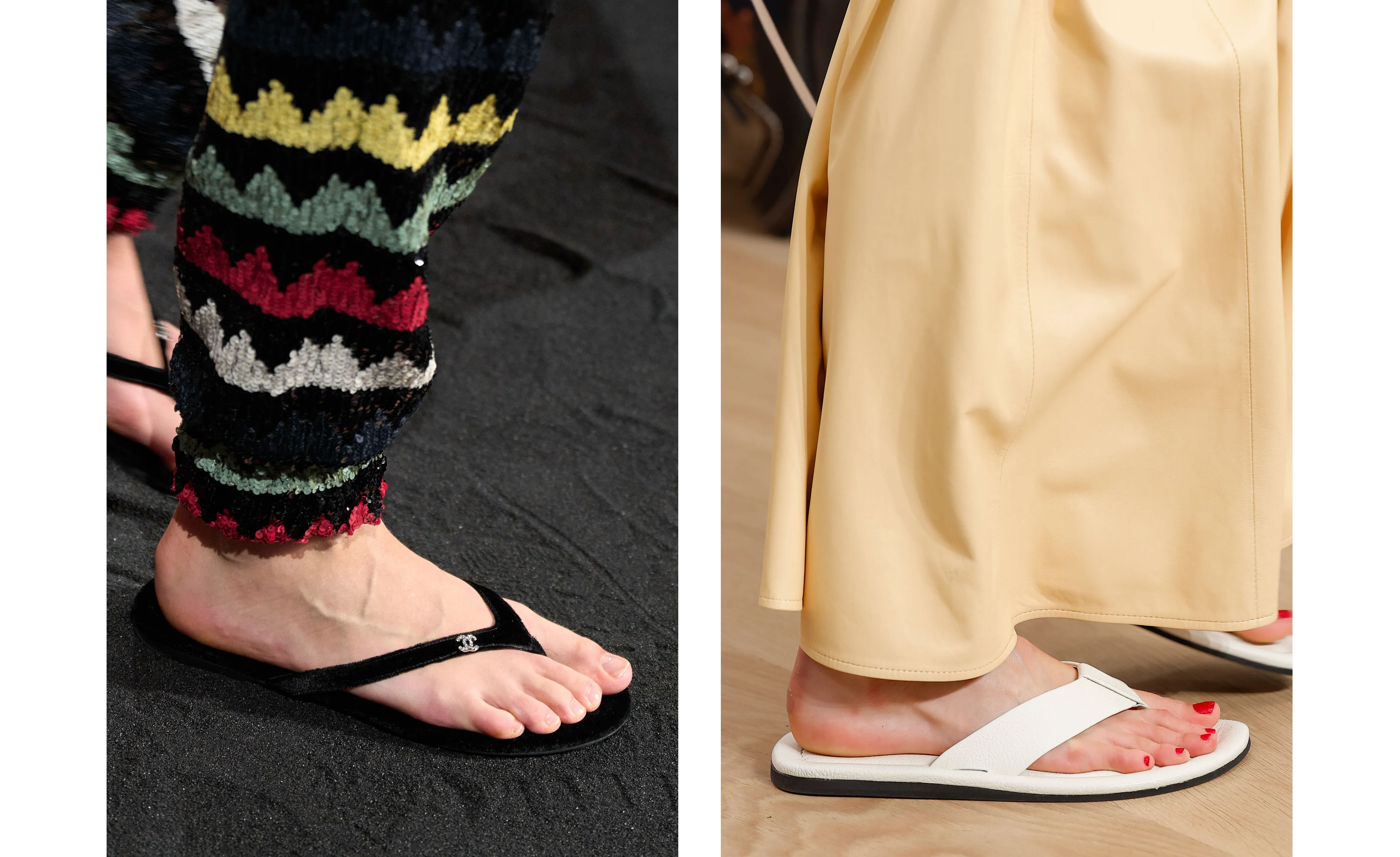 Прагнення фешн-індустрії до комфорту відображає ще один несподіваний тренд — в’єтнамки. Хоч вони асоційовані з пляжним відпочинком або домашнім проводженням часу, сезон весна-літо 2024 рішуче налаштований зруйнувати це уявлення. Серед популяризаторів тренду, зокрема, Chanel, адже на їхньому подіумі в’єтнамки були невимушено скомбіновані з джинсами, твідовими комплектами й жакетами. Якщо ж ви бажаєте зменшити «розслаблений» ефект цього взуття, варто звернути свою увагу на трохи підвищену підошву й масивний, акцентний декор.