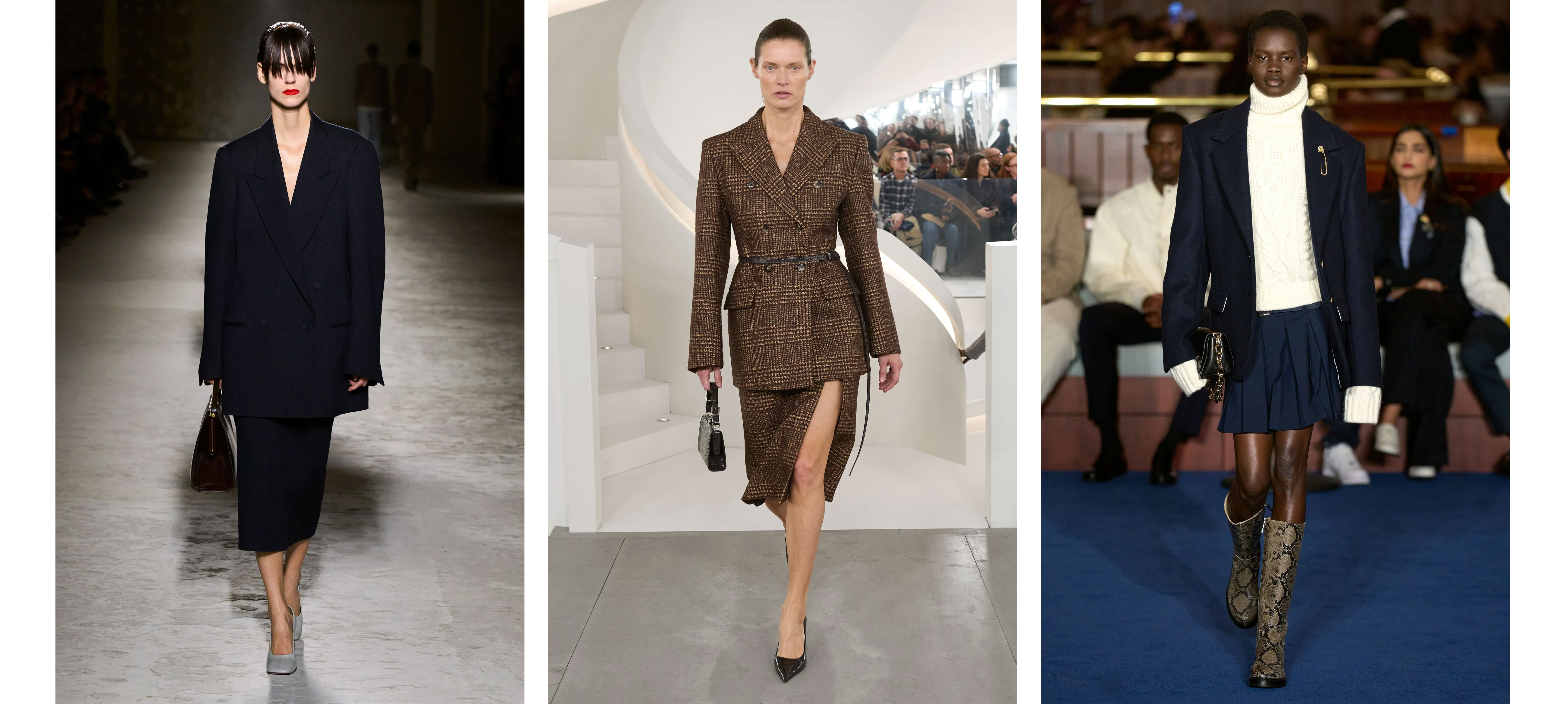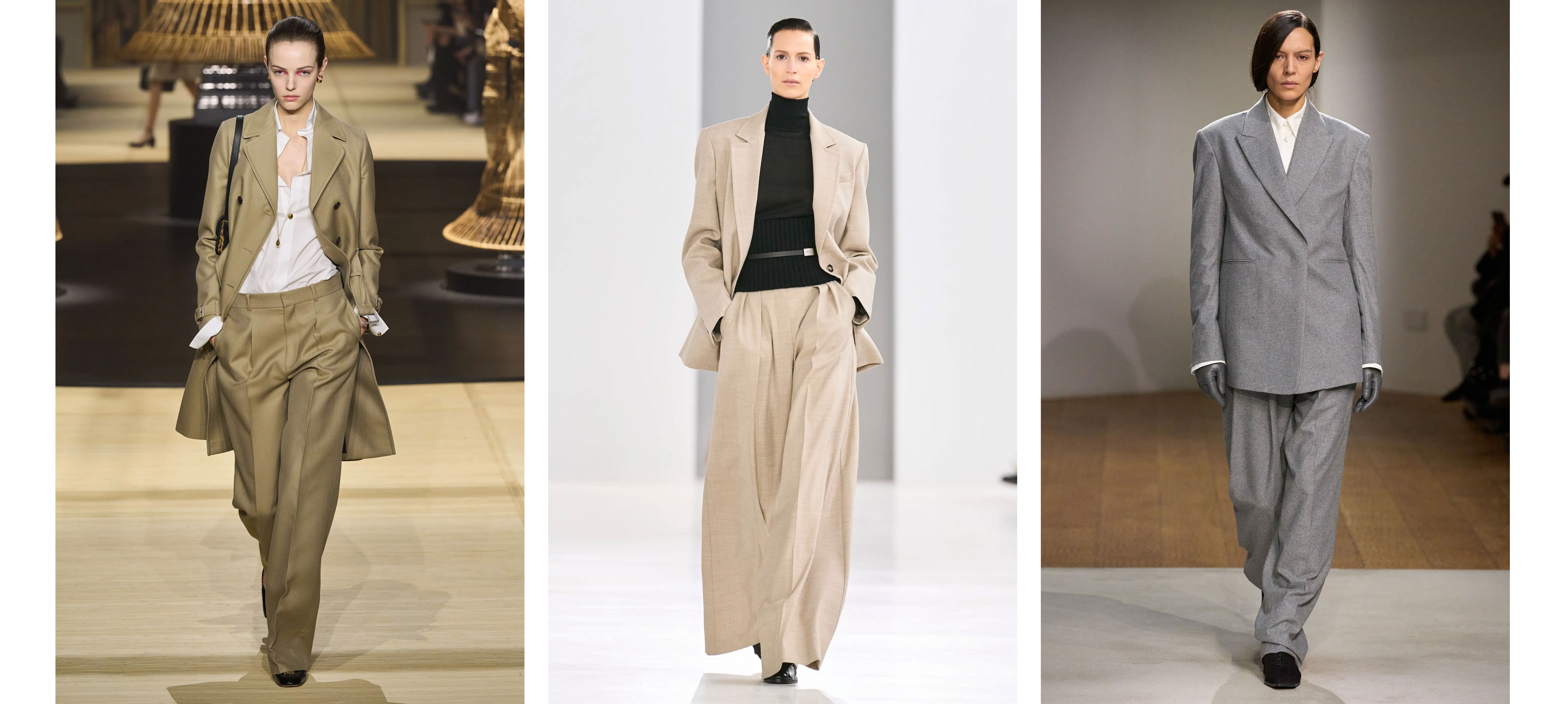 Зліва направо: Ferragamo осінь-зима 2024/2025, Jil Sander осінь-зима 2024/2025, Hermès осінь-зима 2024/2025