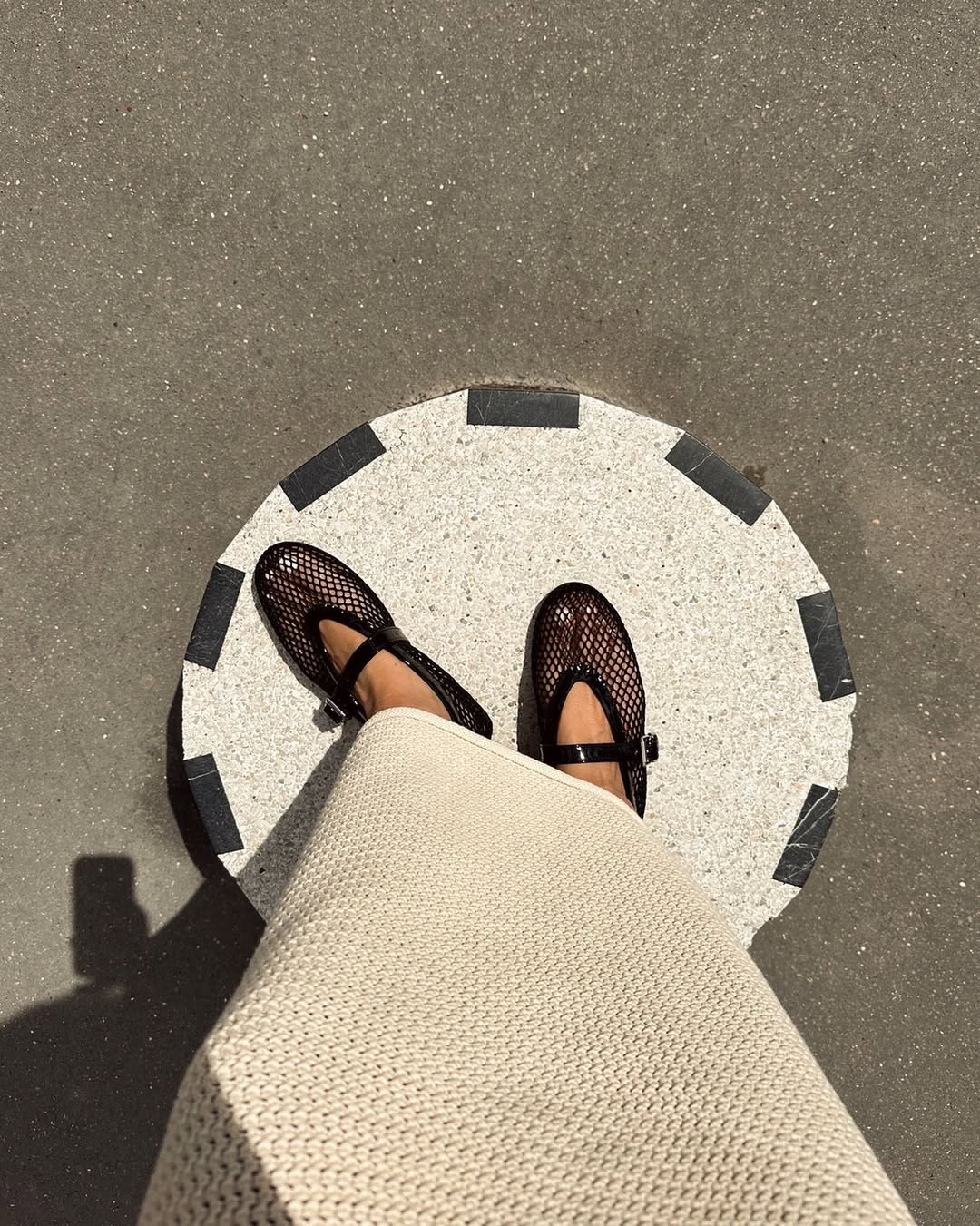 Якби проводилася церемонія найпопулярнішого взуття року, сітчасті балетки Alaïa, безумовно, вийшли б у лідери. Вони були вперше представлені у 2022 році та з того часу залишалися літнім мастхевом модників завдяки повітропроникності й легкості. Саме їм чимало завдячує нашумілий тренд на «прозоре» взуття.