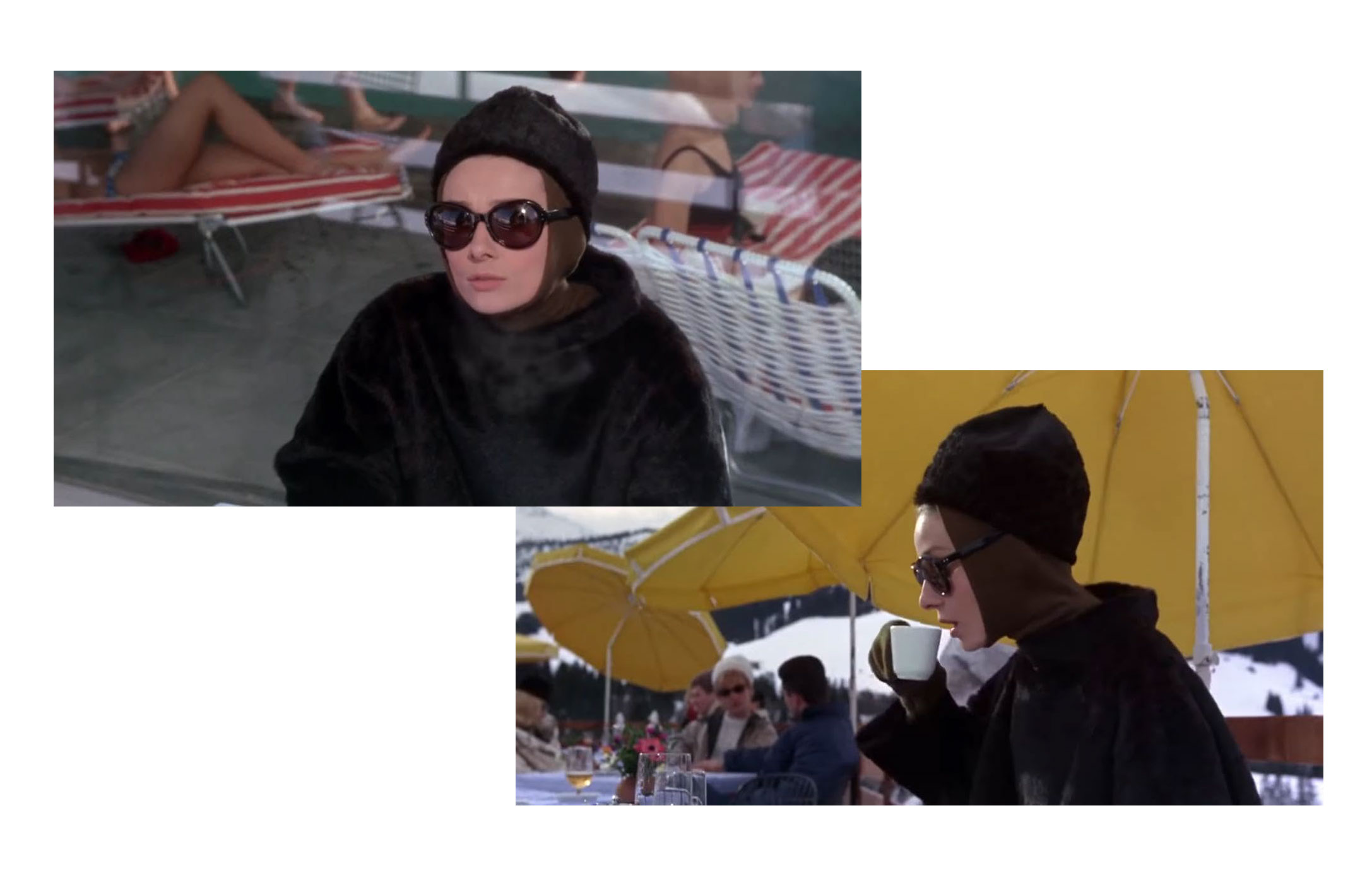 Протягом стрічки Одрі Гепберн з’являється в елегантних вбраннях, що для неї як своєї найвідомішої музи створив Юбер де Живанши. Одним із найзнаковіших образів акторки є той, в якому вона постає на гірськолижному курорті. Саме ним надихалися для костюмів акторки Лілі Коллінз в четвертому сезоні серіалу «Емілі в Парижі».