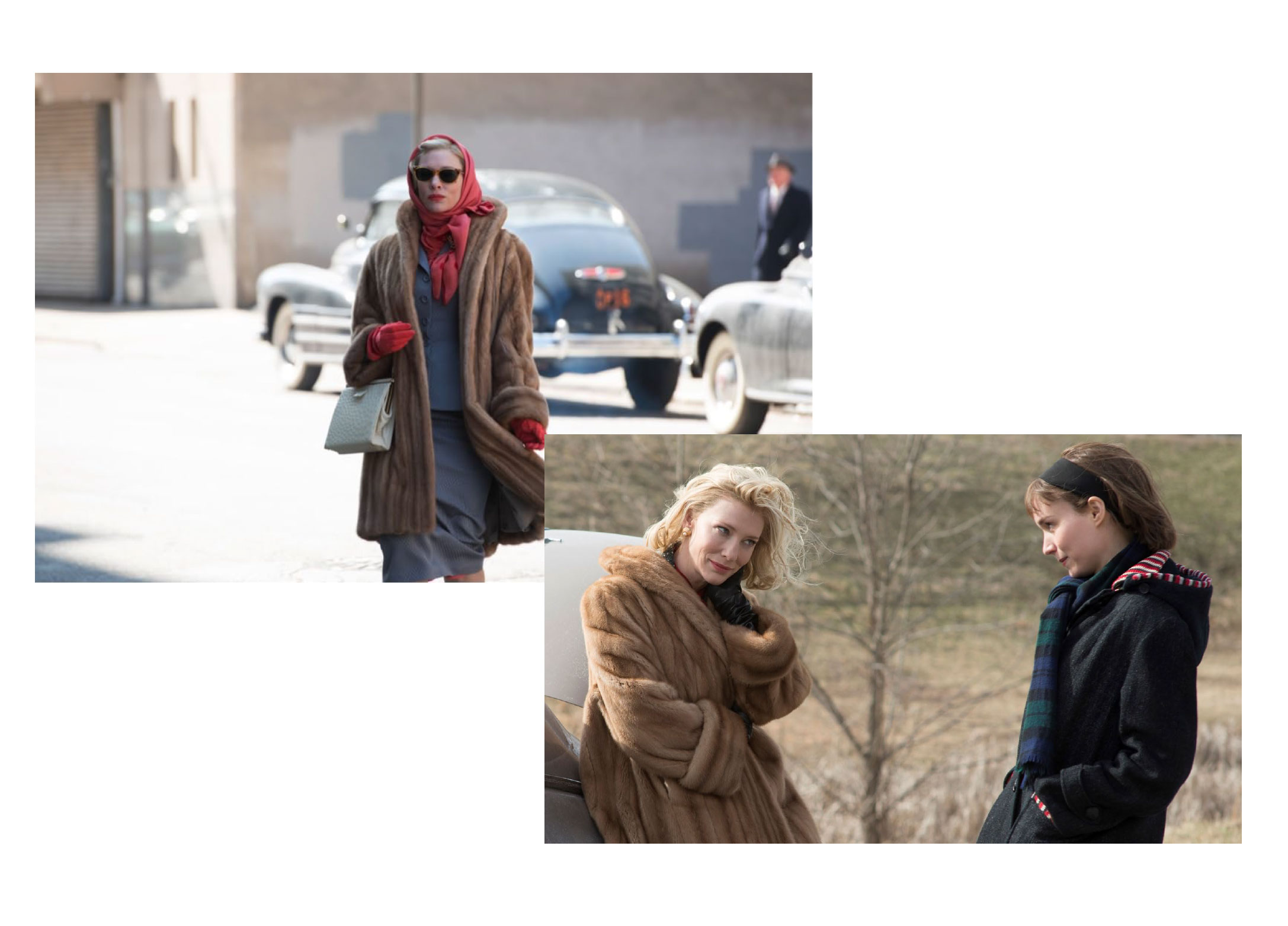 Розмова про святкові фільми не може обійтися без «Керол» —  романтичної драми з Кейт Бланшетт і Руні Марою. У ній акторки трансформуються у двох закоханих героїнь, стосунки яких обмежені суспільством. Персонажка Кейт Бланшетт уособлює вишуканість і елегантність. В її образах з’являються одні з найбільших трендів цього сезону — шкіряні рукавиці, хустка й шуба.