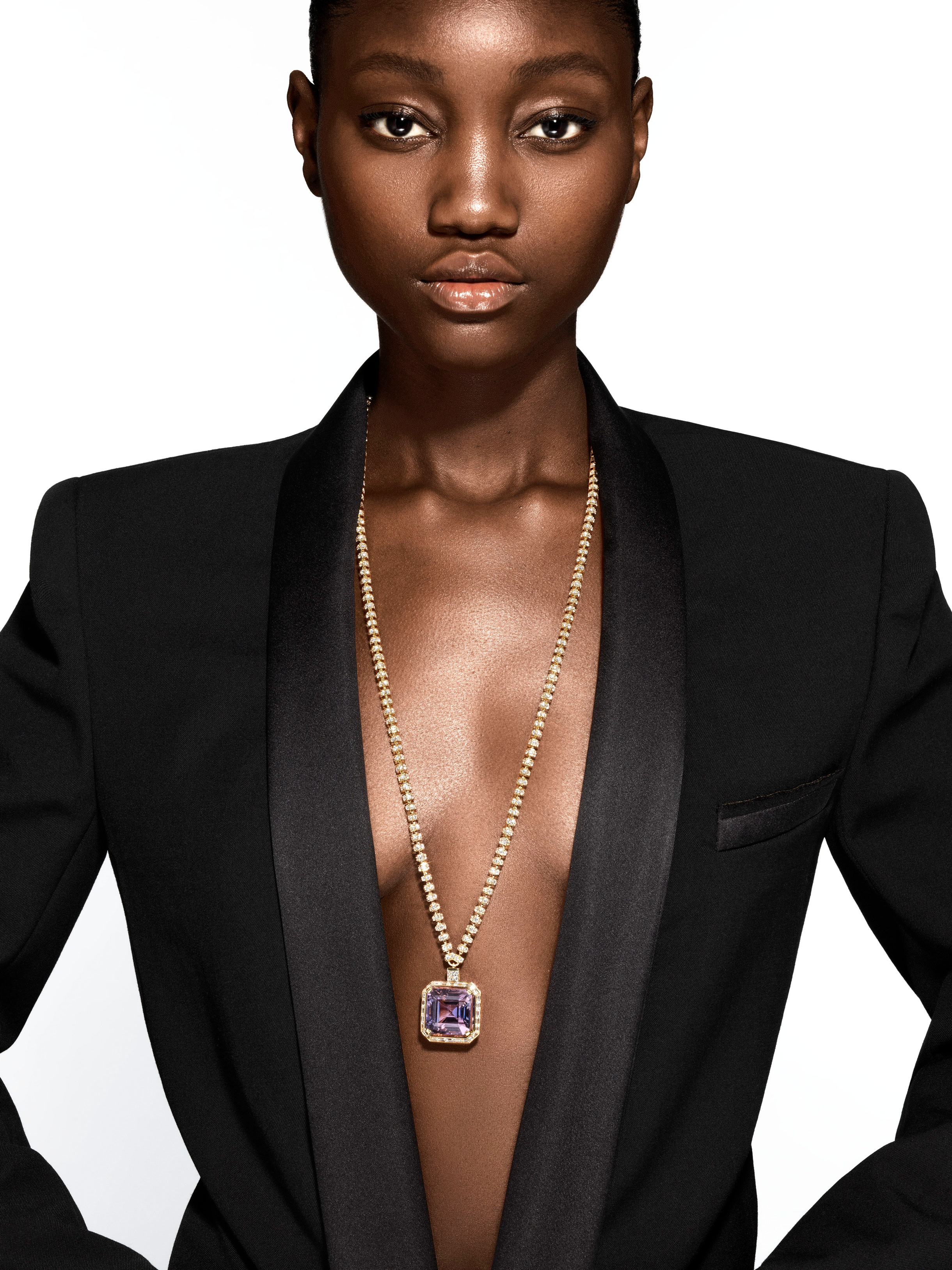 Баланс инноваций и испытанных временем техник является определяющей чертой коллекций высокого ювелирного искусства дома вот уже более ста лет, и коллекция «Краски природы» вновь служит ее подтверждением. Огранщикам удалось раскрыть захватывающую дух красоту бриллианта в огранке «маркиз», весом более 21 карата, ответственно добытого в Лесото.