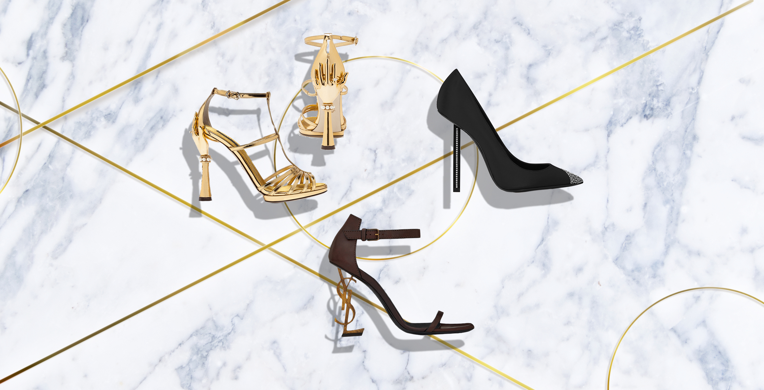 С цветами, перьями, стразами – в этом году дизайнеры нас удивляли оригинальными интерпретациями каблука. Но нам больше всего запомнился вариант от Saint Laurent – туфли с каблуком в виде монограммы, в которых прослеживается влияние еще одного тренда – логомании.