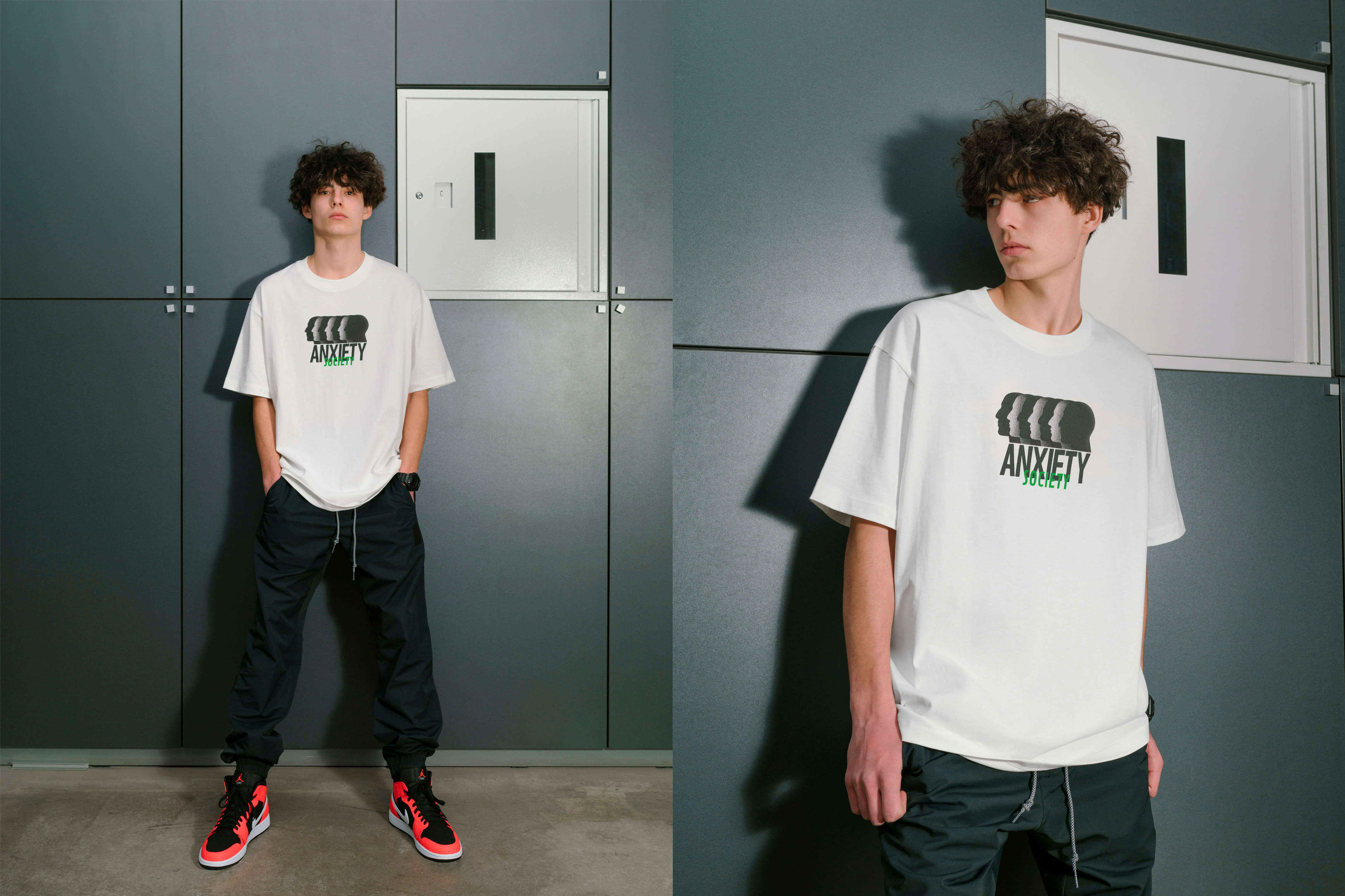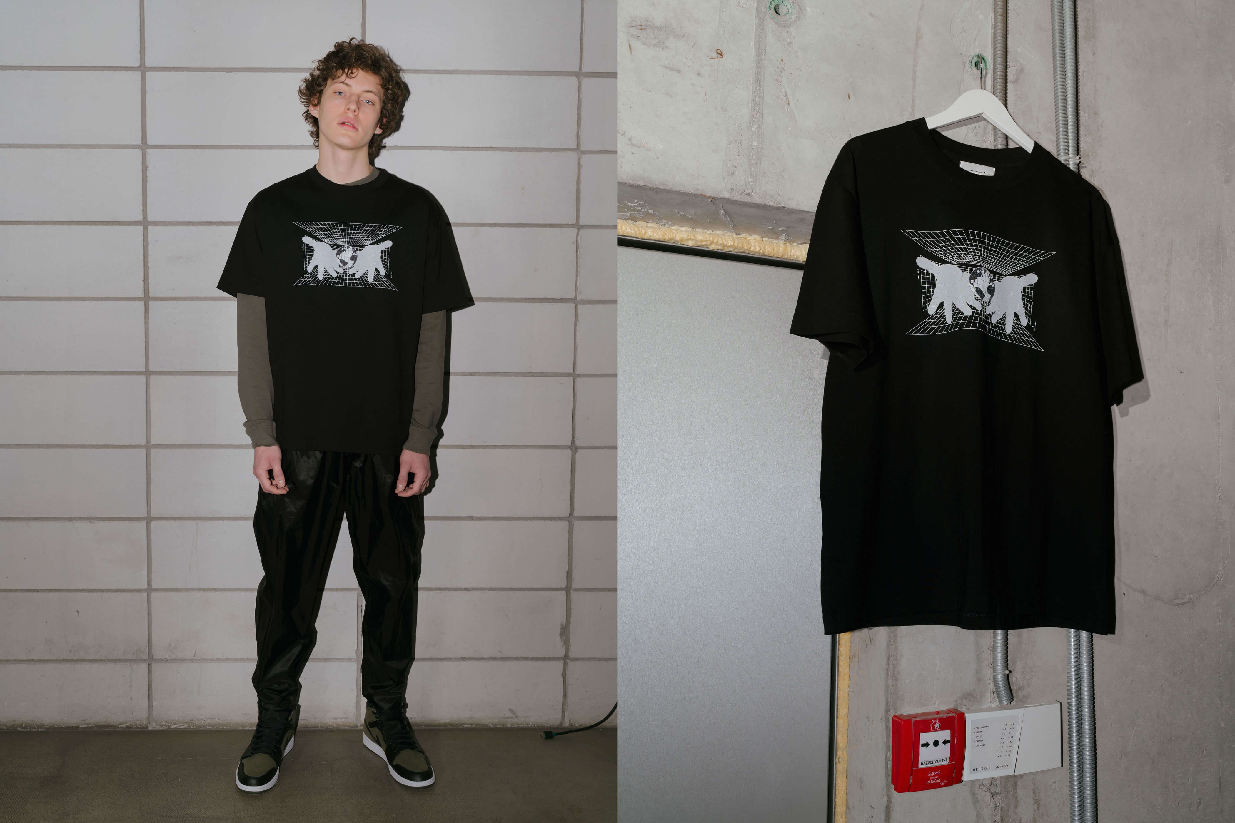 Новая коллекция бренда под названием Anxiety Society вдохновлена разрушительным влиянием диджитализации и массивного потока информации на нашу жизнь. "Постоянный доступ к информации, с одной стороны, является символом прогресса, с другой — становится источником страхов, стресса и тревожности. Информационные технологии всё чаще используются для контроля над нашими жизнями и манипуляций сознанием. Люди озабочены своим "медиаобразом" больше, чем реальной жизнью, побочным эффектом чего является тревожность, боязнь быть осуждённым, каким-то несовершенным в соцсетях, где все выглядят идеально. Интеграция цифровых технологий в наши жизни поднимает вопросы приватности, доверия и этики. Информация превратилась в товар. Как и атомная энергия, когда-то придуманная во благо, но способная нанести огромный ущерб в плохих руках, так и информация является новейшим оружием массового поражения", — рассказывают ребята.