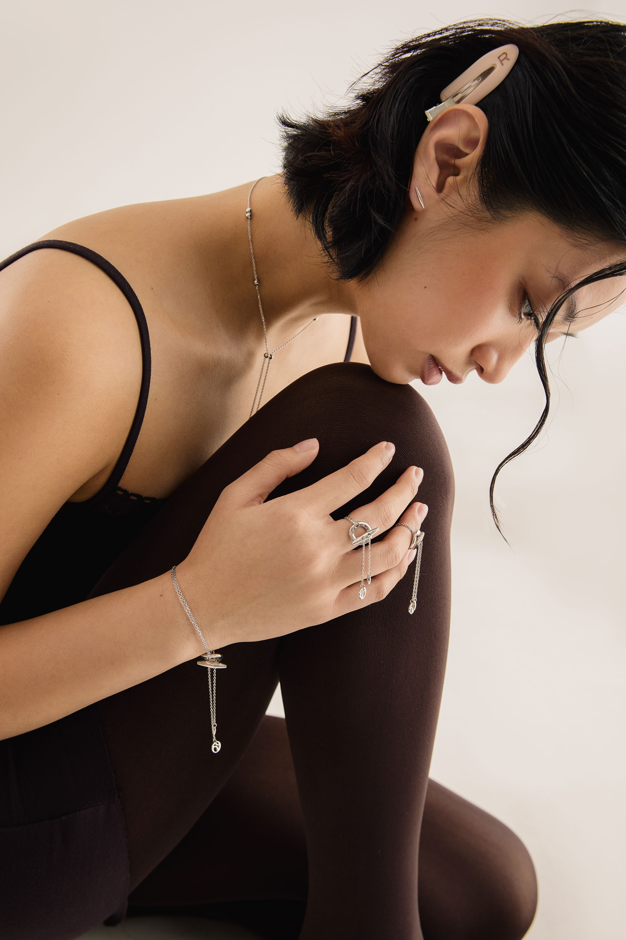 Приміром, завдяки метровій довжині, слайдеру у вигляді квітки та карабіну на звороті, пасок-трансформер Malva можна вдягати на шию й на талію. Або ж можна додати знімні кліпси — та перетворити його в ланцюжок для навушників або окулярів. «Виготовлені вручну з перероблених золота та срібла, прикраси Orxata засвідчують позицію бренду щодо сталого, але стильного споживання», — діляться в бренді.