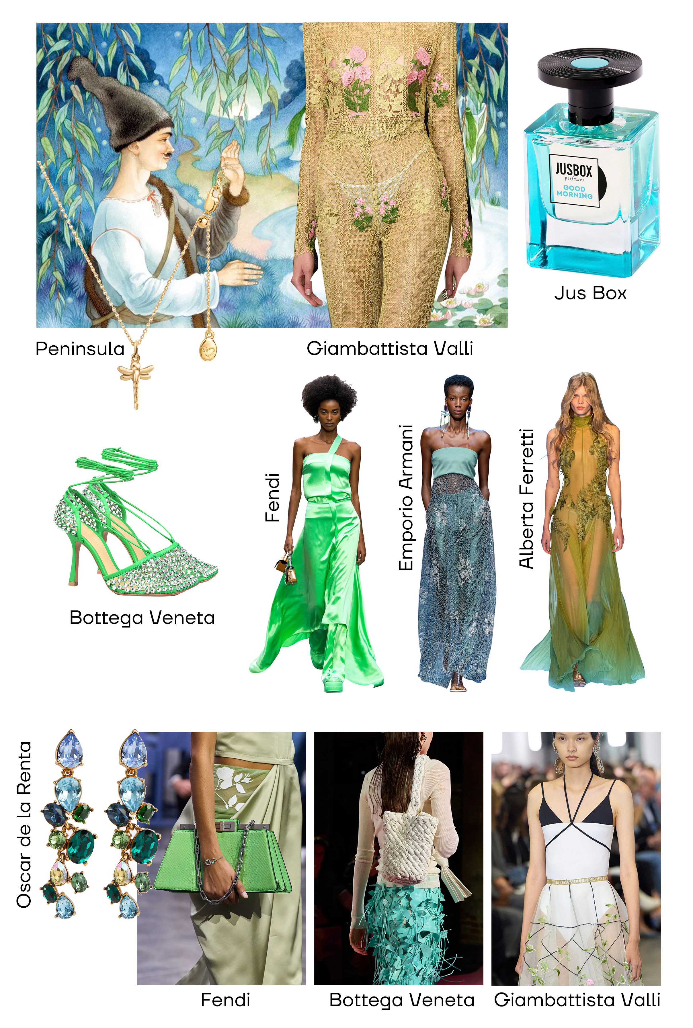 Alberta Ferretti Spring Summer 2023. Emporio Armani Spring Summer 2023. Fendi Spring Summer 2023. Giambattista Valli Spring Summer 2023. Bottega Veneta Spring Summer 2023. Сумка, Bottega Veneta. Підвіска з шарміком на петельці "Бабка", Peninsula. Сережки, Oscar de la Renta. О. Йонайтіс "Травнева ніч". Босоніжки, Bottega Venetta.